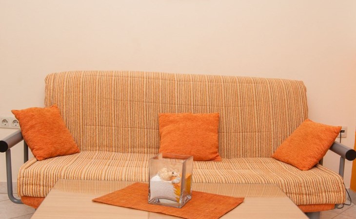 Im Innern der Wohnung sind 38 m² durchdacht eingerichtet, so dass Ihr Aufenthalt sowohl komfortabel als auch bequem ist. Der Wohn- und Essbereich ist nahtlos in die offene Bauweise integriert und bietet einen einladenden Raum für Entspannung und Mahlzeiten. Die Küche ist zwar kompakt, aber mit einem 2-Platten-Herd, einem Wasserkocher und einem Mini-Backofen gut ausgestattet, um alle kulinarischen Bedürfnisse zu befriedigen. Für zusätzlichen Komfort steht Ihnen in der Wohnung eine Waschmaschine zur Verfügung, mit der Sie Ihre Strand- und Urlaubskleidung ganz einfach frisch halten können.