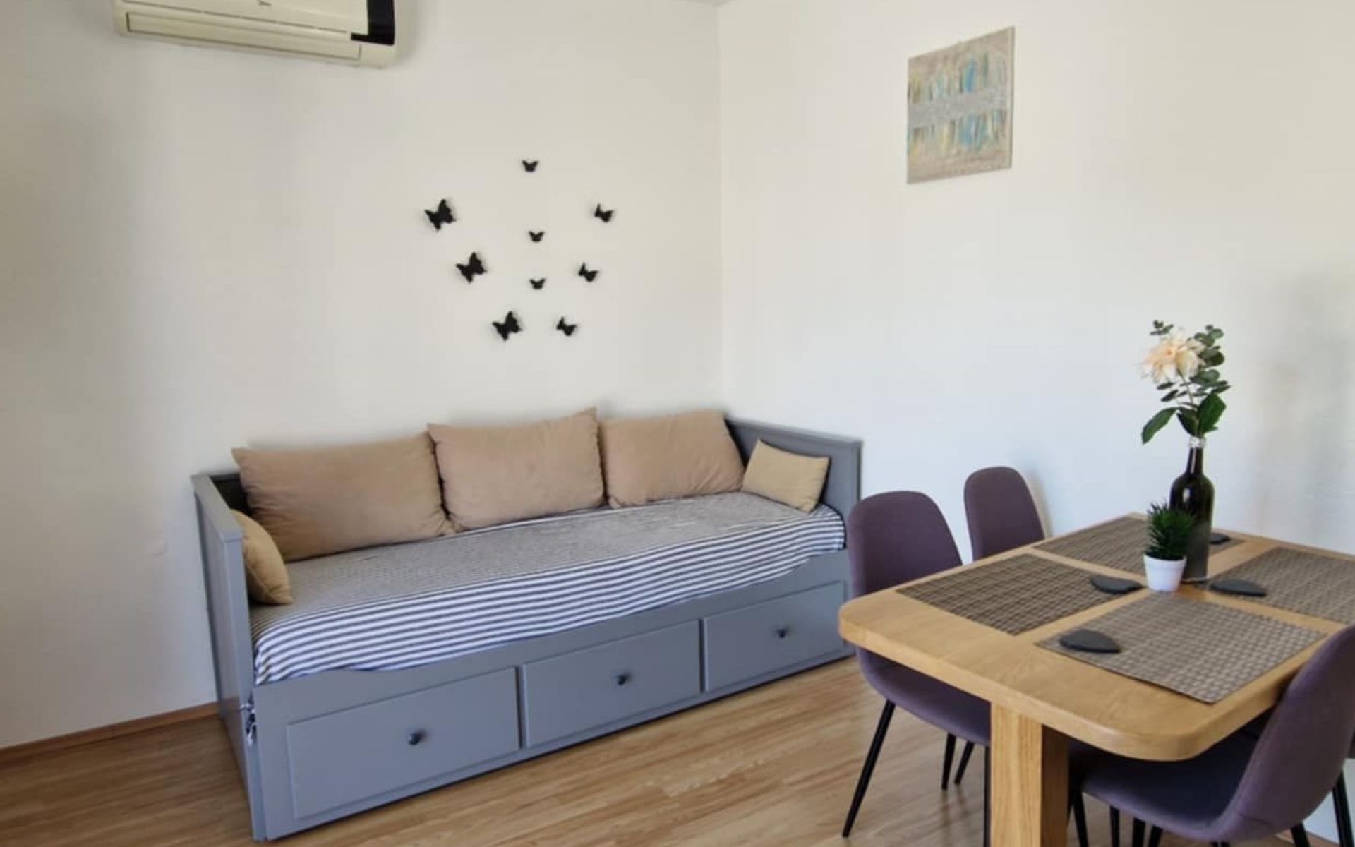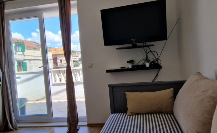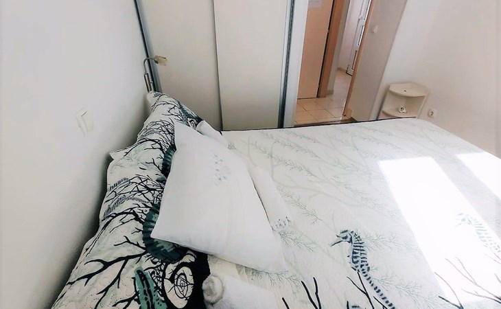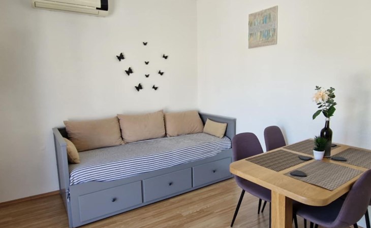 Anzahl und Art der Betten: 1 Doppelbett, 1 Sofa
