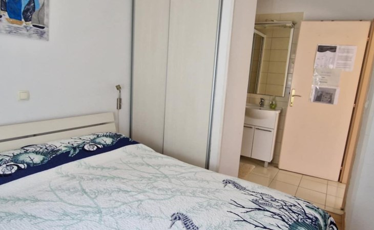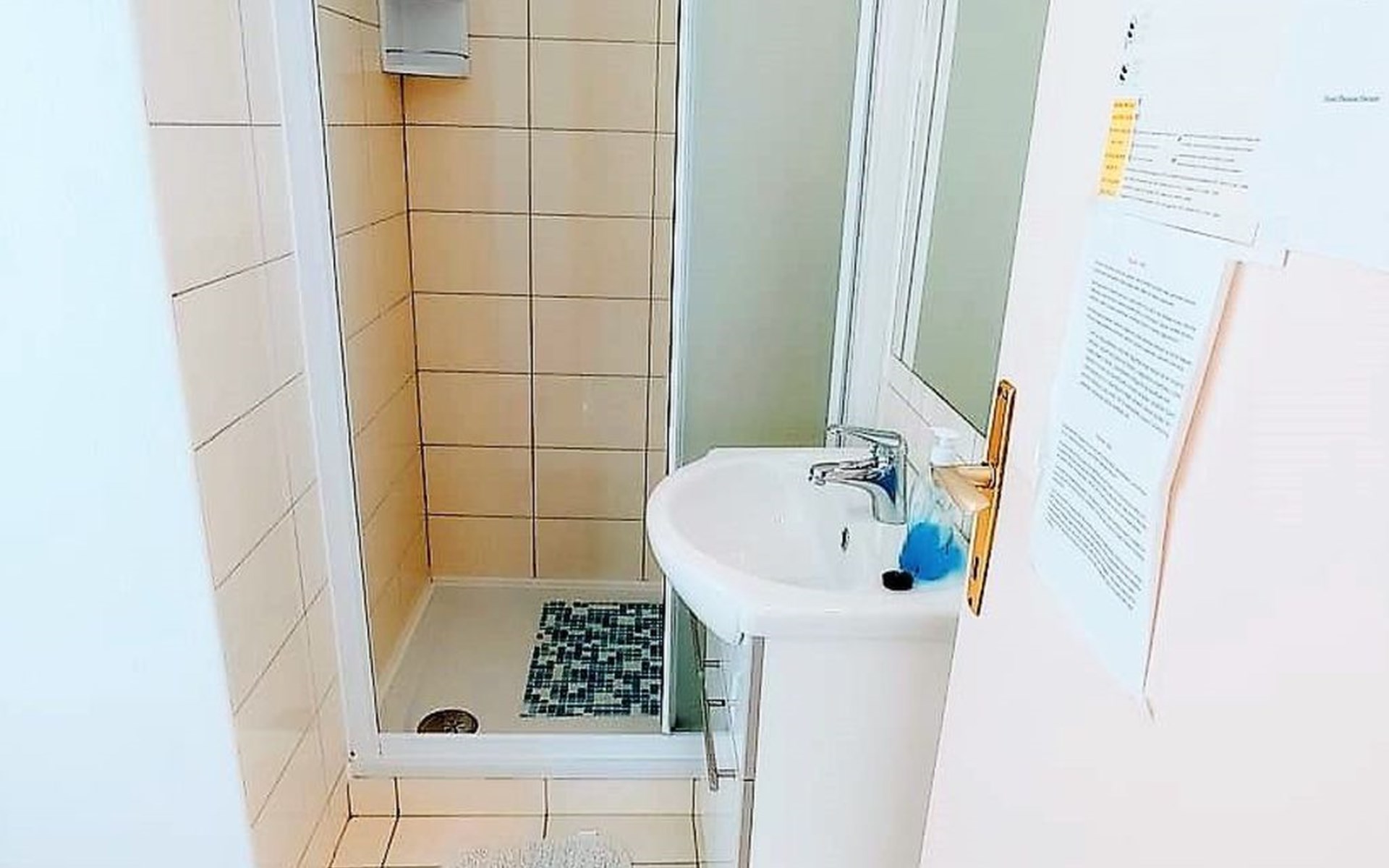 1 Badezimmer im Schlafzimmer + 1 Toilette: Waschbecken, Dusche, Toilette, Haartrockner