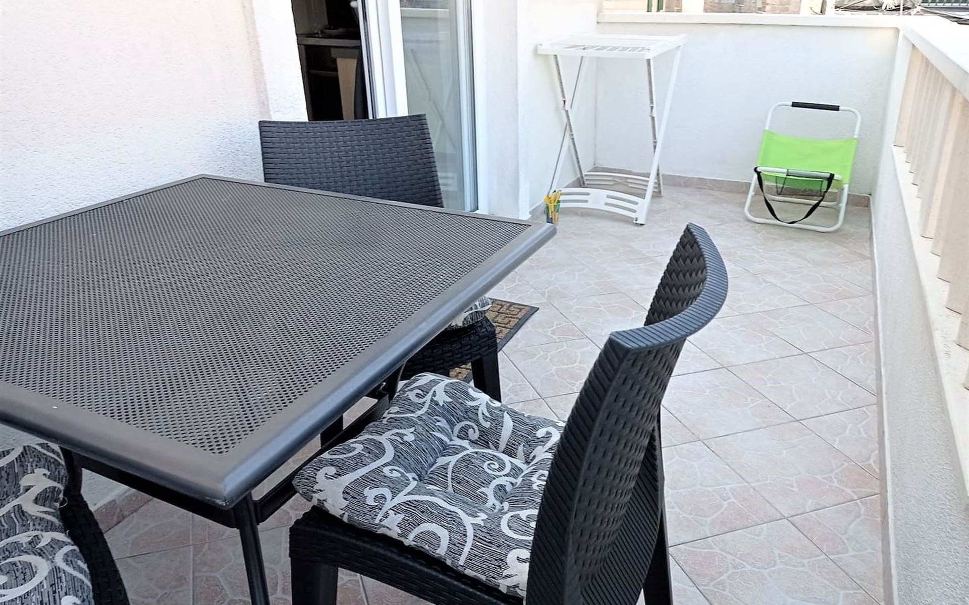 Balkon mit Gartenmöbeln und Sonnenschirm: 8 m2