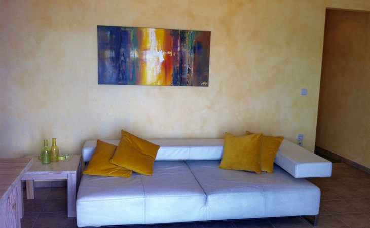 Vom Wohnraum aus gelangen Sie auf den eigenen möblierten Balkon (drei m²), der mit seinem Meerblick zum Verweilen einlädt.