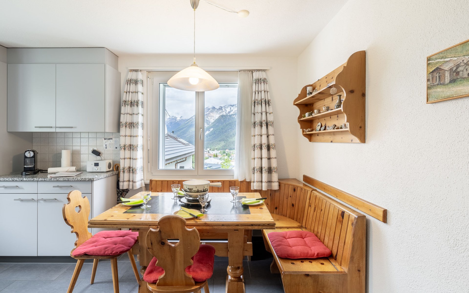 inkl. Bettwäsche, Frottéwäsche, Küchenwäsche, Endreinigung, WLAN, Strom, Heizung, Waschküche zur Mitbenützung, Aussenparkplätze, Skiraum, Veloraum. Auf Wunsch/Anfrage vergünstigtes Vereina Billet/Gästekarte.