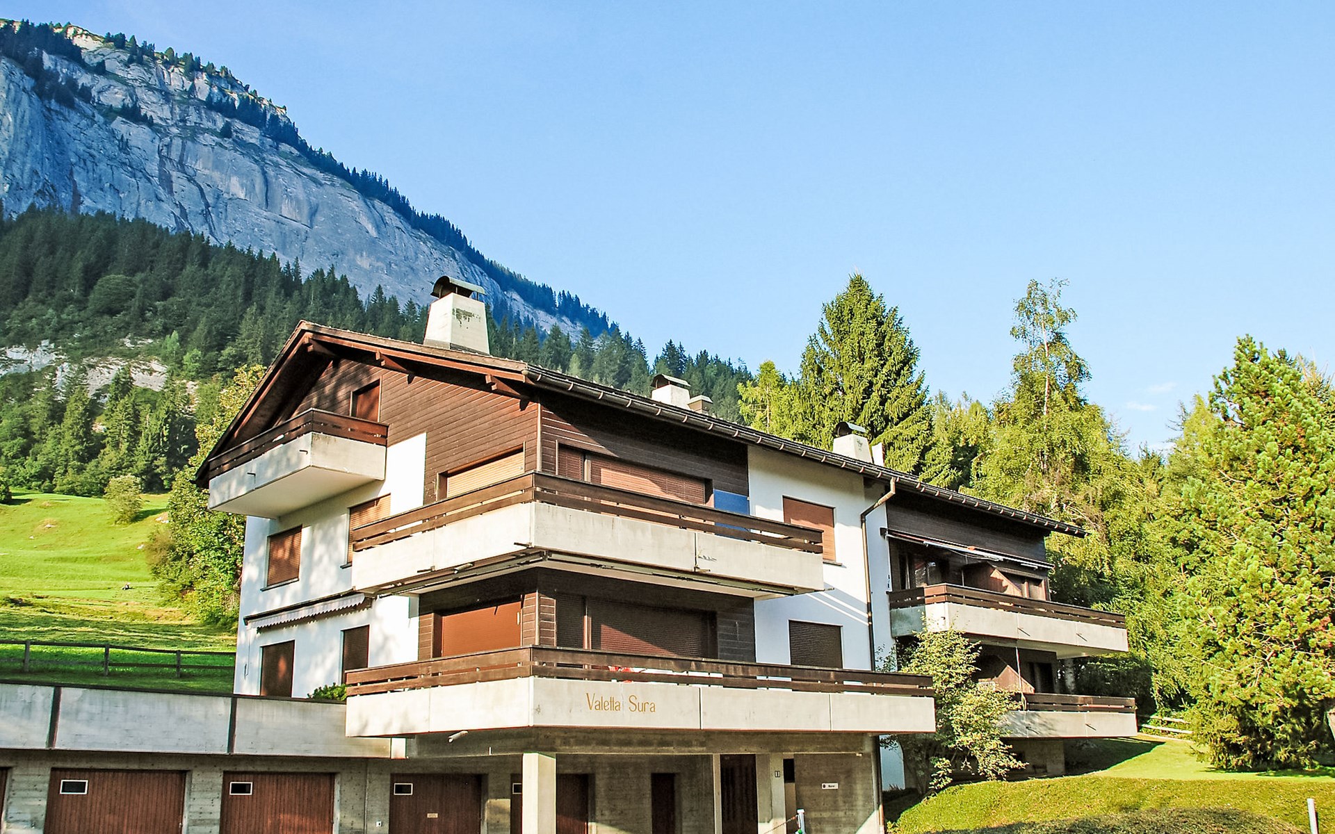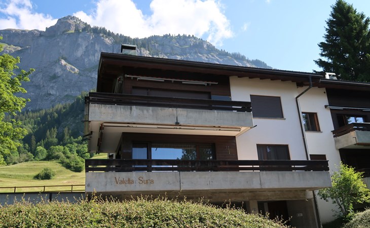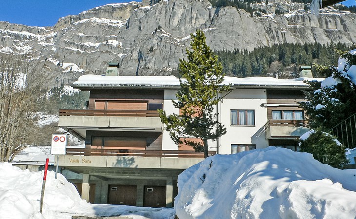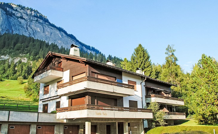 Flims 21 km von Chur: Mehrfamilienhaus "Valetta Sura", auf 3 Stockwerken, umgeben von Bäumen und Wiesen. Am Ortsrand, 600 m vom Zentrum von Flims Dorf, im Bezirk Surselva, ruhige, sonnige, erhöhte Lage, 1 km vom Skigebiet, in einer Sackgasse, im Grünen. Zur Mitbenutzung: Grundstück. Im Hause: Skiraum, Zentralheizung, Waschmaschine (zur Mitbenutzung). Steile Zufahrt bis zum Haus. Im Winter 4x4 empfohlen. Einzelgarage beim Haus, öffentliche Parkplätze 300 m. Parkplatz/Garage nur für kleine - mittlere Fahrzeuge geeignet. Maße: Höhe 195 cm Breite 235 cm. Einkaufsgeschäft, Lebensmittelgeschäft, Restaurant 500 m, Bäckerei, Café 600 m, Zentrum zu Fuss in 3 Minuten erreichbar, Bushaltestelle "Flims Dorf, Post" 450 m, Bahnstation "Chur" 24 km. Golfplatz (18 Loch) 9.1 km, Wanderwege ab Haus 100 m, Sessellift 1 km, Skisportanlagen 1 km, Skipisten 1 km, Schlittelbahn 500 m, Langlaufloipe 1 km, Eisfeld 1 km, Kinderspielplatz 500 m. Nahe gelegene Sehenswürdigkeiten: Rheinschlucht, Chur. Bekannte Skigebiete sind gut erreichbar: Flims - Laax. Bekannte Seen in der Umgebung sind gut erreichbar: Crestasee, Caumasee. Wandergebiete: Ela Parc.