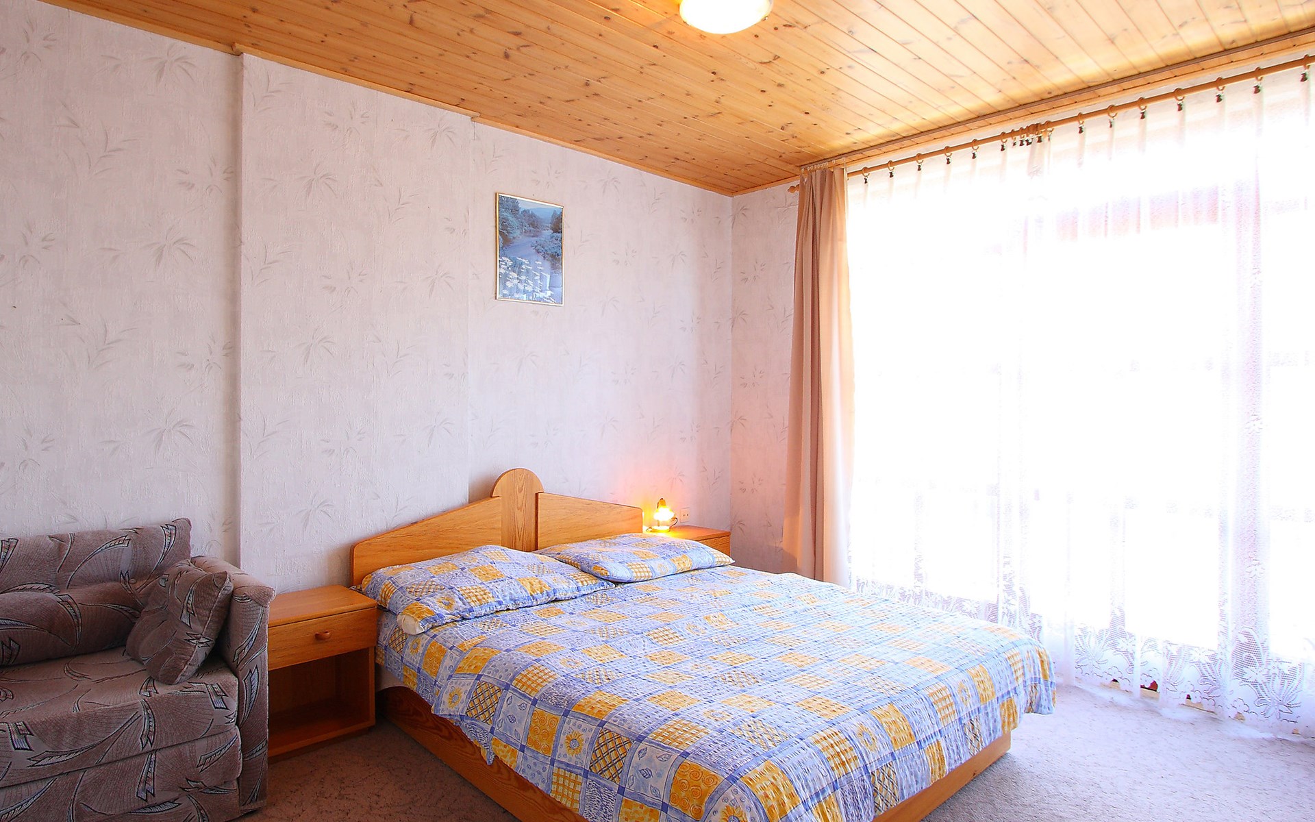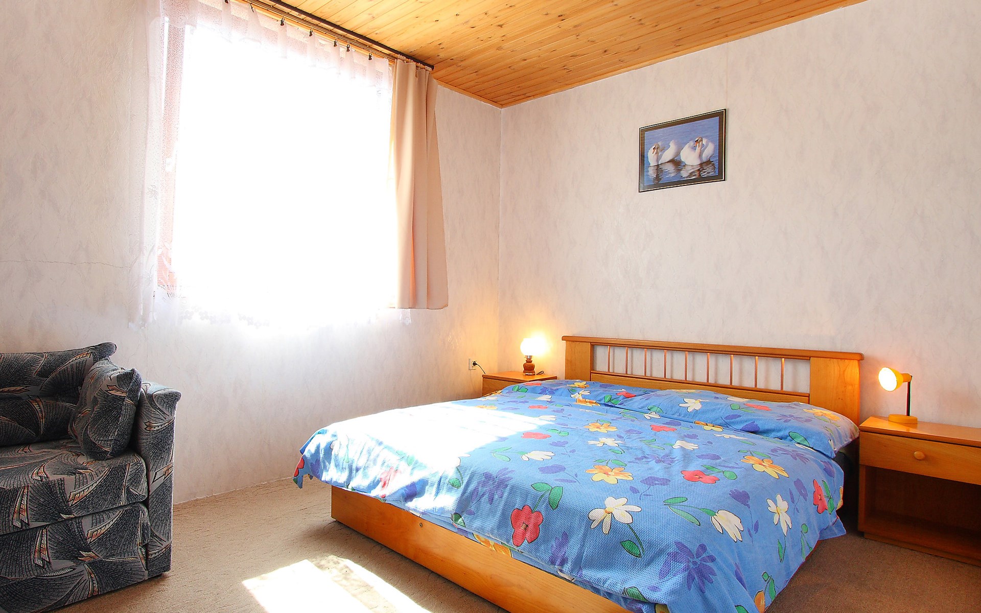 Balatonmáriafürdő 18 km von Keszthely: Schönes, komfortables Doppelhaus. Sonnige Lage, 250 m vom See, 200 m vom Strand. Zur Mitbenutzung: Schwimmbad (7 x 4 m, 120 cm tief, saisonale Verfügbarkeit: 15.Mai. - 15.Sep.). Zur Alleinbenutzung: Garten 200 m2 (eingezäunt), Liegewiese. Im Hause: Wireless LAN, Waschmaschine. Lebensmittelgeschäft 400 m, Supermarkt 6 km, Restaurant, Bäckerei 1.5 km, Café 300 m, Fahrradverleih 100 m, Bahnstation 700 m, Grasstrand 150 m, Freibad 300 m, Thermalbad "Csiszta" 15 km. Surfschule 7 km, Segelschule 1 km, Tennis 2 km, Reitstall 700 m, Radweg 50 m, Kinderspielplatz 500 m, Angelmöglichkeit 100 m. Nahe gelegene Sehenswürdigkeiten: Héviz Thermal Bath 20 km, Festetics Palace 19 km, Rubin Winery 5 km, Airport 2 km, Somoshegyi Viewpoint 7 km. Objekt geeignet für 6 Erwachsene + 2 Kinder.