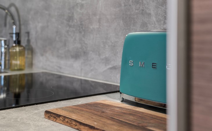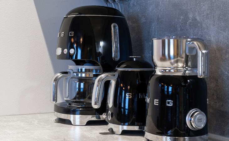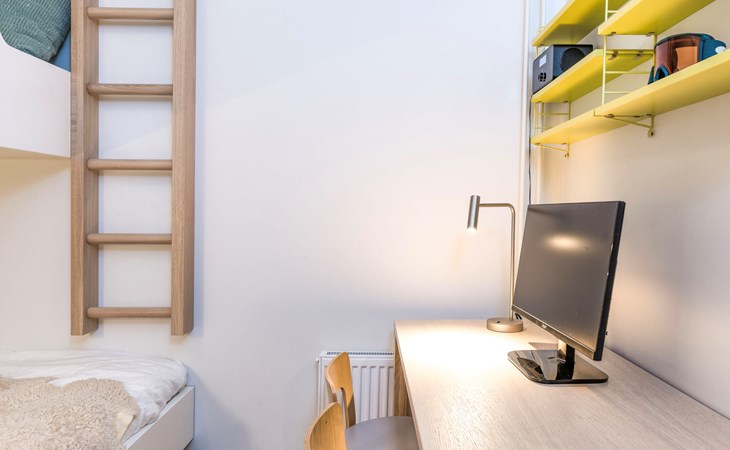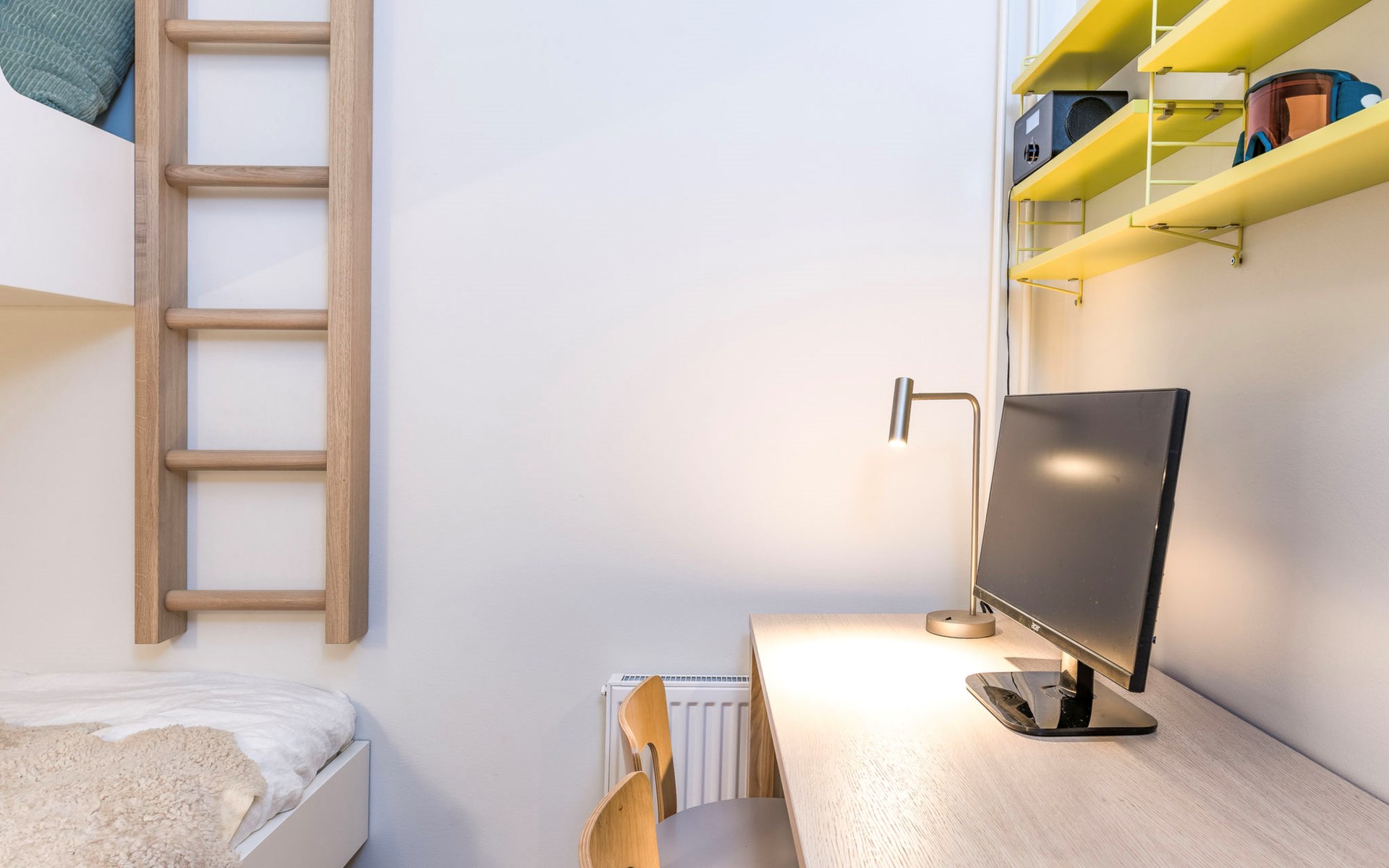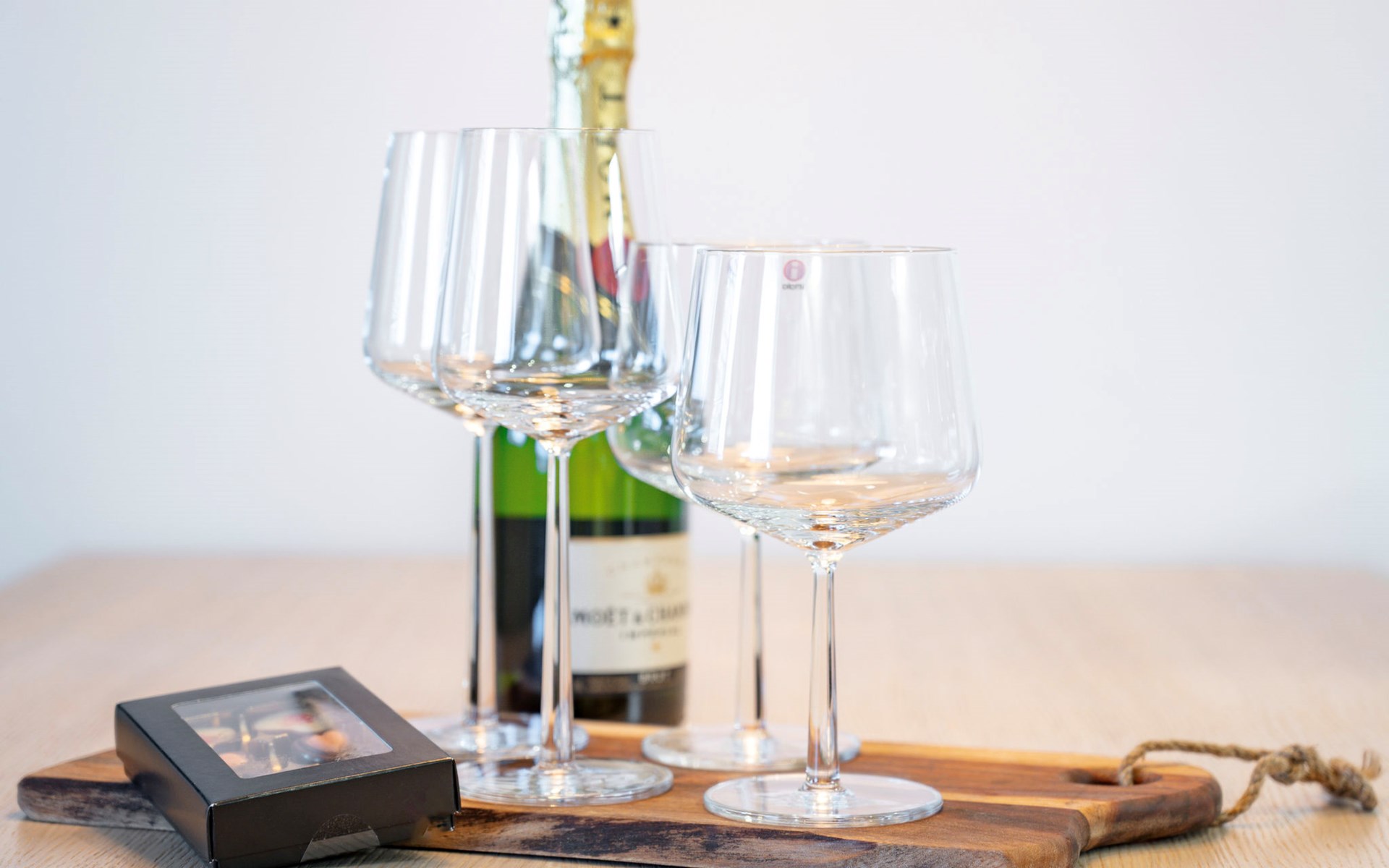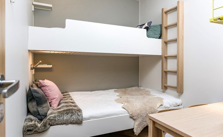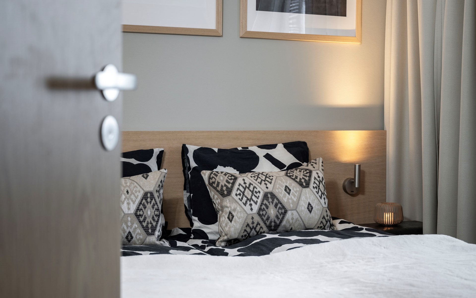 The two bedrooms comfortably accommodate a family or a small group of friends: one bedroom has a 160 cm double bed, and the other has a bunk bed with a 120 cm wide lower bed. The open-plan kitchen and cozy living area provide a perfect space for spending time together, and at the end of the day, you can unwind in the electric sauna.