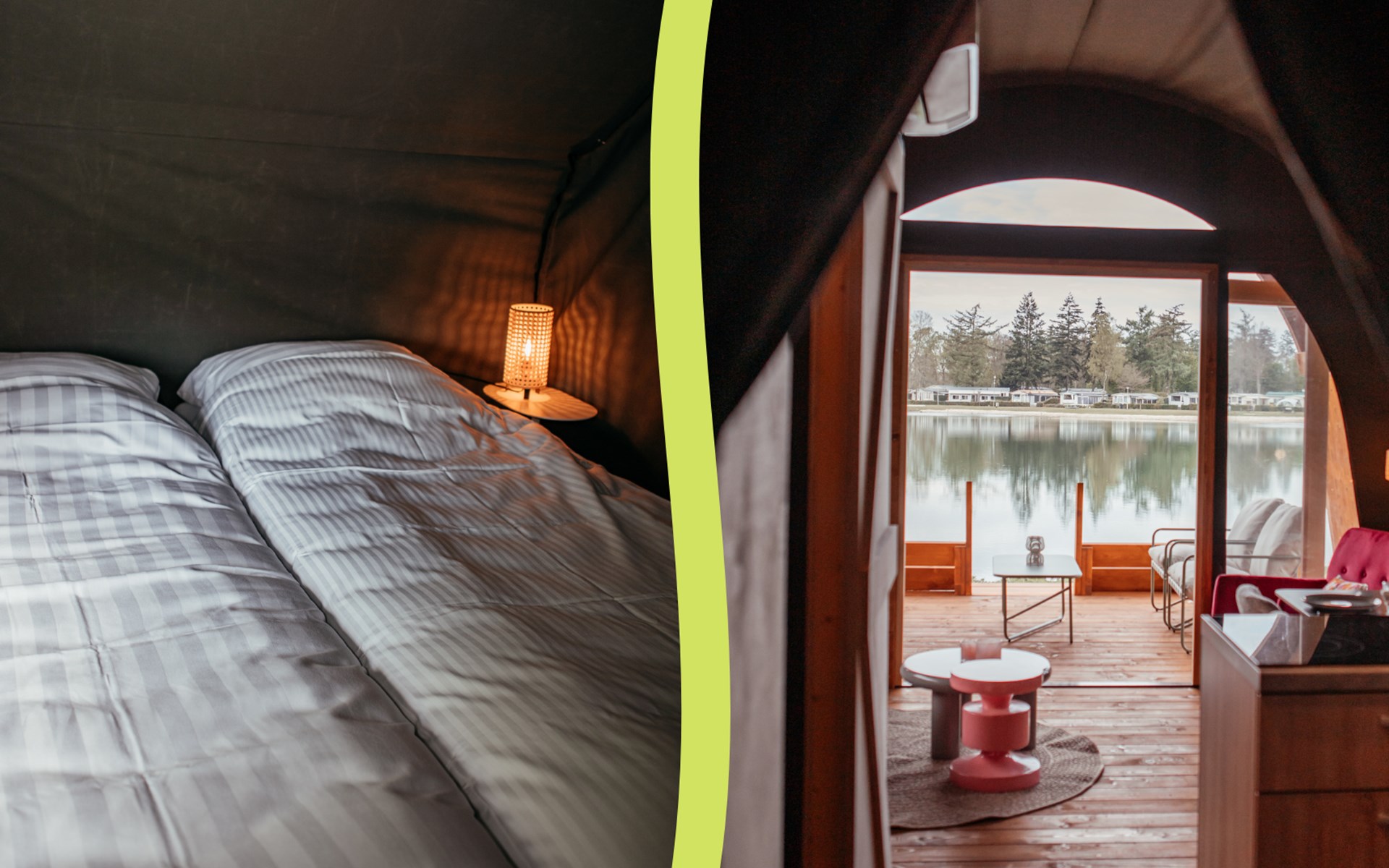 nieuwe ervaring: verblijf in de waterlodge. Mooie camping en mooie omgeving