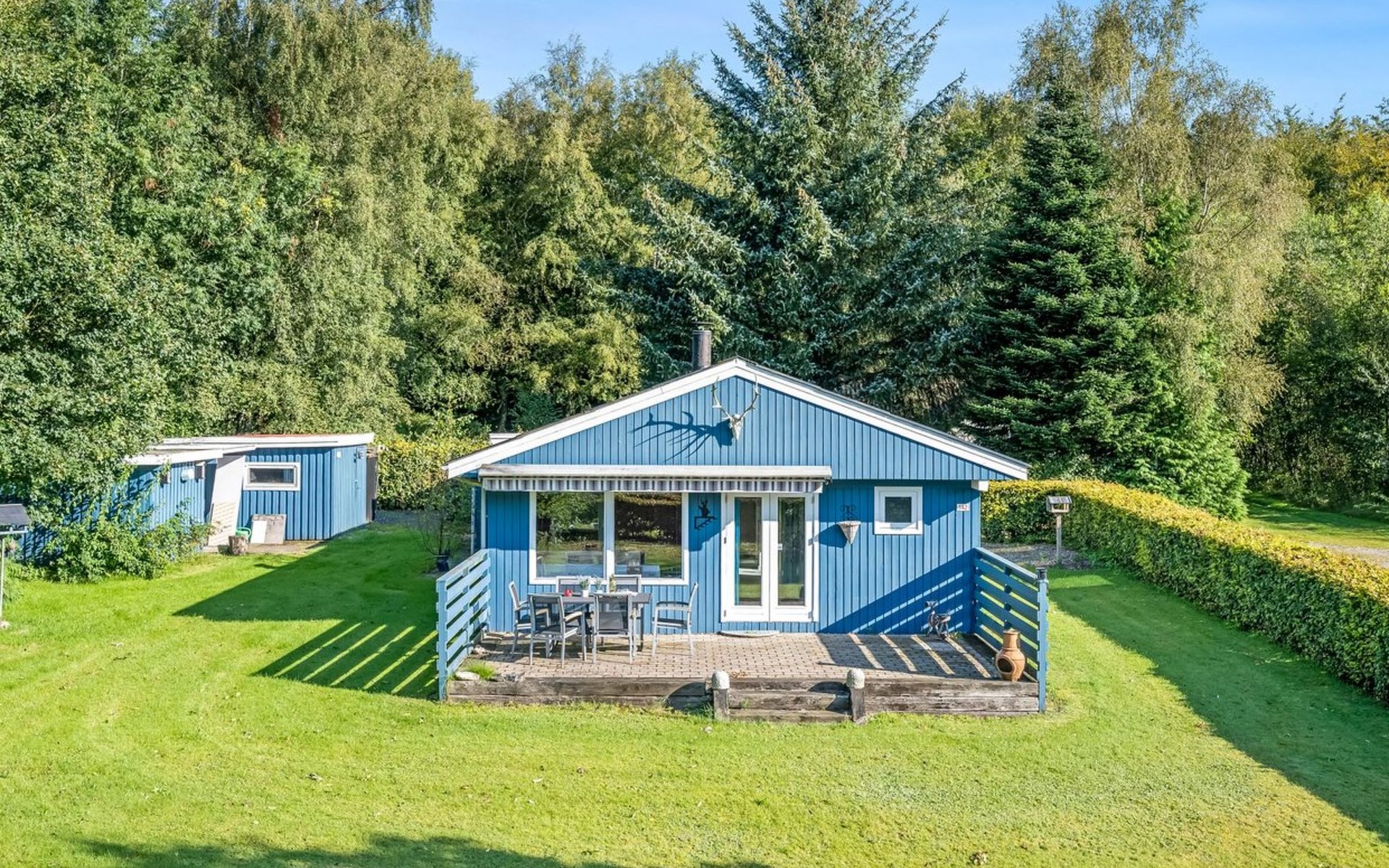 Einfamilienhaus, Baujahr 1977. 30 km vom Meer. Zur Alleinbenutzung: naturbelassenes Grundstück 850 m2. Grill. Im Hause: Waschmaschine. Parkplatz beim Haus. Carport. Lebensmittelgeschäft 1 km. Golfplatz 150 m.