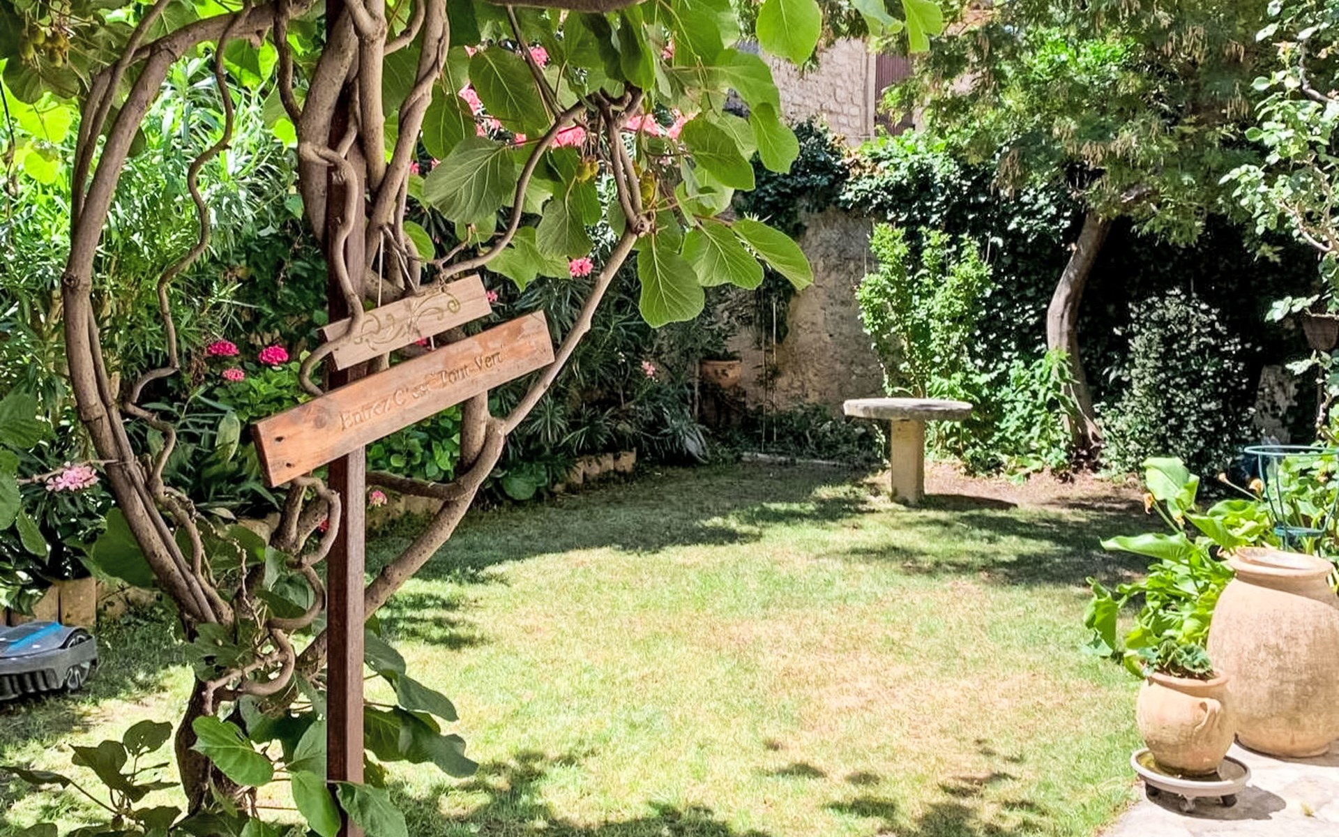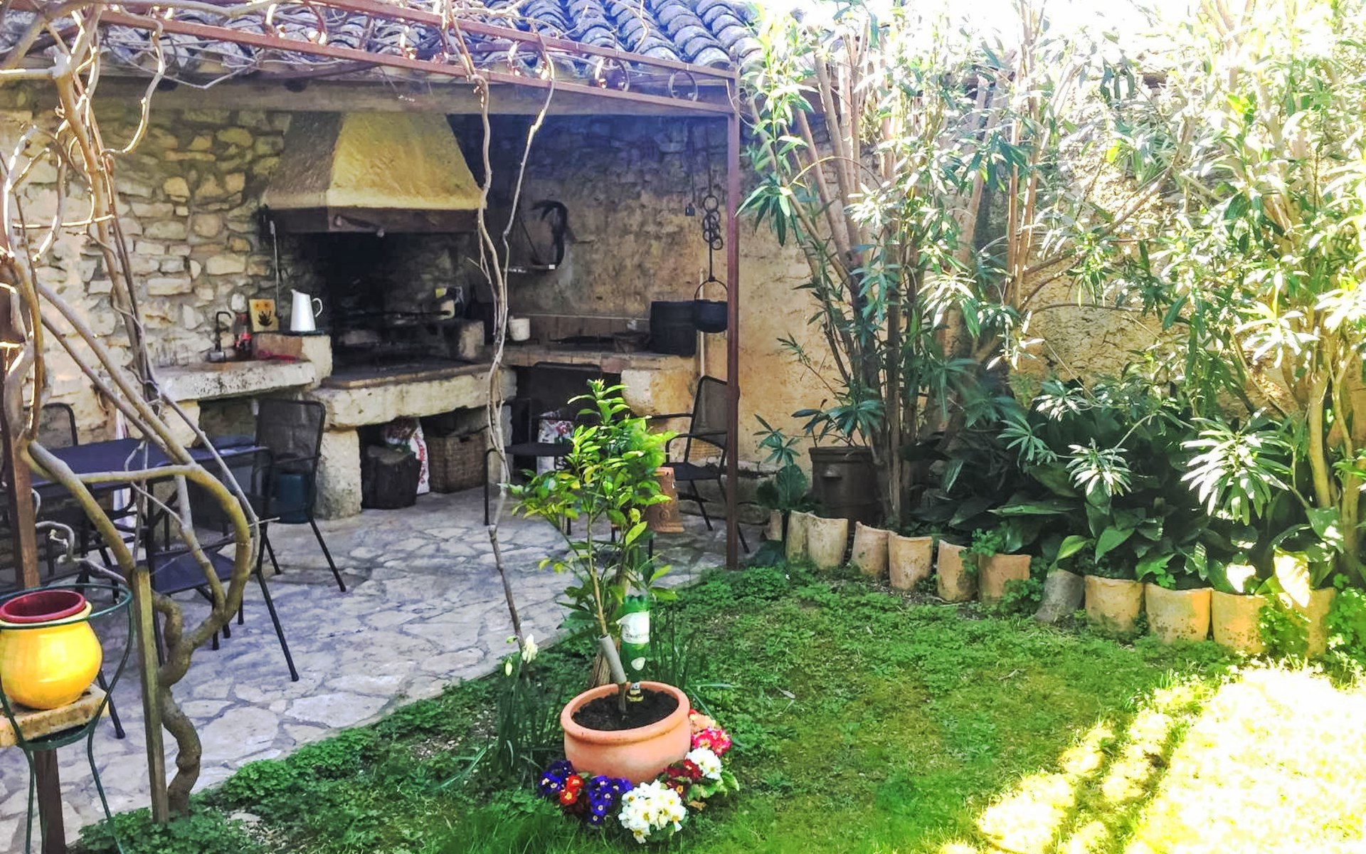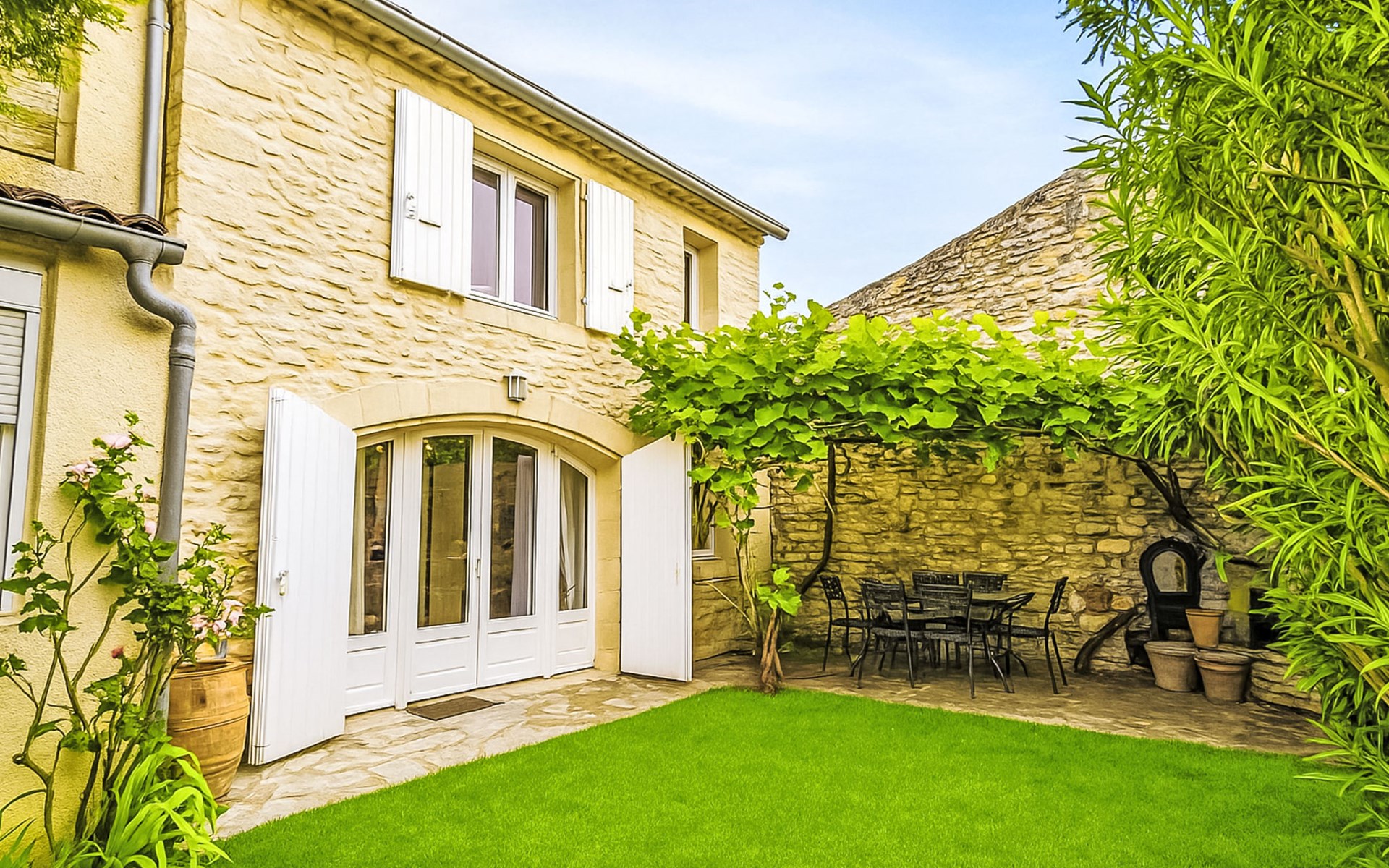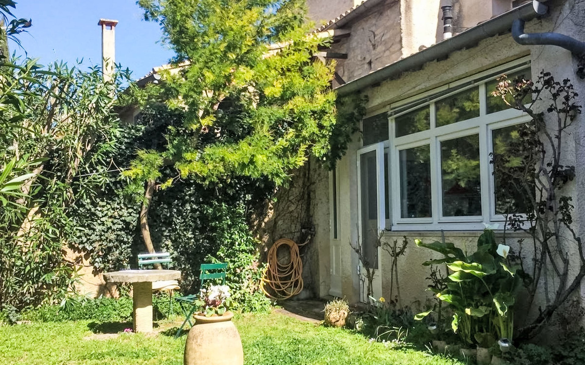 Reihenhaus "Le Jardin". Im Ortszentrum von Bernis, 11 km vom Zentrum von Nimes, 15 km vom Zentrum von Lunel, 47 km vom Zentrum von Montpellier, 32 km vom Meer, 32 km vom Strand. Zur Alleinbenutzung: Garten 80 m2 (eingezäunt), Einzelgarage. Lebensmittelgeschäft 350 m, Supermarkt 600 m, Restaurant 400 m, Bäckerei 220 m, Bushaltestelle 1.7 km, Sandstrand "Carnon" 36 km, Thermalbad 14 km. Golfplatz (18 Loch) 13 km, Segelschule 32 km, Tennis 200 m, Reitstall 4.6 km. Nahe gelegene Sehenswürdigkeiten: Nîmes 11 km, Musée et Source Perrier 8 km, La Grande Motte 32 km, Arles 40 km, Plage de l’Espiguette 40 km, Parc de jeux Piratland 11 km. Wandergebiete: Parc Régional de Camargue 30 km.