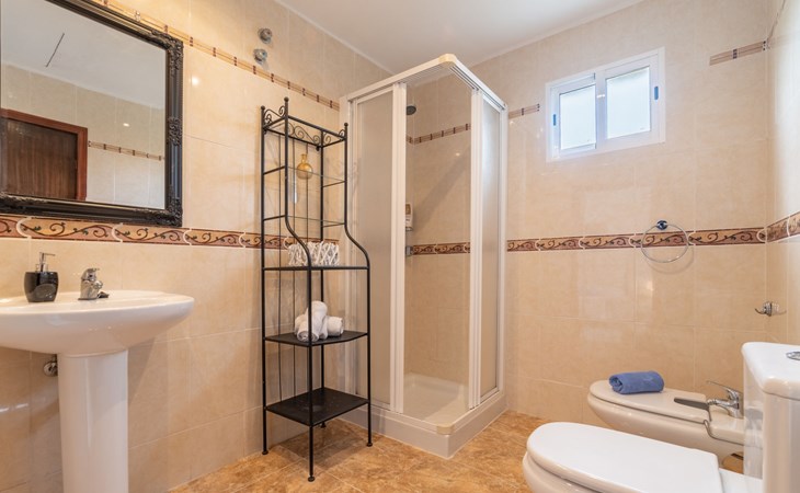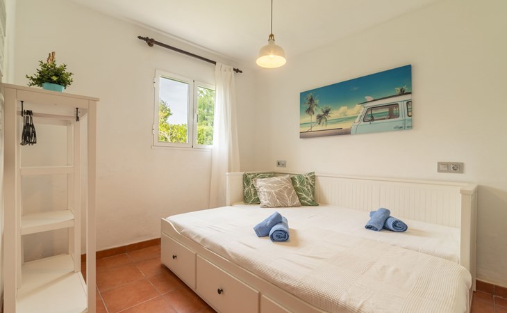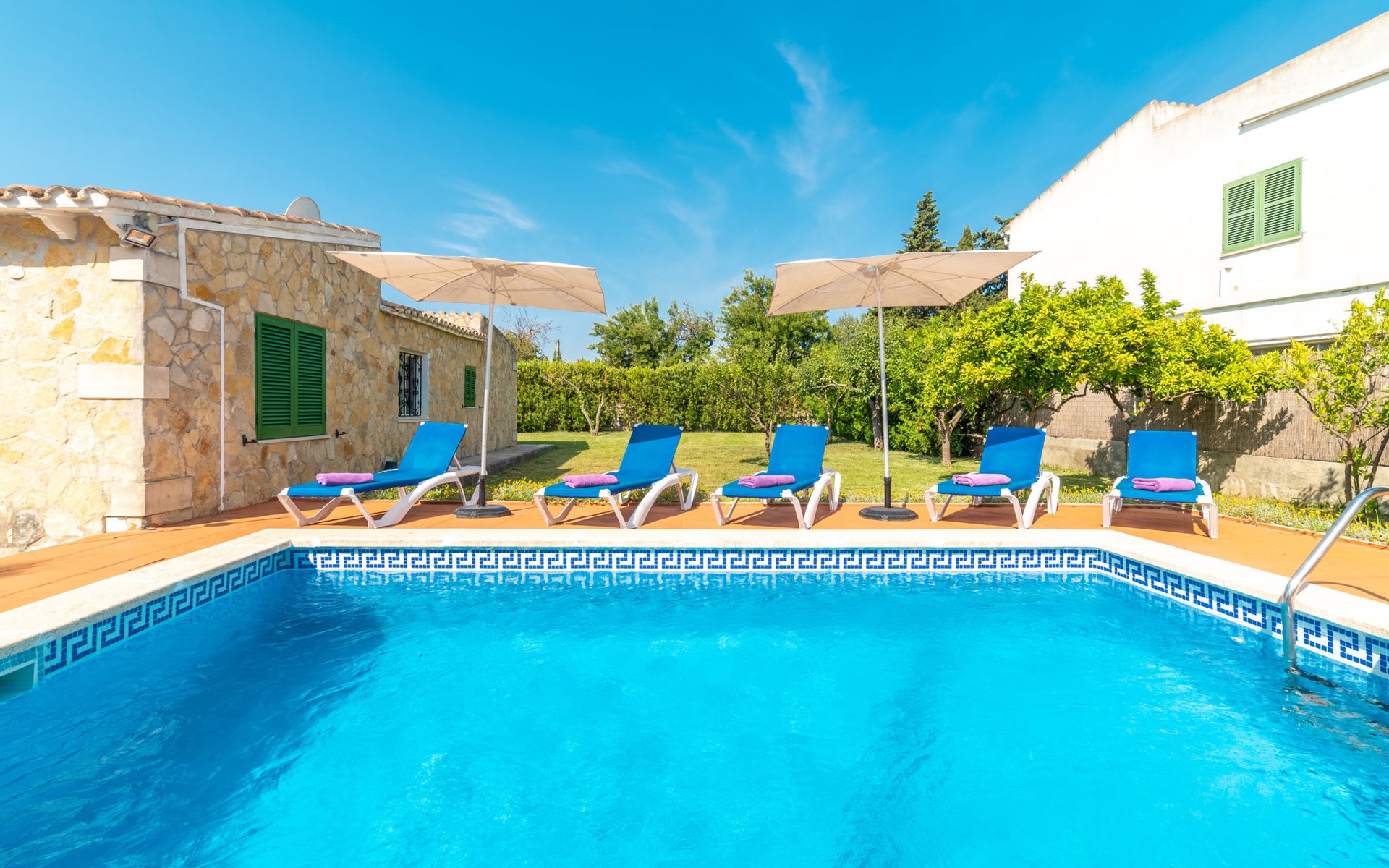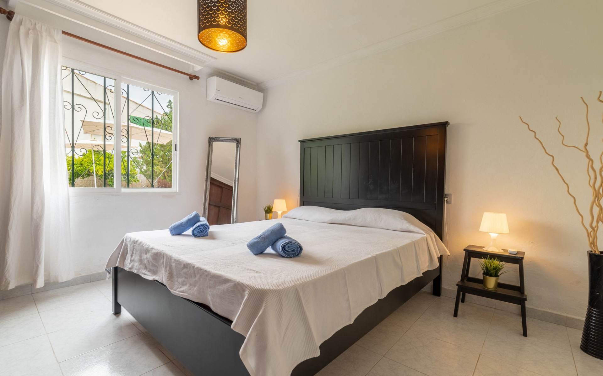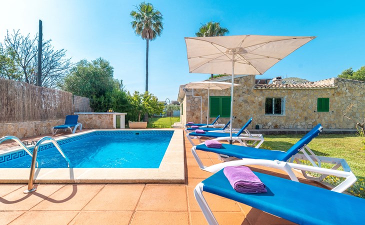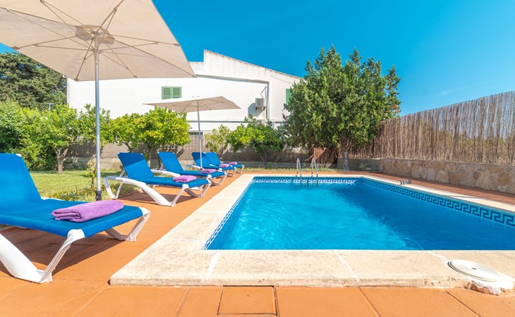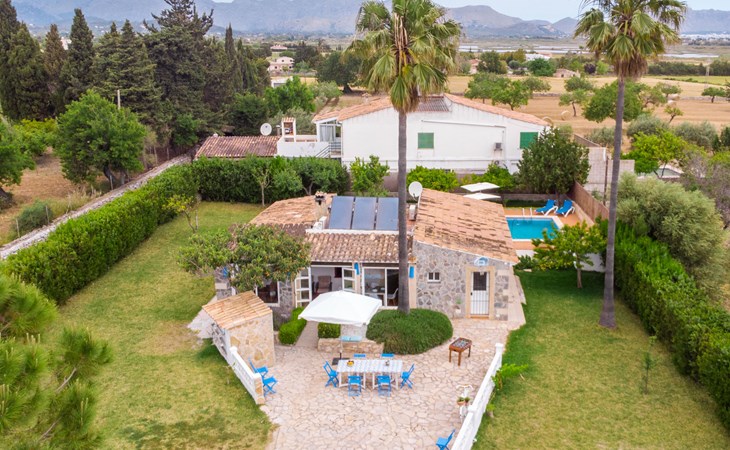 Grosse, gemütliche, komfortable Villa "Can Delfin Alcudia", renoviert. Ausserhalb des Ortes, 1.2 km vom Zentrum von Alcúdia, sonnige Lage auf einem Hügel, 900 m vom Waldrand, 2.9 km vom Meer, 3.8 km vom Strand, im Grünen, Richtung Südwesten. Zur Alleinbenutzung: Grundstück 2'800 m2 (eingezäunt), grosser, gepflegter Garten mit Rasen und Pflanzen, Schwimmbad eckig (6 x 4 m, 120 - 150 cm tief, saisonale Verfügbarkeit: 01.Jan. - 31.Dez.) mit Meerwasser. Aussendusche, Sitzplatz, Laube, Pergola, Gartenmöbel, Grill. Im Hause: Internetzugang, Wireless LAN, Einstellraum für Fahrräder, Klimaanlage, Waschmaschine, Wäschetrockner. Parkplatz beim Haus auf dem Grundstück. Einkaufsgeschäft 1.9 km, Lebensmittelgeschäft 1.5 km, Supermarkt 1.9 km, Restaurant 1.8 km, Bar 1.8 km, Bäckerei 1.8 km, Zentrum zu Fuss in 20 Minuten erreichbar, Bushaltestelle 2.1 km, Bahnstation "Sa Pobla" 12 km, Fähre "Puerto de Alcúdia" 4 km, Sandstrand "Playa de Alcúdia" 3.7 km, Steinstrand "Alcanada" 4 km, Felsstrand "Bonaire" 3 km, Tauchzentrum 3 km, Hallenbad 1 km. Sporthafen 4 km, Jacht-Hafen 4 km, Golfplatz (18 Loch) 4 km, Surfschule 3 km, Segelschule 3 km, Tennis 3 km, Reitstall 2 km, Sportzentrum 2 km, Wanderwege ab Haus 1 km, Radweg 2 km. Nahe gelegene Sehenswürdigkeiten: Alcúdia Old Town 1.2 km, Port Pollença - Pollença. 5 km, Hidropark Aquatic Park. Alcúdia 3 km, Wake Park Alcúdia 3.5 km. Wandergebiete: Serra Tramuntana 10 km, Talaia Alcúdia - Puig Sant Marti 6 km, Albufera de Mallorca 10 km. Bitte beachten: Fahrzeug empfohlen. Geeignet für Familien, geeignet für Senioren. Objekt geeignet für 8 Erwachsene Jugendgruppen nur auf Anfrage. Hauptstrasse in der Nähe. Flugplatz 55 km vom Haus. Das Leitungswasser hat keine Trinkwasserqualität.