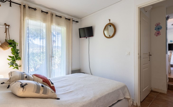 Pramousquier 8 km von Le lavandou: Schöne, gemütliche, komfortable Residenz "Cap Négre: Domaine de la Pinède", angebaut, umgeben von Bäumen. 100 m vom Meer, direkter Zugang zum Strand. Zur Mitbenutzung: gepflegter Garten (nicht eingezäunt) mit Pflanzen und Blumen, Schwimmbad beheizt, nicht einsehbar, eingezäunt (17 x 9 m, 55 - 260 cm tief, saisonale Verfügbarkeit: 06.Apr. - 30.Okt.). Aussendusche, Boccia. In der Anlage: Waschmaschine (zur Mitbenutzung, extra). Treppenweg bis zum Haus. Parkplatz. Lebensmittelgeschäft 2 km, Supermarkt 8 km, Restaurant 500 m, Bushaltestelle "Lavandou Gare routière" 6 km, Sandstrand "de Pramousquier" 100 m. Sporthafen 8 km. Bitte beachten: Die Schlüsselübergabe findet bei der Agentur Interhome in Le Lavandou statt, 9 km. Weitere Unterkünfte sind buchbar.