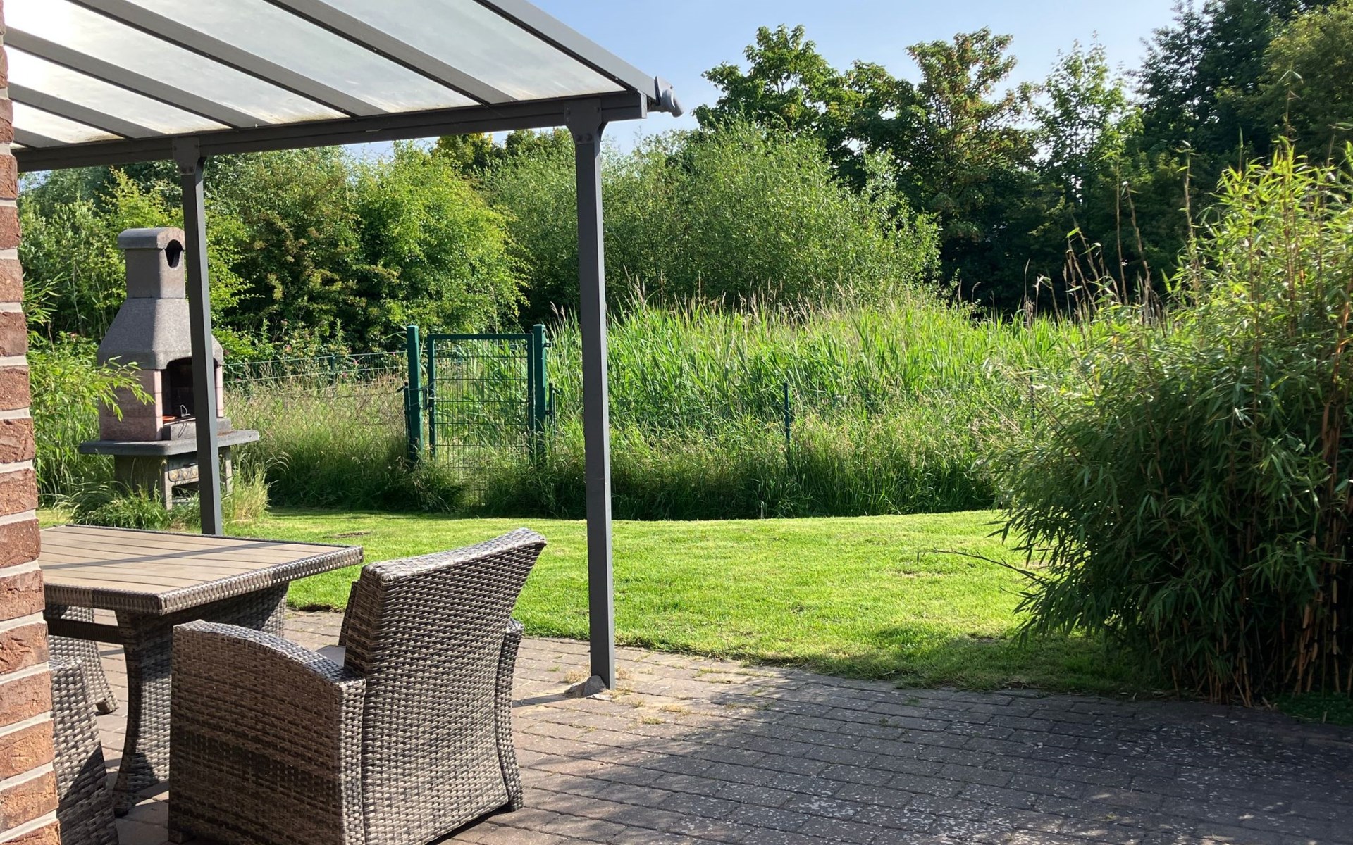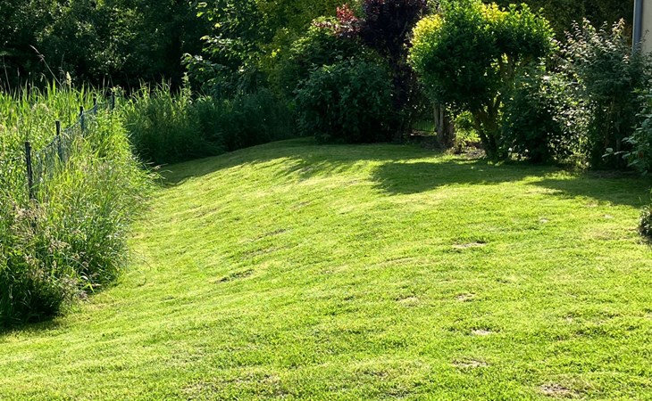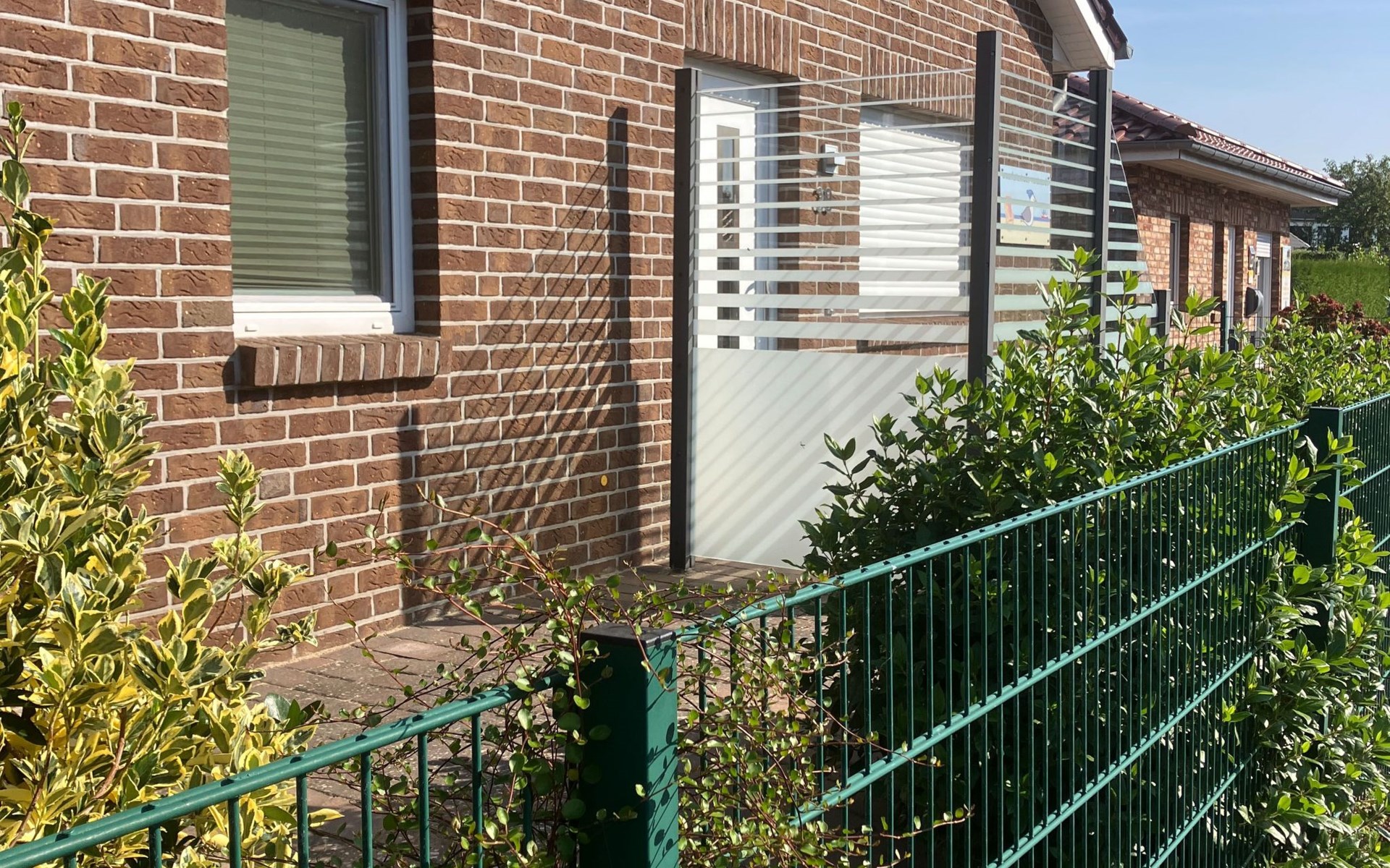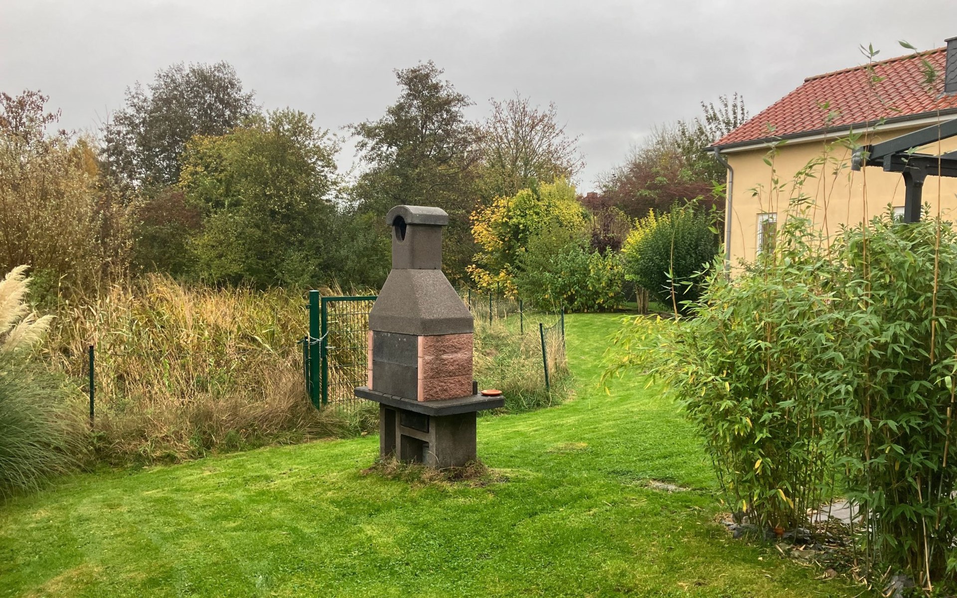 - komplett eingefriedet (mit Mauer, Zaun oder Hecke)
