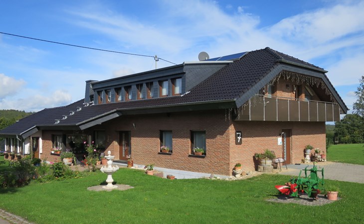 Kottenborn 5 km von Adenau: Zweifamilienhaus "Dreser". Am Ortsrand, ruhige Lage. Zur Mitbenutzung: Garten. Sitzplatz, Gartenmöbel, Kinderspielplatz (Schaukel, Sandkasten). Im Hause: Frühstücksraum, Sauna (extra). Zentralheizung. Frühstück möglich (extra). Parkplatz beim Haus. Einkaufsgeschäft 5 km, Restaurant 5 km, Bushaltestelle 200 m, Bahnstation "Ahrbrück" 15 km. Golfplatz (18 Loch) 39 km, Tennis 5 km. Nahe gelegene Sehenswürdigkeiten: Nürburgring (Start und Ziel) 6 km. Bitte beachten: Fahrzeug empfohlen. Gartenblockhaus und Trampolin für Kinder zur Mitbenutzung.