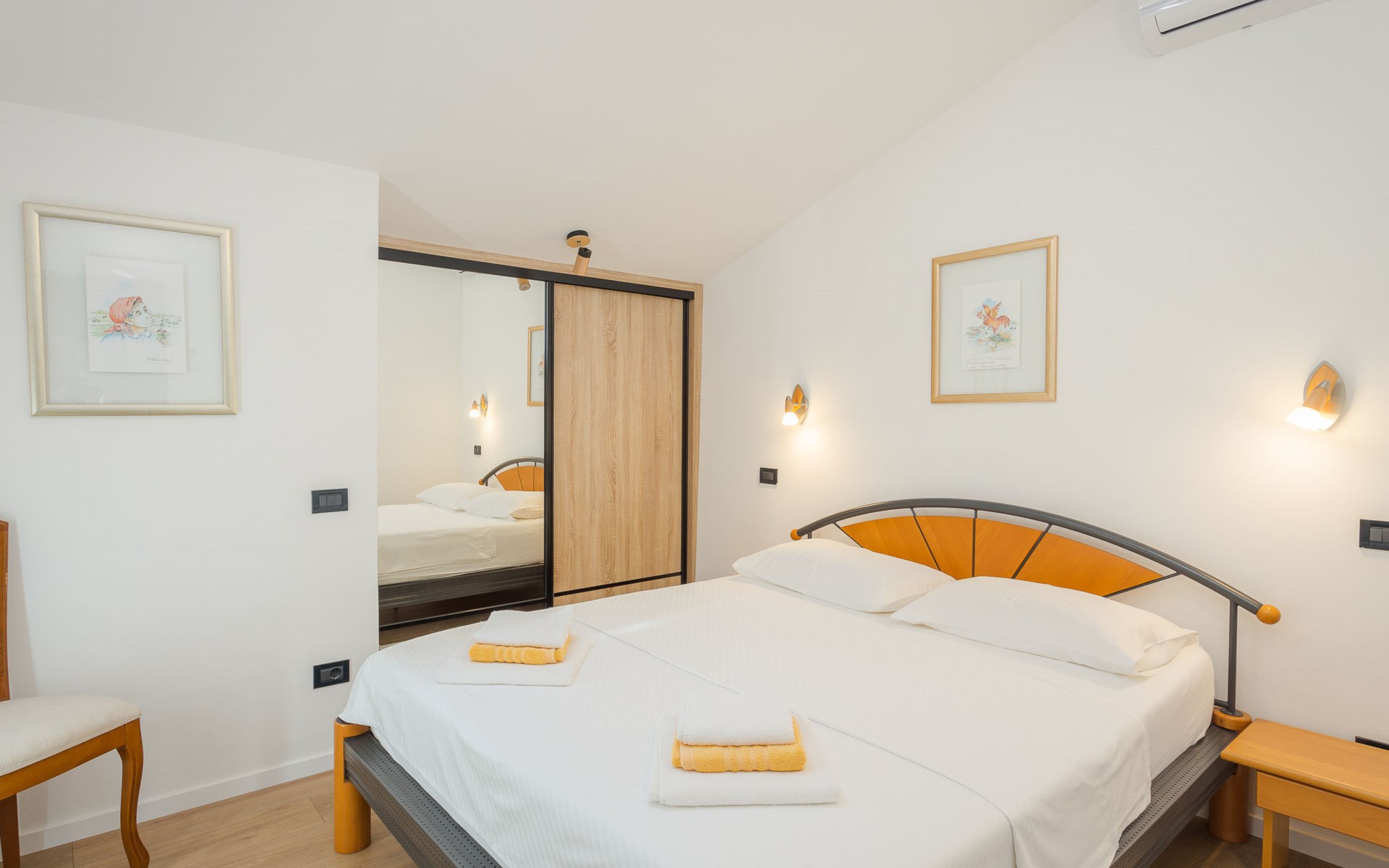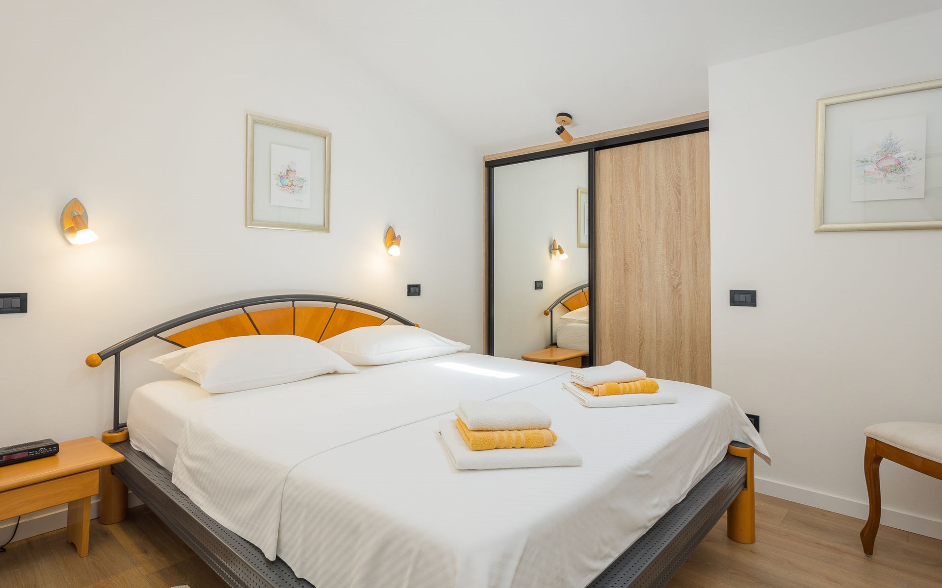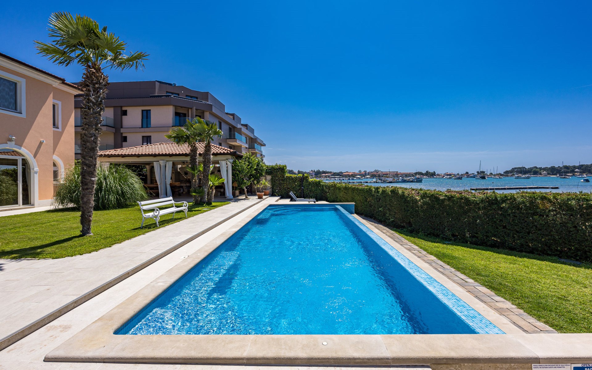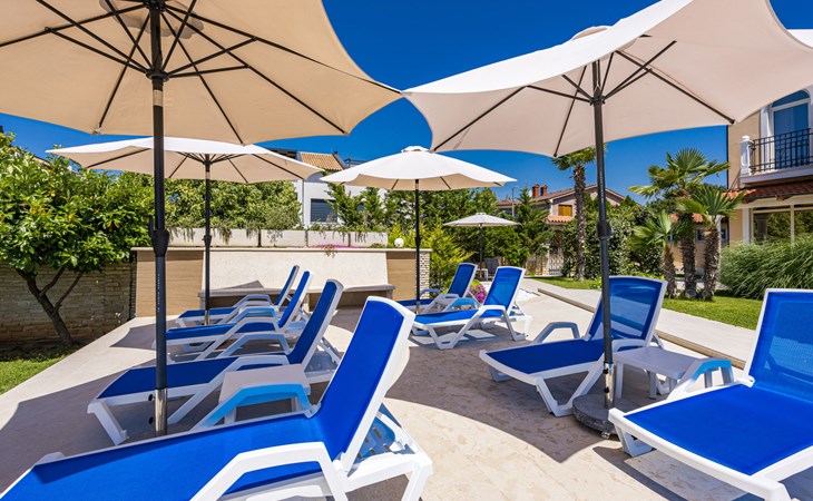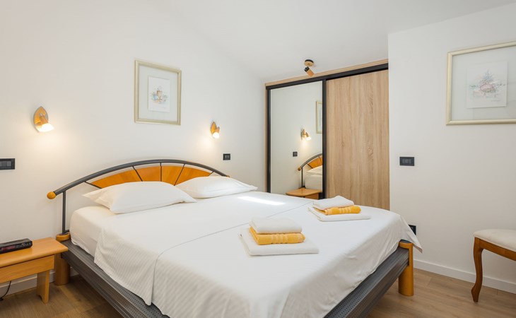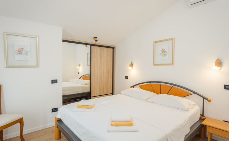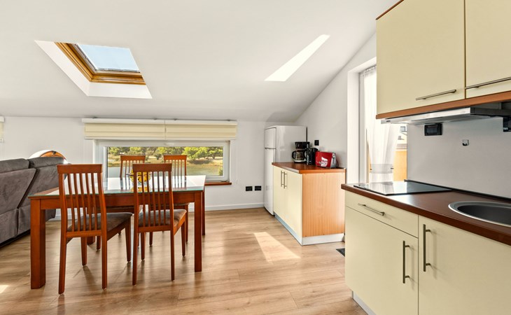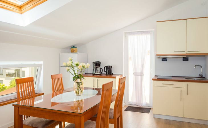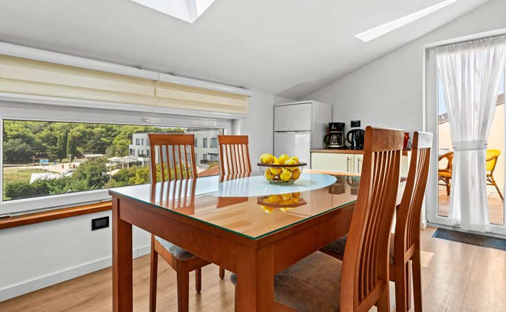 Schönes, gemütliches Appartementhaus "Villa Vizula", auf 3 Stockwerken. 500 m vom Zentrum von Medulin, sonnige Lage, 10 m vom Meer, 250 m vom Strand. Zur Mitbenutzung: Grundstück 1'000 m2 (eingezäunt), Schwimmbad eckig (11 x 4 m, 40 m2, saisonale Verfügbarkeit: 01.Jun. - 01.Okt.). Aussendusche, Terrasse (20 m2), Gartenmöbel, Grill. Im Hause: Internetzugang. Parkplatz beim Haus auf dem Grundstück. Supermarkt 200 m, Restaurant 150 m, Bar 200 m, Bushaltestelle 100 m, Sandstrand 900 m, Kieselstrand 300 m, Felsstrand 250 m. Surfschule 2 km, Tennis 2 km, Reitstall 2 km, Sportzentrum 700 m, Wanderwege ab Haus 100 m, Radweg 200 m.