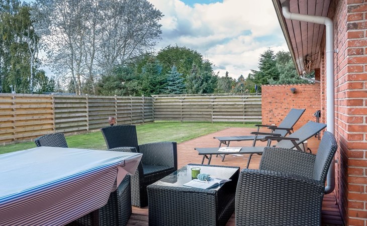 Einfamilienhaus, Baujahr 1985. 500 m vom Meer. Zur Alleinbenutzung: naturbelassenes Grundstück 985 m2. Grill. Im Hause: Waschmaschine, Wäschetrockner. Parkplatz beim Haus. Carport. Lebensmittelgeschäft 200 m. Golfplatz 1.5 km. Der Besitzer akzeptiert keine Jugendgruppen.