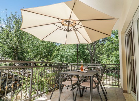 Der Außenbereich der Wohnung ist ebenso ansprechend, mit einem privaten Balkon, der einen teilweisen Blick auf das Meer bietet und die perfekte Kulisse für ruhige Morgen oder entspannende Abende bildet. Im 2. Stock eines Einfamilienhauses gelegen, bietet es sowohl Privatsphäre als auch die Nähe zum beruhigenden Reiz des Meeres, was den Gesamteindruck der Unterkunft noch verstärkt.