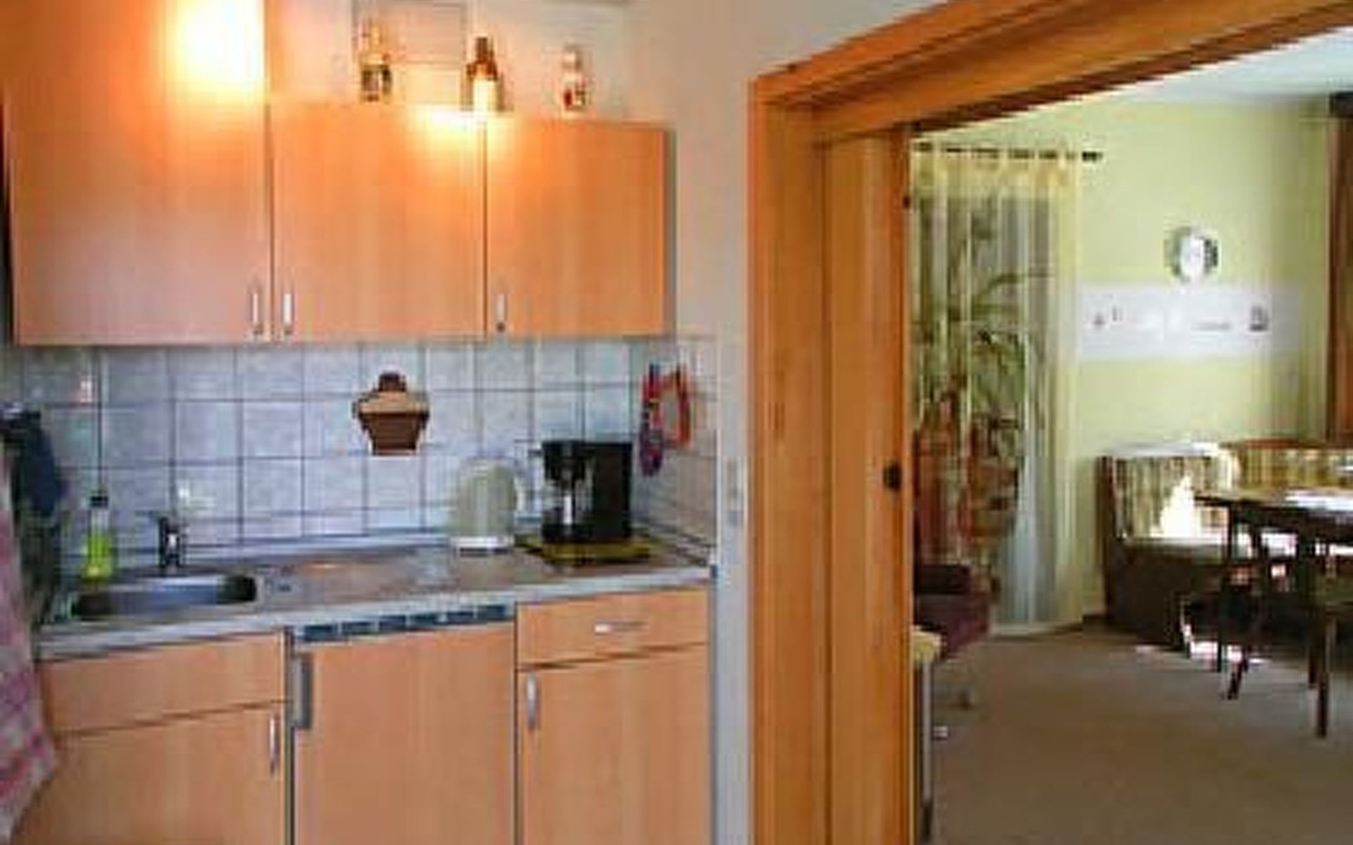 Im Inneren erwartet Sie eine gut ausgestattete Küchenecke, welche mit einem 2-Platten-Herd, einem Cerankochfeld, einer herkömmlichen Kaffeemaschine sowie einer Filter-Kaffeemaschine und einem Wasserkocher ausgestattet ist. Diese Annehmlichkeiten machen die Selbstversorgung zum Kinderspiel. Die Ferienwohnung im historischen Gebäude verfügt zudem über einen separaten Eingang, was Ihren Aufenthalt hier umso angenehmer gestaltet.
