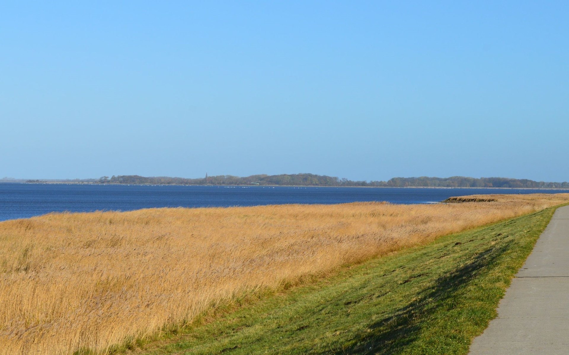 Die kleine Insel verfügt an der längsten Stelle über einen Durchmesser von etwa 8,5 Kilometern und kann daher ideal mit dem Fahrrad erkundet werden. Hierbei lädt der flache Deichradweg auf ebener Fahrbahn zu ausgedehnten Spazierfahrten ein. Eine Kite-Surfing Schule auf der anderen Inselseite bietet sportliche Abwechslung. Während Cafés, Gaststätten, Restaurants und Fischgastronomie 400 m entfernt liegen, erreichen Sie den Strand nach 500 Metern. Lebensmittelgeschäfte sind ca. 2 km entfernt. Die Insel ist über die Brücke mit dem Auto befahrbar, alternativ sind die Wassertaxis ein unvergessliches Fortbewegungsmittel.