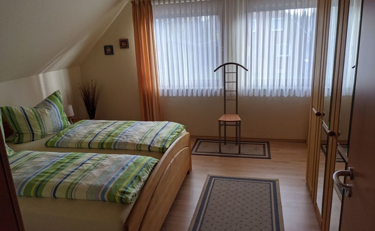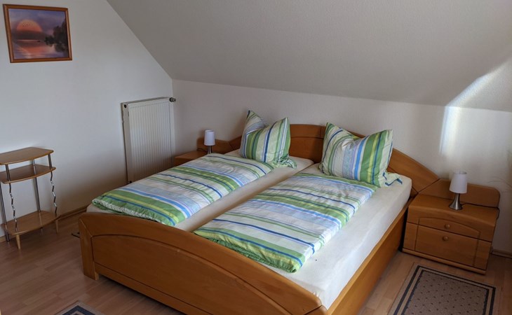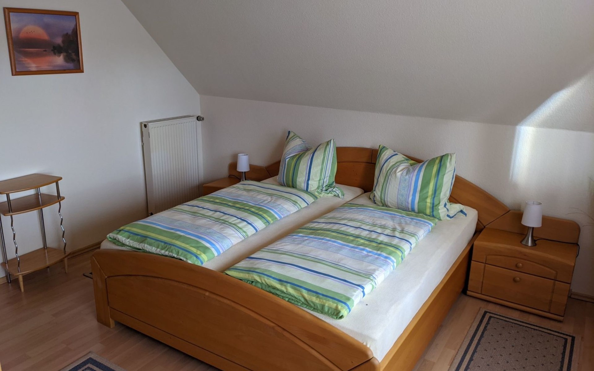 Im geräumigen Schlafzimmer befindet sich ein großes 180x200 cm großes Doppelbett mit passenden Nachtschränken und einem 5-türigen Kleiderschrank. Hier lädt alles zu einem ausgiebigen, erholsamen Urlaub in Wilhelmshaven ein.