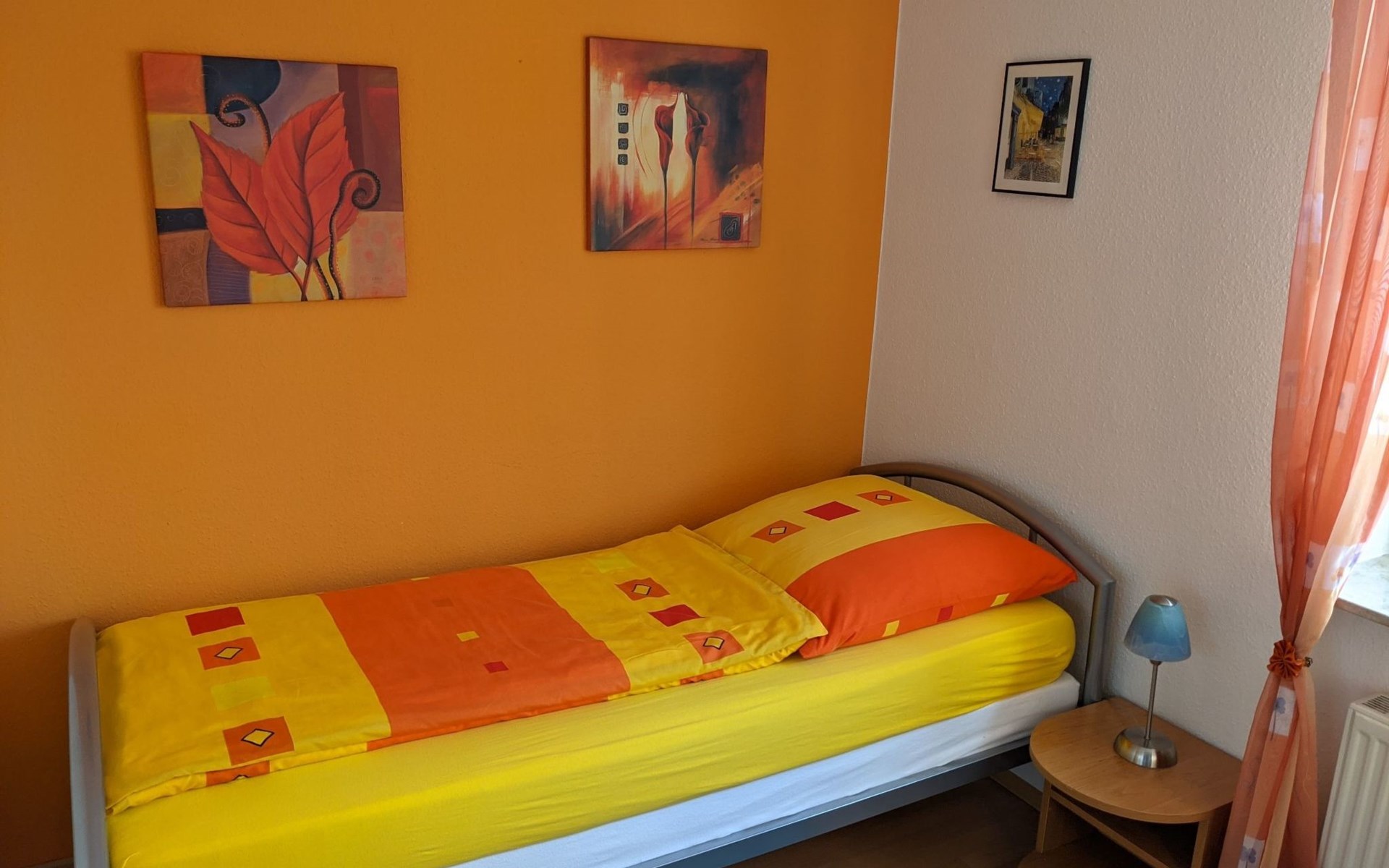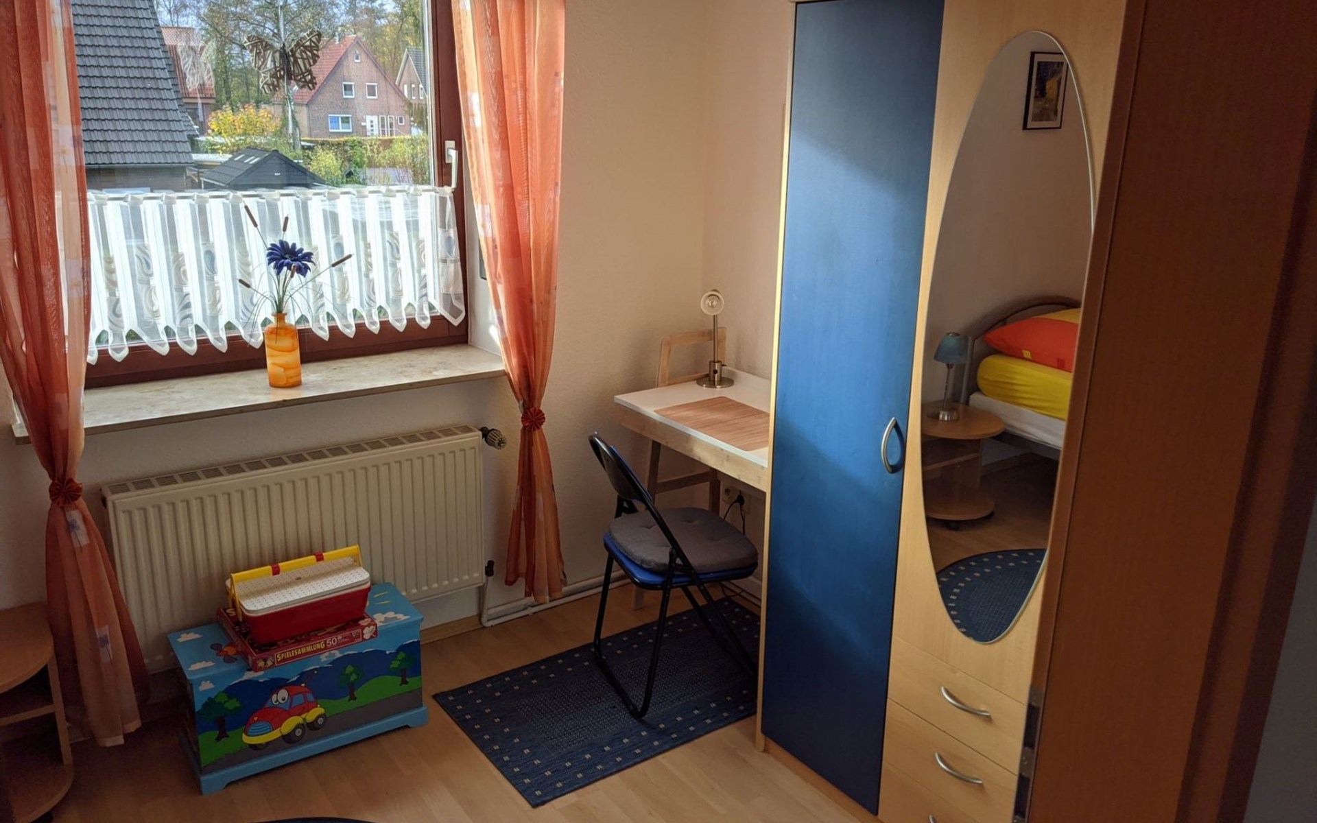 Das große Zimmer verfügt über ein 90x200 cm großes Einzelbett, einen Kleiderschrank und einem Schreibtischpatz unter dem Fenster. Hier fühlt sich jeder wohl.