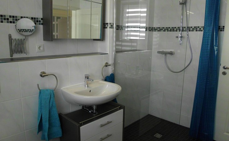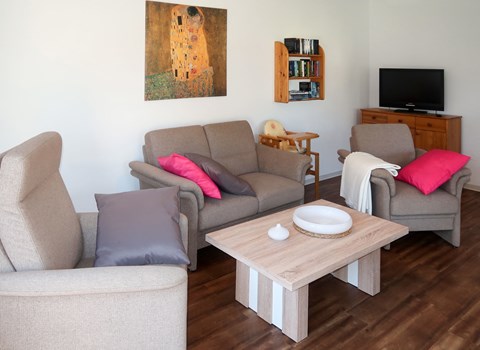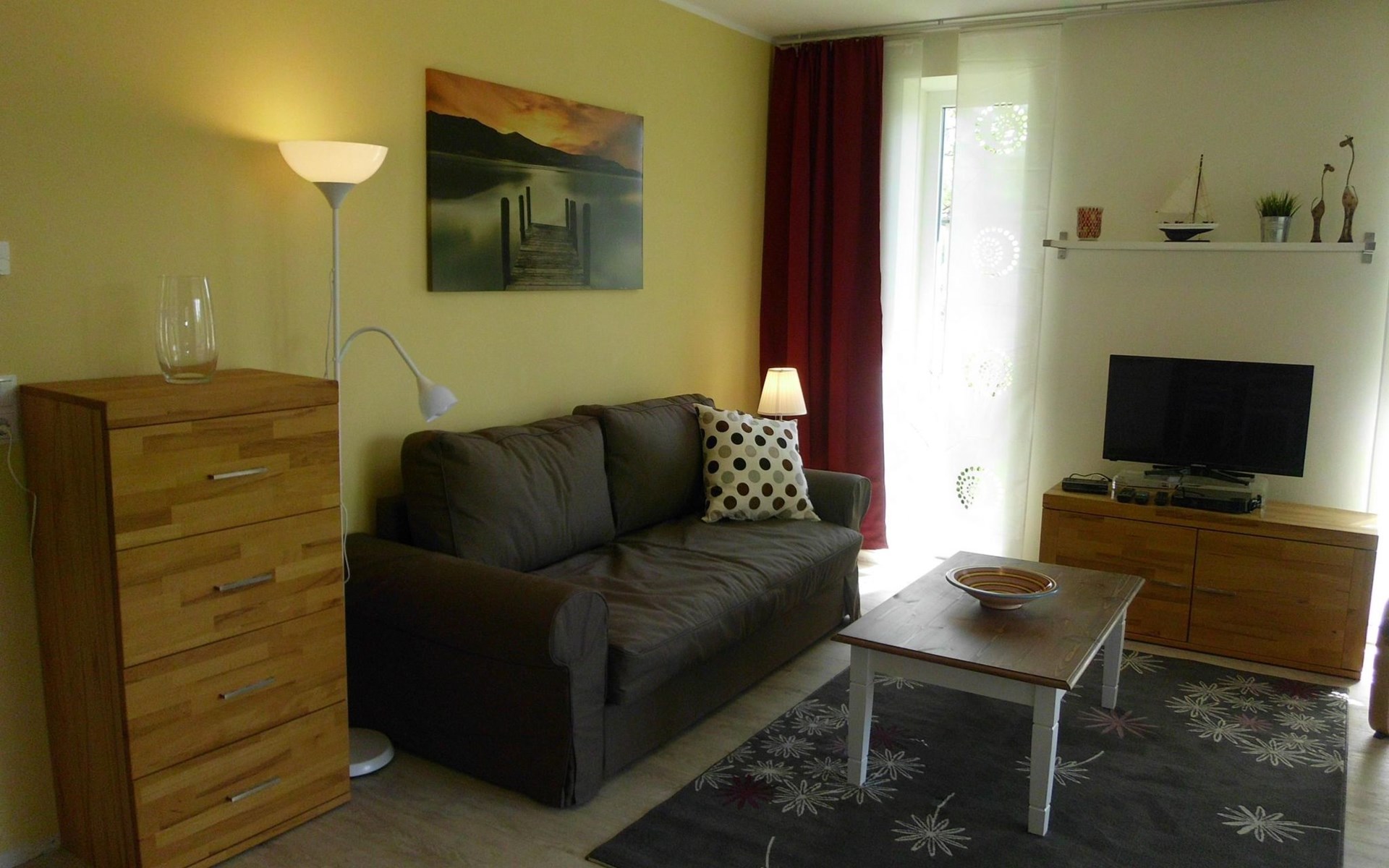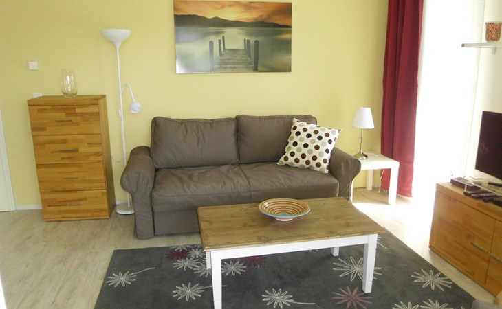 Die Wohnung verfügt über ein großes Schlafzimmer mit Doppelbett (180 x 200 cm) mit sehr guten Kaltschaummatrazen und einem großen Kleiderschrank. Im gemütlichen Wohnbereich ist eine zusätzliche Schlafcouch vorhanden. Ein Sessel, TV und DVD-Player komplettieren die Ausstattung. Angrenzend befindet sich der Essbereich, der nicht nur zu Mahlzeiten, sondern auch zum gemütlichen Verweilen und Spielen einlädt. Die Küche ist reichhaltig ausgestattet mit Kühlschrank und Gefrierfach, E-Herd mit Backofen, Geschirrspüler, Mikrowelle, Kaffeemaschine, Wasserkocher, Toaster sowie reichlich Geschirr, Gläser, Besteck und Kochutensilien. Das großzügige Duschbad mit bodengleicher Dusche ist funktionell eingerichtet u.a. mit Spiegelschrank, Schminkspiegel und Haartrockner.
