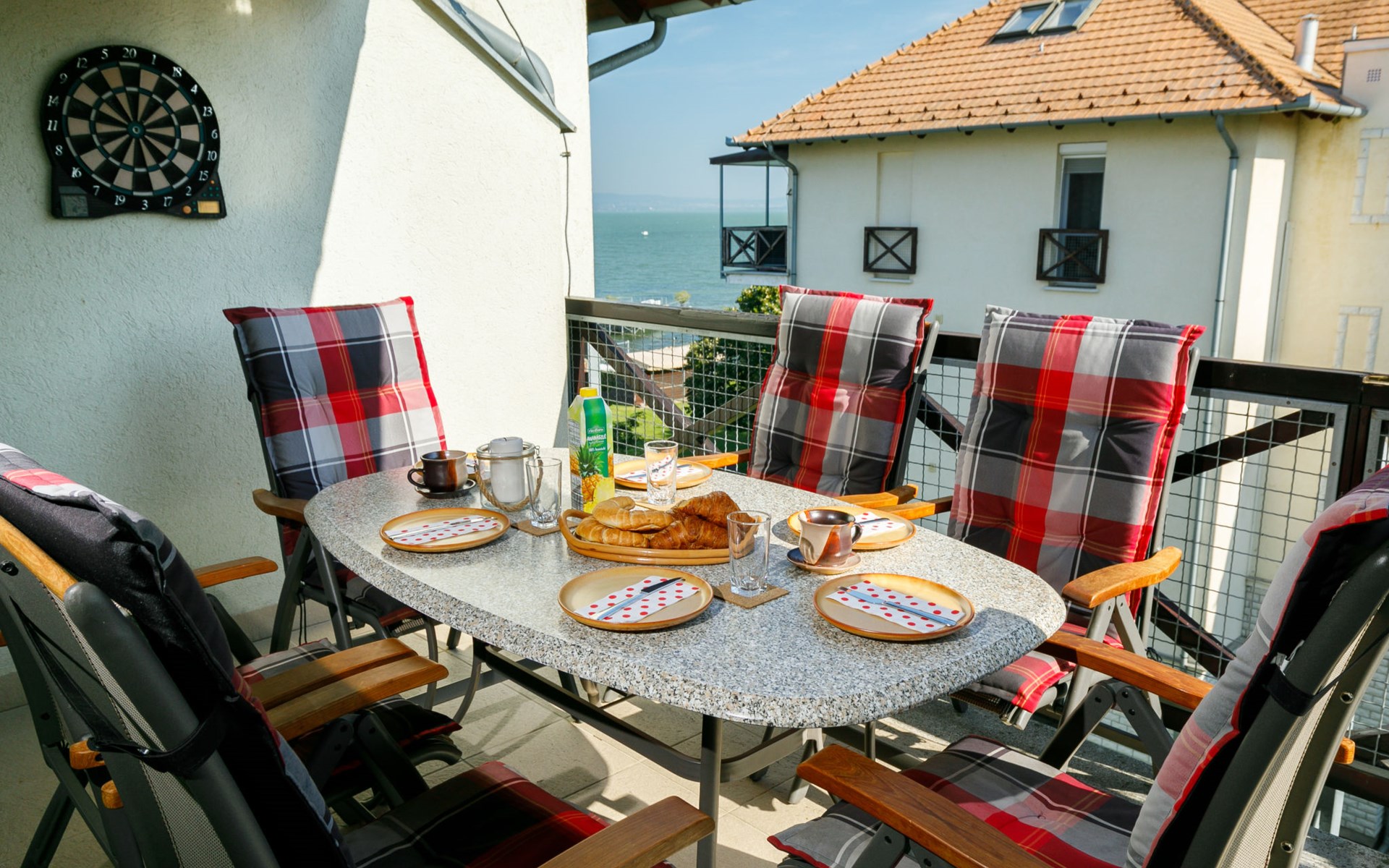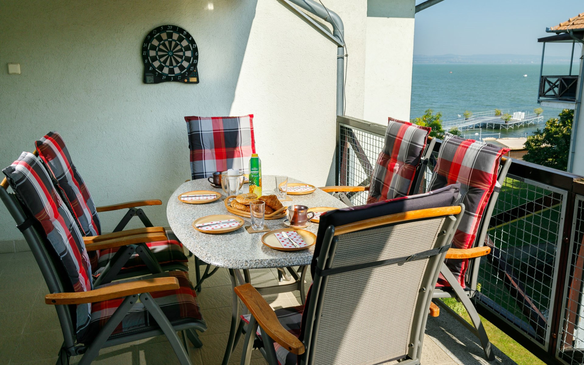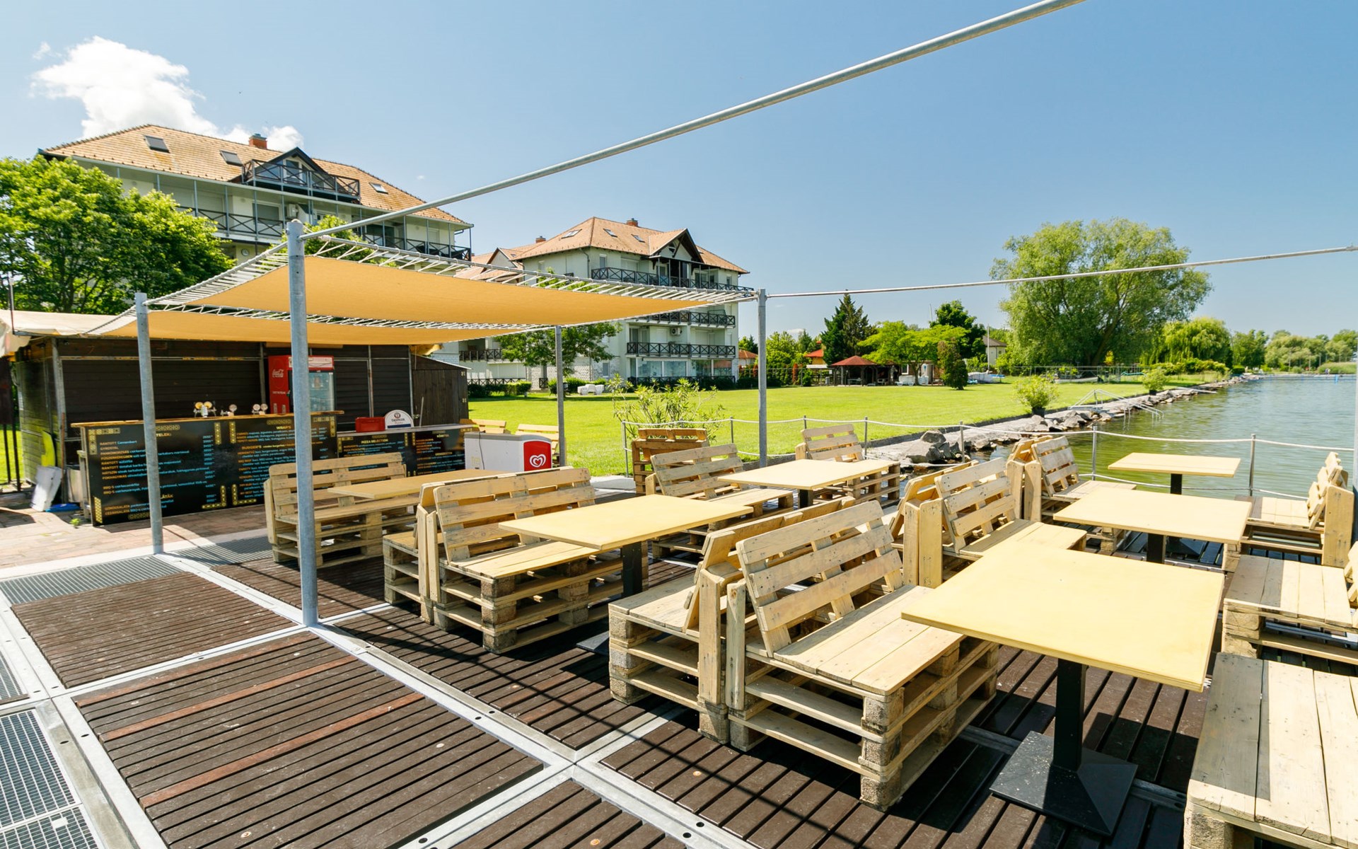 Balatonőszöd 8 km von Balatonlelle: Residenz. Im Ort, 20 m vom See, 20 m vom Strand, direkter Zugang zum Strand. Zur Mitbenutzung: Aussendusche, Tischtennis, Grill, Kinderspielplatz (Rutschbahn, Schaukel, Sandkasten), Badesteg. Im Hause: Wireless LAN, Fahrstuhl, Zentralheizung, Klimaanlage. Lebensmittelgeschäft 3 km, Supermarkt 8 km, Restaurant 2 km, Bäckerei 3 km, Café 2 km, Bushaltestelle 2 km, Bahnstation 2 km, Grasstrand 20 m, Thermalbad "Csiszta" 38 km. Surfschule 6 km, Segelschule 8 km, Tennis 2 km, Radweg, Kinderspielplatz 50 m. Nahe gelegene Sehenswürdigkeiten: Siófok Giant Weels 30 km, Kereki Dinosaur Park 17 km, Tihany 15 km, Bella Zoo Siófok 26 km.