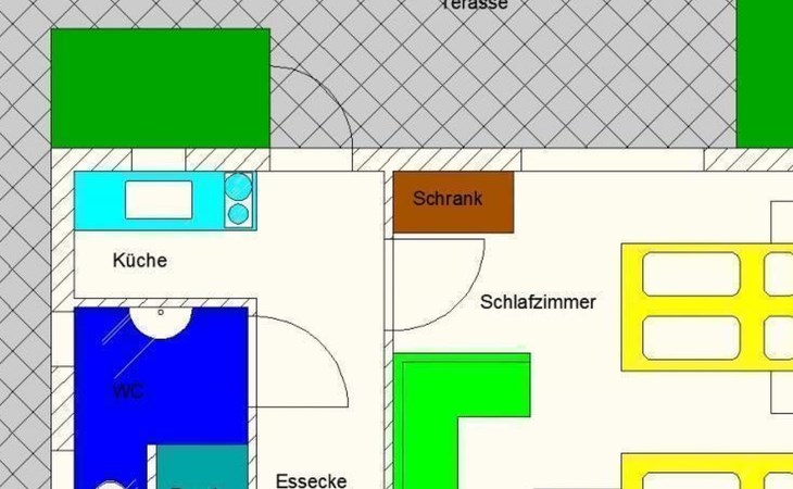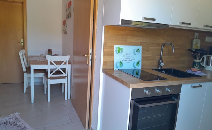 Die Wohnung "Kalle" empfängt Sie mit einer herzlichen und barrierefreundlichen Einrichtung. Sie ist optimal auf die Bedürfnisse von zwei Personen zugeschnitten, wobei besondere Rücksicht auf Rollstuhlfahrer gelegt wird. Das kombinierte Wohn- und Schlafzimmer bietet mit seinem erhöhten Doppelbett und der gemütlichen Sofaecke samt Flachbild-TV und Radioanlage mit CD höchsten Komfort. Die moderne Küche in der geräumigen Diele lässt mit Kühlschrank, Gefrierfach, Backofen, Kaffeemaschine, Wasserkocher, Toaster und Mikrowellengrill keine Wünsche offen. Das barrierefreie Duschbad mit Duschsitz komplettiert diese behagliche Ferienwohnung.