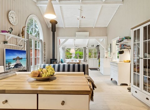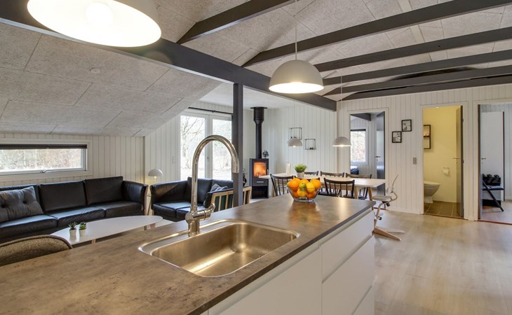 Einfamilienhaus, Baujahr 1981. Zur Mitbenutzung: Garten. Zur Alleinbenutzung: naturbelassenes Grundstück 950 m2, Garten (eingezäunt). Terrasse (70 m2). Im Hause: Waschmaschine, Wäschetrockner. Parkplatz beim Haus. Lebensmittelgeschäft 3 km.
