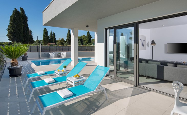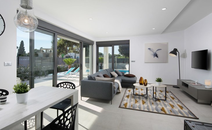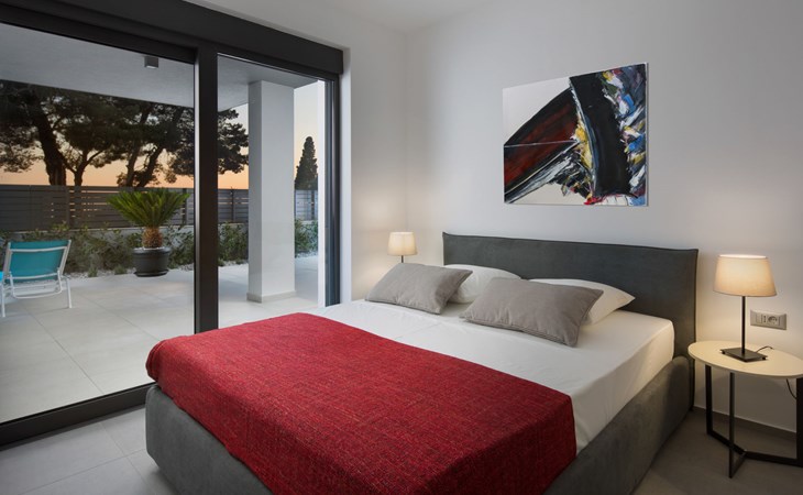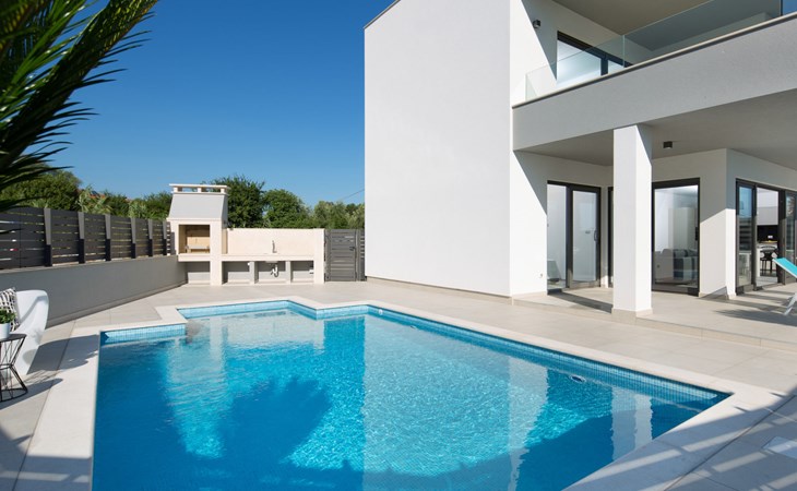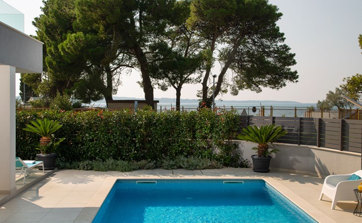 Moderne Villa "Villa Fasana". 5 Wohnungen im Ferienhaus. 150 m vom Zentrum von Fažana, ruhige, sonnige Lage, 50 m vom Meer, 50 m vom Strand. Zur Mitbenutzung: Grundstück (eingezäunt). Zur Alleinbenutzung: Grundstück 100 m2 (eingezäunt), kleiner Garten, Schwimmbad eckig (6 x 4 m, 140 cm tief, saisonale Verfügbarkeit: 04.Apr. - 10.Okt.) mit Innentreppe. Aussendusche, Grill. Im Hause: Internetzugang. Parkplatz beim Haus auf dem Grundstück. Einkaufsgeschäft 300 m, Supermarkt 1 km, Restaurant 150 m, Bushaltestelle 500 m, Kieselstrand, betonierter Strand 50 m. Golfplatz (18 Loch) 2 km, Surfschule 2 km, Tennis 1 km, Reitstall 5 km, Wanderwege ab Haus 50 m, Radweg 100 m. Nahe gelegene Sehenswürdigkeiten: NP Brijuni 500 m. Der Besitzer akzeptiert keine Jugendgruppen.