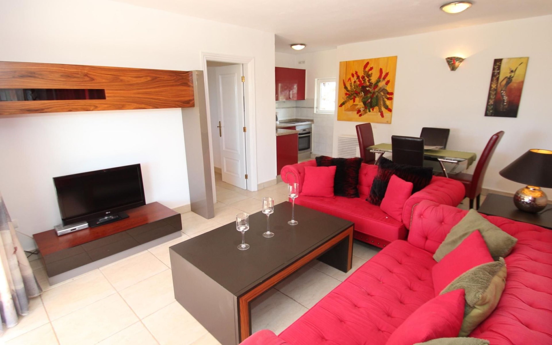 Innen wartet das Haus „Kiko“ mit einer funktionalen Küchenzeile auf, die keine Wünsche offen lässt: Ein 4-Platten-Cerankochfeld, ein Backofen mit Mikrowellenfunktion, ein Kühlschrank sowie eine Spüle ergänzen die Ausstattung. Des Weiteren finden sich ein Toaster, eine Kaffeemaschine, eine Saftpresse und ein Wasserkocher – ideal, um kulinarische Genüsse selbst zu kreieren. Ein angrenzender Esstisch bietet Platz für drei Personen. Das Hauptschlafzimmer mit einem Doppelbett und eigenem Badezimmer sowie ein zweites Schlafzimmer mit Einzelbett und separatem Badezimmer gewährleisten Privatsphäre und Komfort. Pflegeprodukte, Handtücher, Bademäntel und Bettwäsche stehen zudem bereit, um den Aufenthalt so angenehm wie möglich zu gestalten.