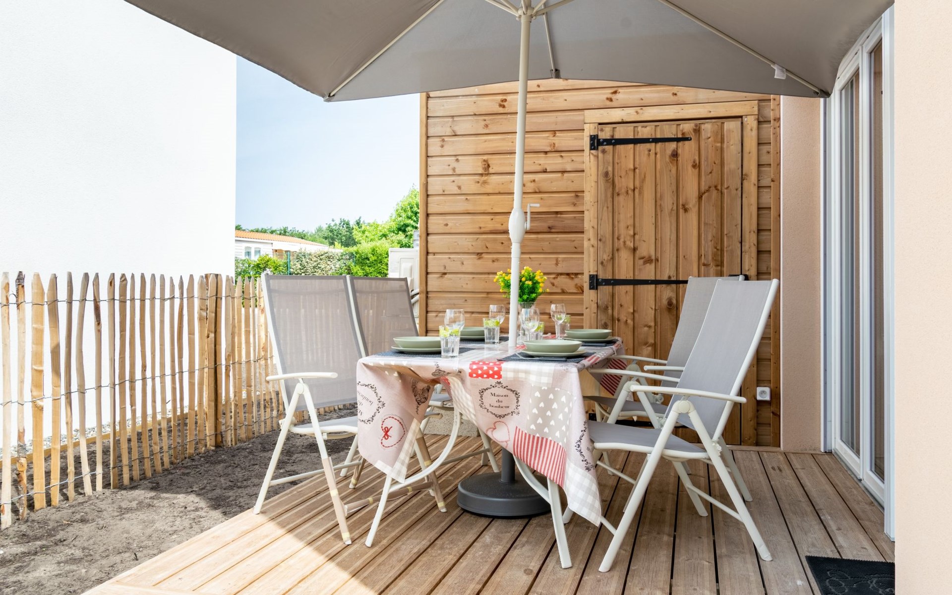 Residenz "Soleil couchant". Im Ort, 900 m vom Zentrum von de Mimizan Plage, 100 m vom Waldrand, 900 m vom Meer, 10 km vom See, 900 m vom Strand. Zur Mitbenutzung: Schwimmbad eingezäunt (4 x 5 m, 150 - 160 cm tief, saisonale Verfügbarkeit: 01.Mai. - 30.Sep. Öffnungszeiten Schwimmbad: 10:00-21:00). Einkaufsgeschäft 850 m, Lebensmittelgeschäft, Bäckerei 800 m, Fußgängerzone 800 m, Fahrradverleih 750 m, Bushaltestelle "Office du tourisme Mimizan" 700 m, Sandstrand "la garluche" 900 m, Badesee "Aureilhan" 10 km. Golfplatz (9 Loch) 7 km, Surfschule 900 m, Tennis 2.5 km. Nahe gelegene Sehenswürdigkeiten: Arcachon 70 km, Biscarrosse 40 km, parcs aventure 7 km, Disc Golf 2 km. Bekannte Seen in der Umgebung sind gut erreichbar: Aureilhan Mimizan 8 km. Alle Häuser/Wohnungen sind individuell eingerichtet.