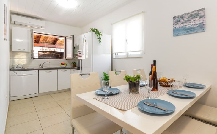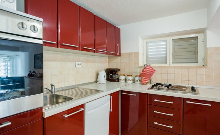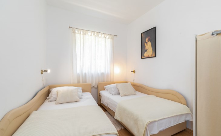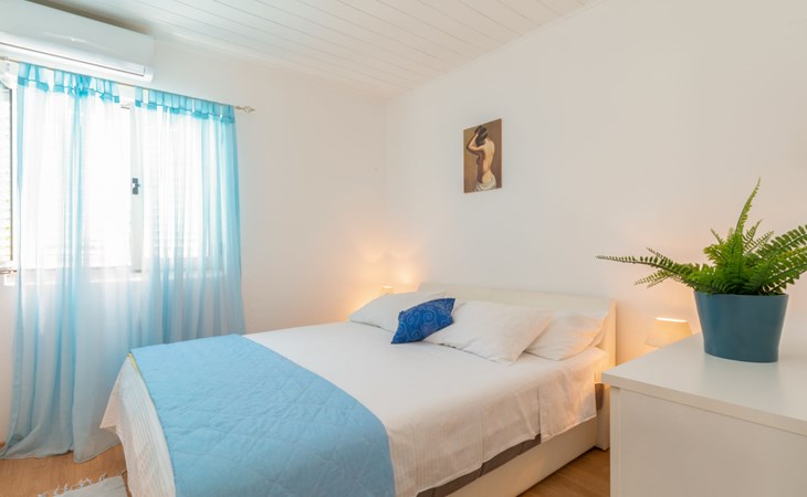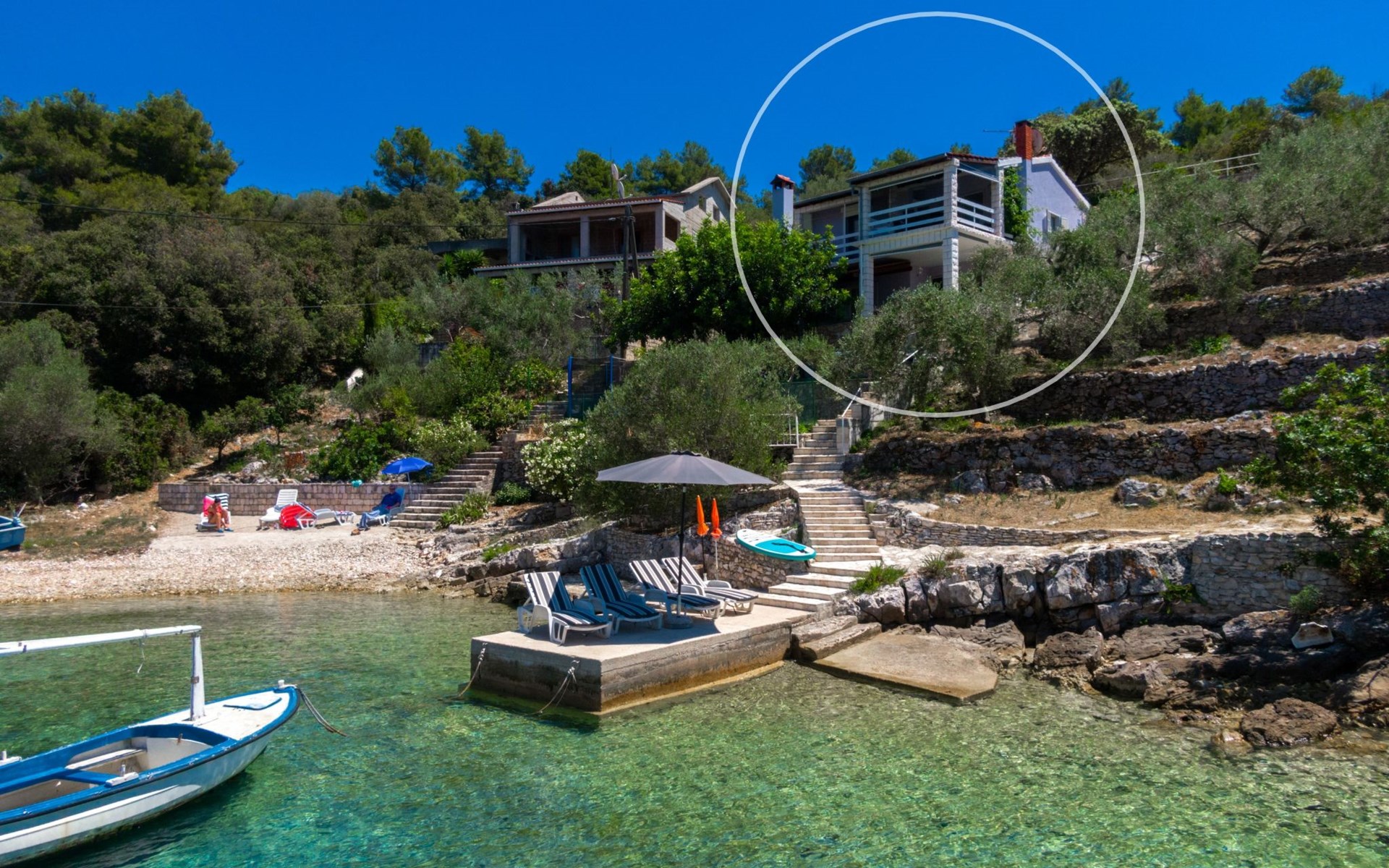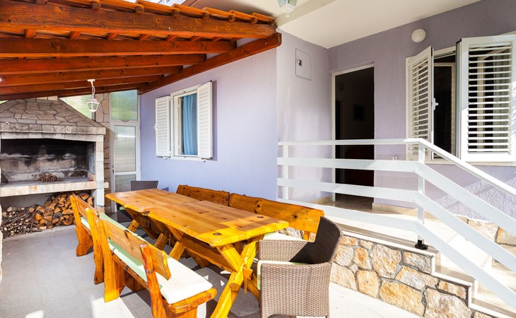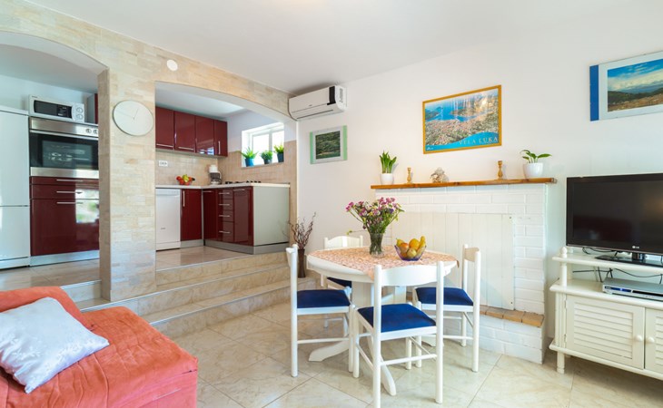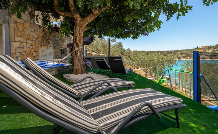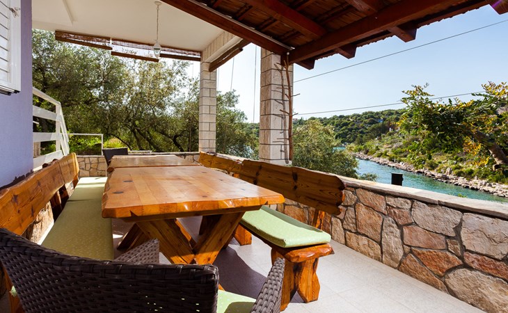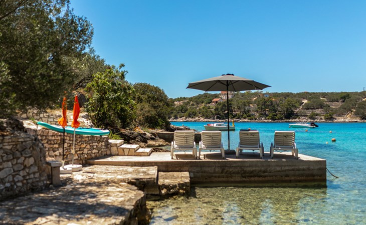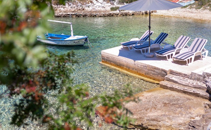 Stracincica 6 km von Vela Luka: Einfamilienhaus "Nataly", auf 2 Stockwerken. Ruhige, sonnige Lage am Hang, 20 m vom Meer, 20 m vom Strand, in einer Sackgasse, im Grünen, Richtung Westen. Zur Alleinbenutzung: Aussendusche, Sprudelbad, Grill. Im Hause: Internetzugang, Wäscherei. Holprige Zufahrt (1 km Naturweg). Parkplatz auf dem Grundstück. Einkaufsgeschäft 5 km, Restaurant 5 km, Bushaltestelle 6.7 km, Steinstrand 50 m, Felsstrand 20 m.