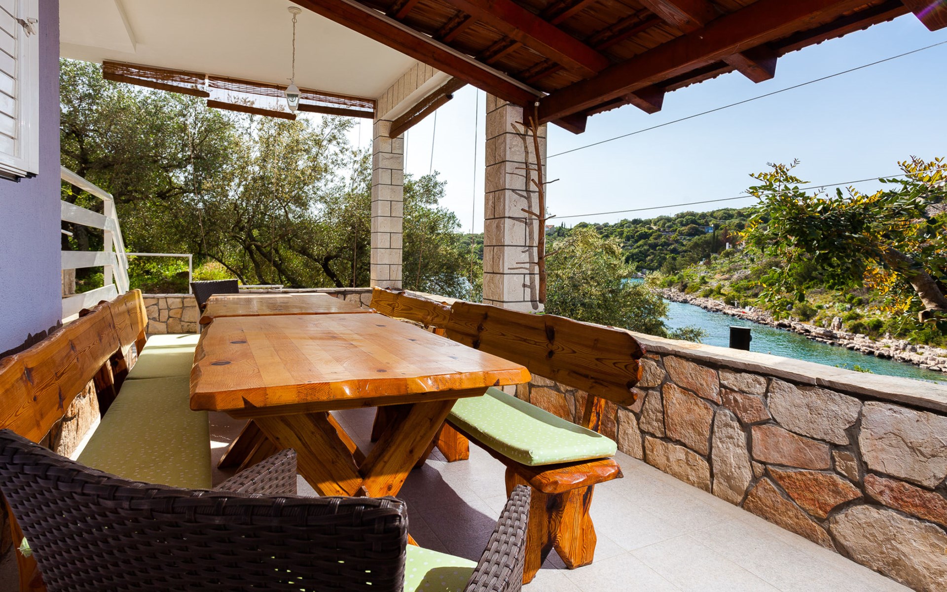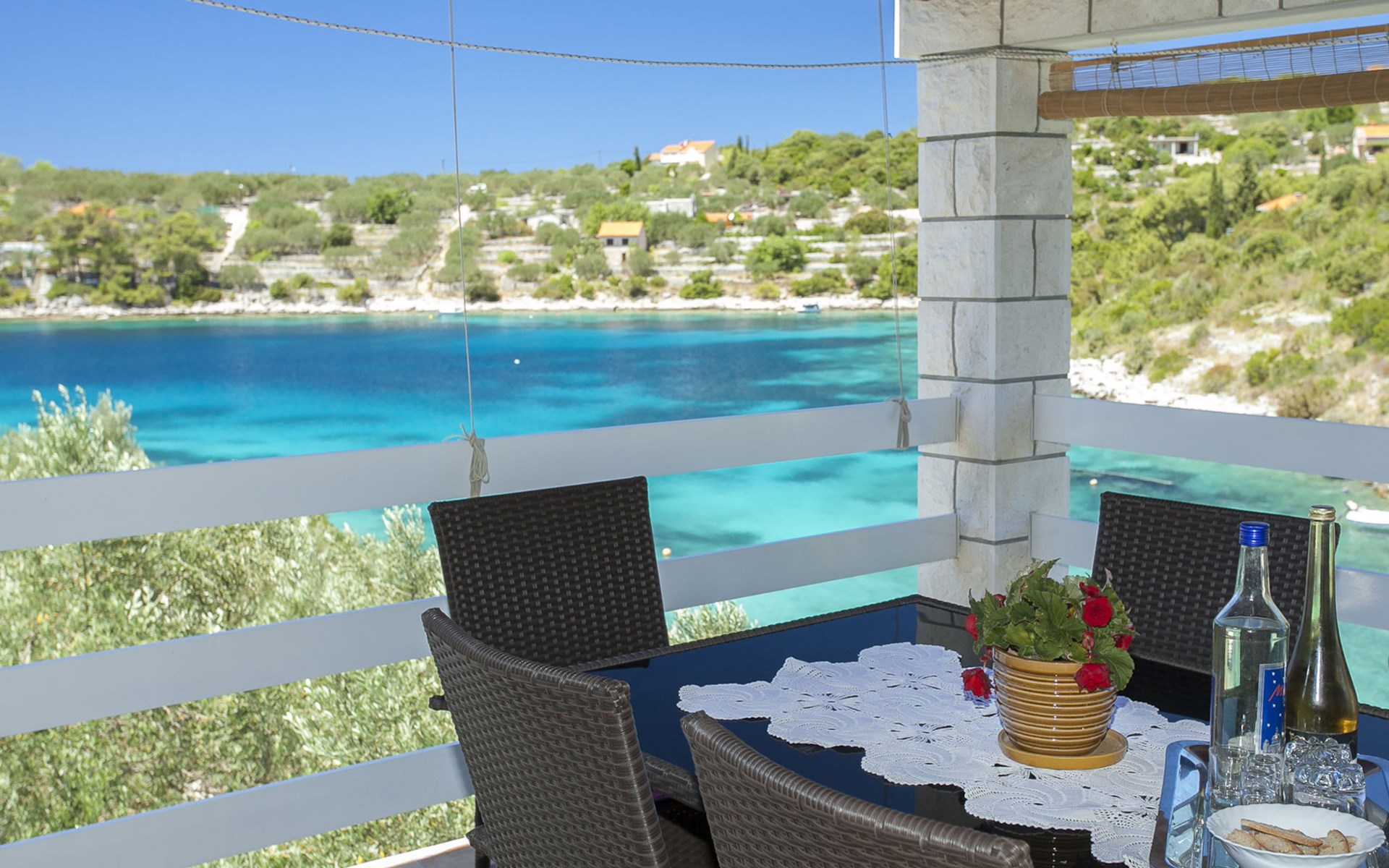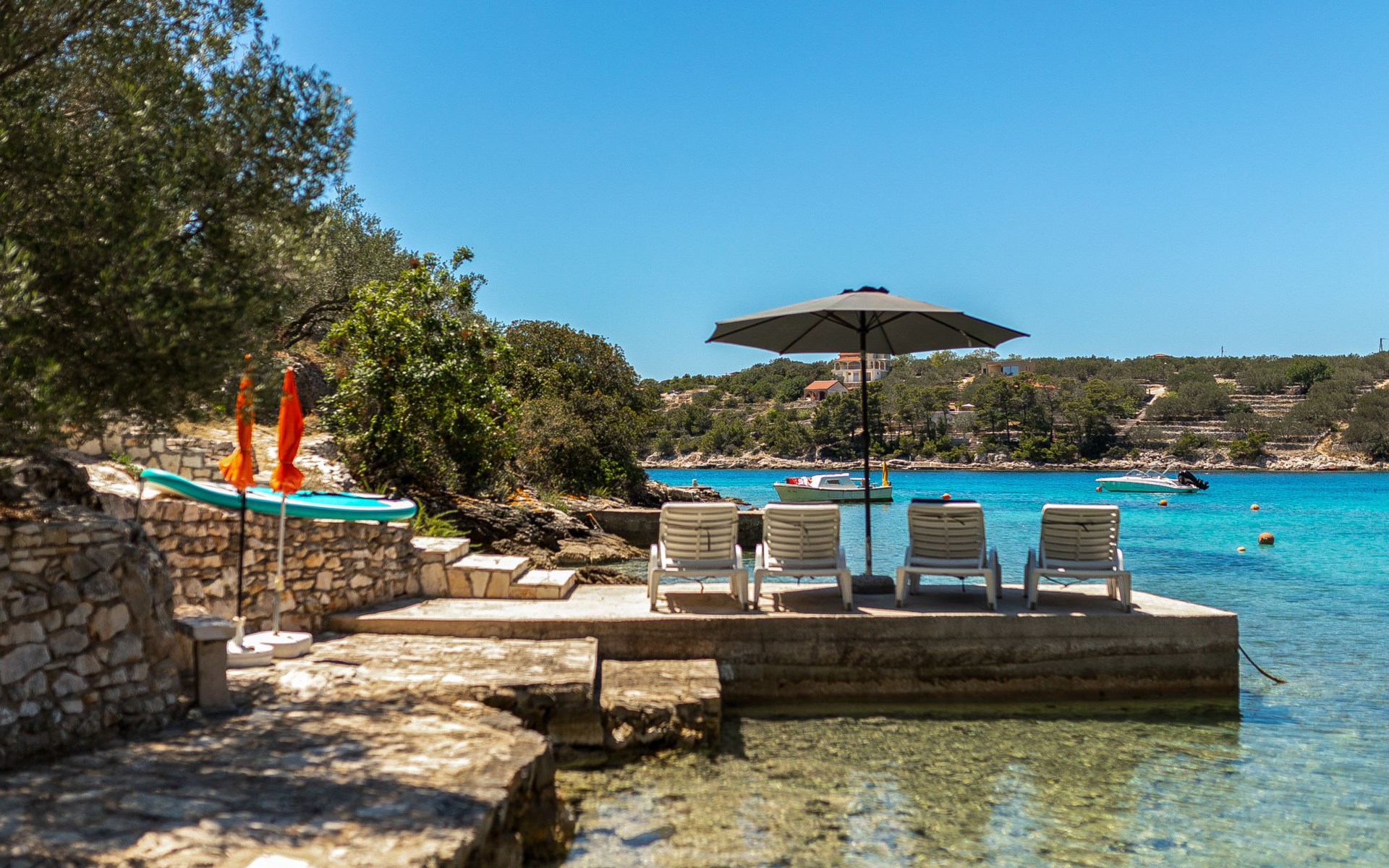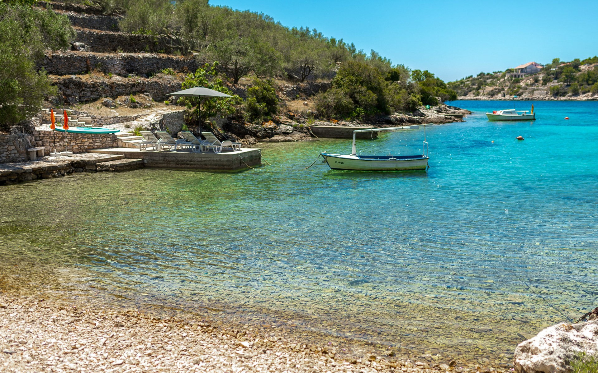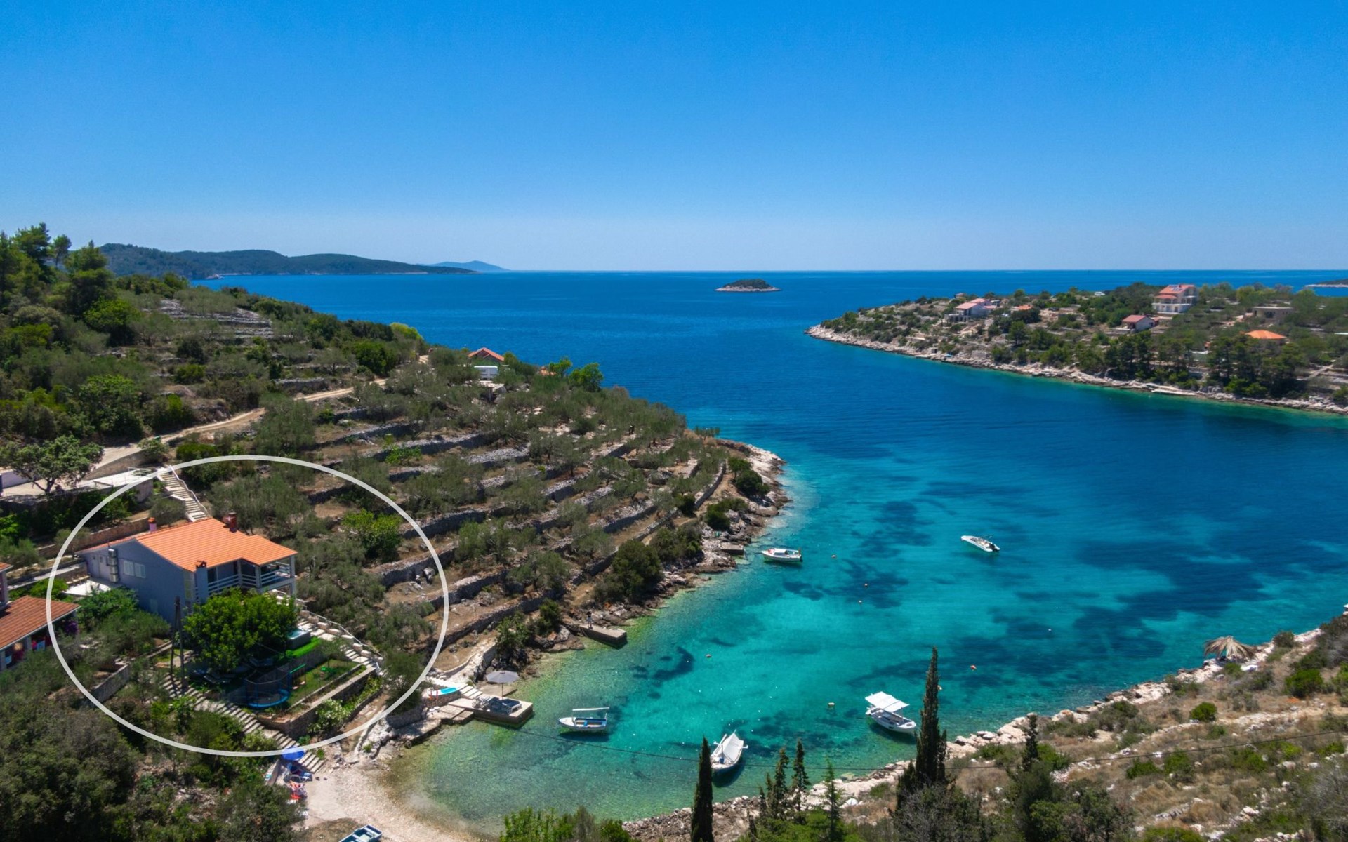 Stracincica 6 km von Vela Luka: Einfamilienhaus "Nataly", auf 2 Stockwerken. Ruhige, sonnige Lage am Hang, 20 m vom Meer, 20 m vom Strand, in einer Sackgasse, im Grünen, Richtung Westen. Zur Alleinbenutzung: Aussendusche, Sprudelbad, Grill. Im Hause: Internetzugang, Wäscherei. Holprige Zufahrt (1 km Naturweg). Parkplatz auf dem Grundstück. Einkaufsgeschäft 5 km, Restaurant 5 km, Bushaltestelle 6.7 km, Steinstrand 50 m, Felsstrand 20 m.