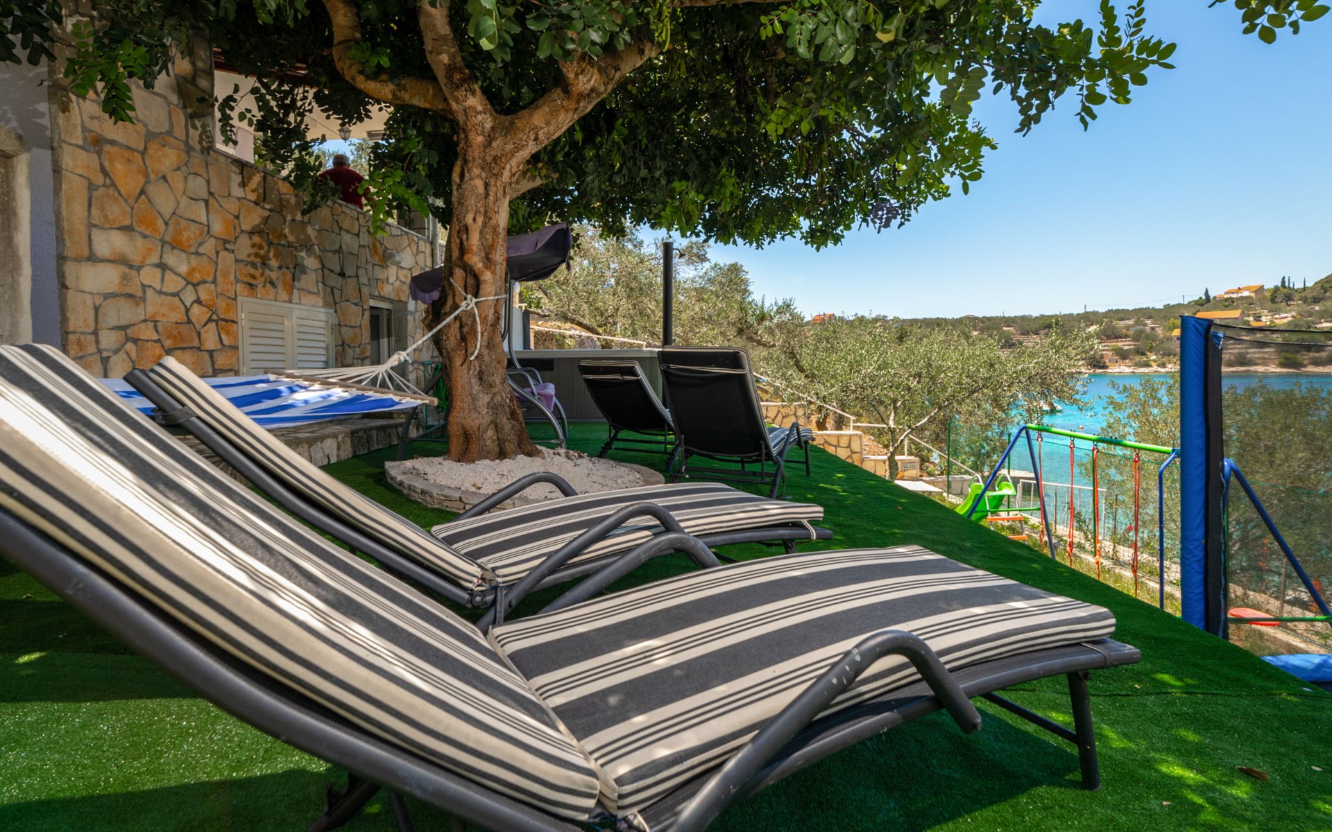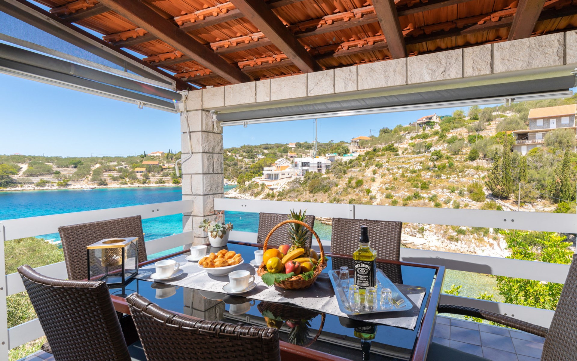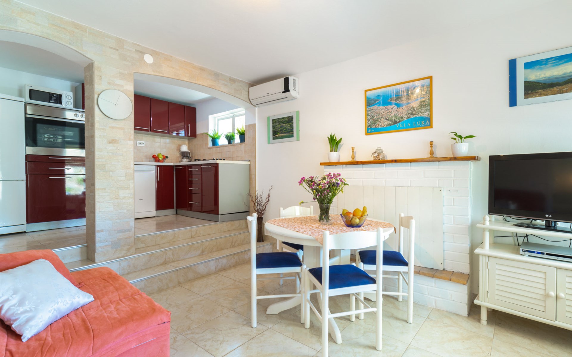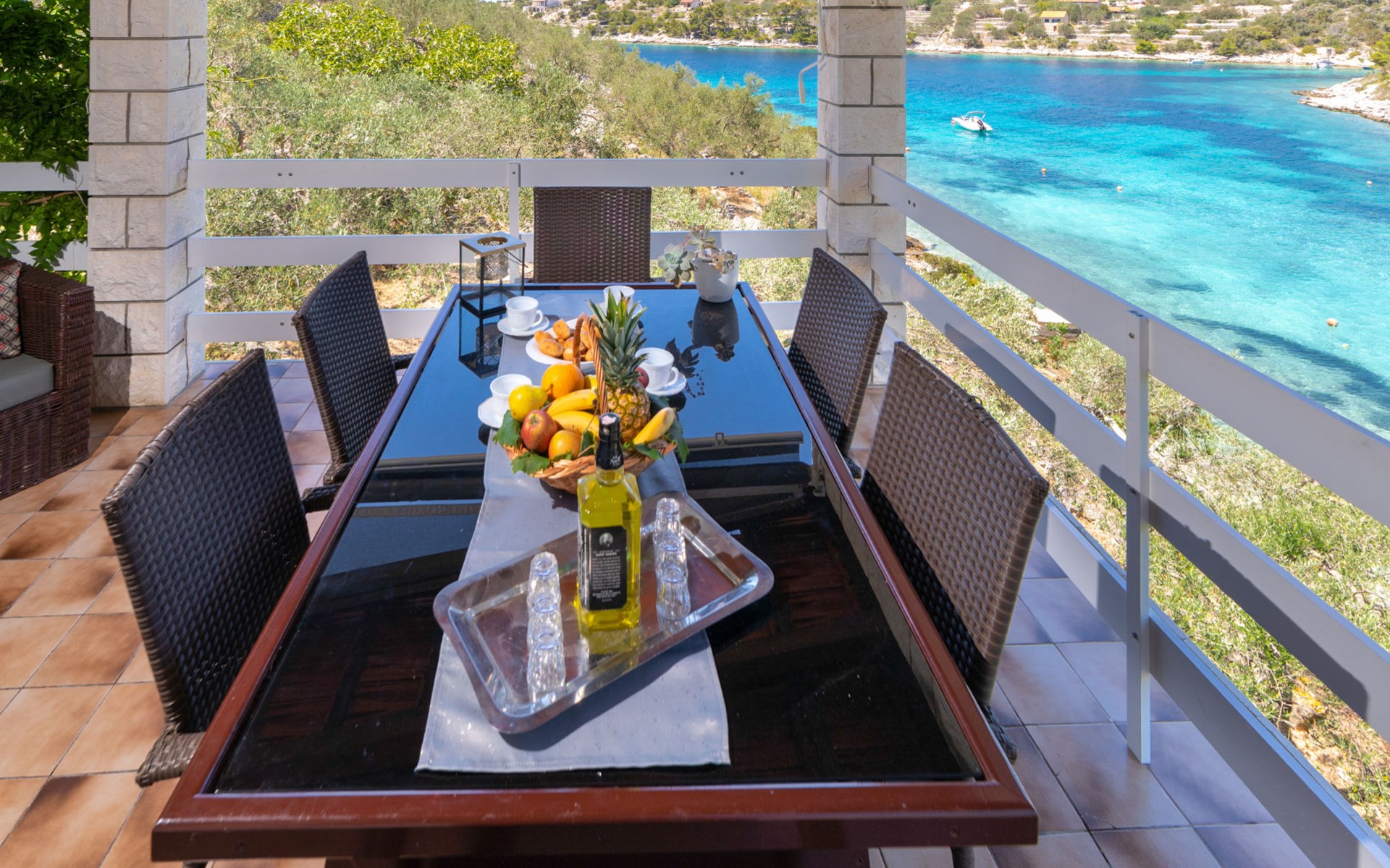 Stracincica 6 km von Vela Luka: Einfamilienhaus "Nataly", auf 2 Stockwerken. Ruhige, sonnige Lage am Hang, 20 m vom Meer, 20 m vom Strand, in einer Sackgasse, im Grünen, Richtung Westen. Zur Alleinbenutzung: Aussendusche, Sprudelbad, Grill. Im Hause: Internetzugang, Wäscherei. Holprige Zufahrt (1 km Naturweg). Parkplatz auf dem Grundstück. Einkaufsgeschäft 5 km, Restaurant 5 km, Bushaltestelle 6.7 km, Steinstrand 50 m, Felsstrand 20 m.