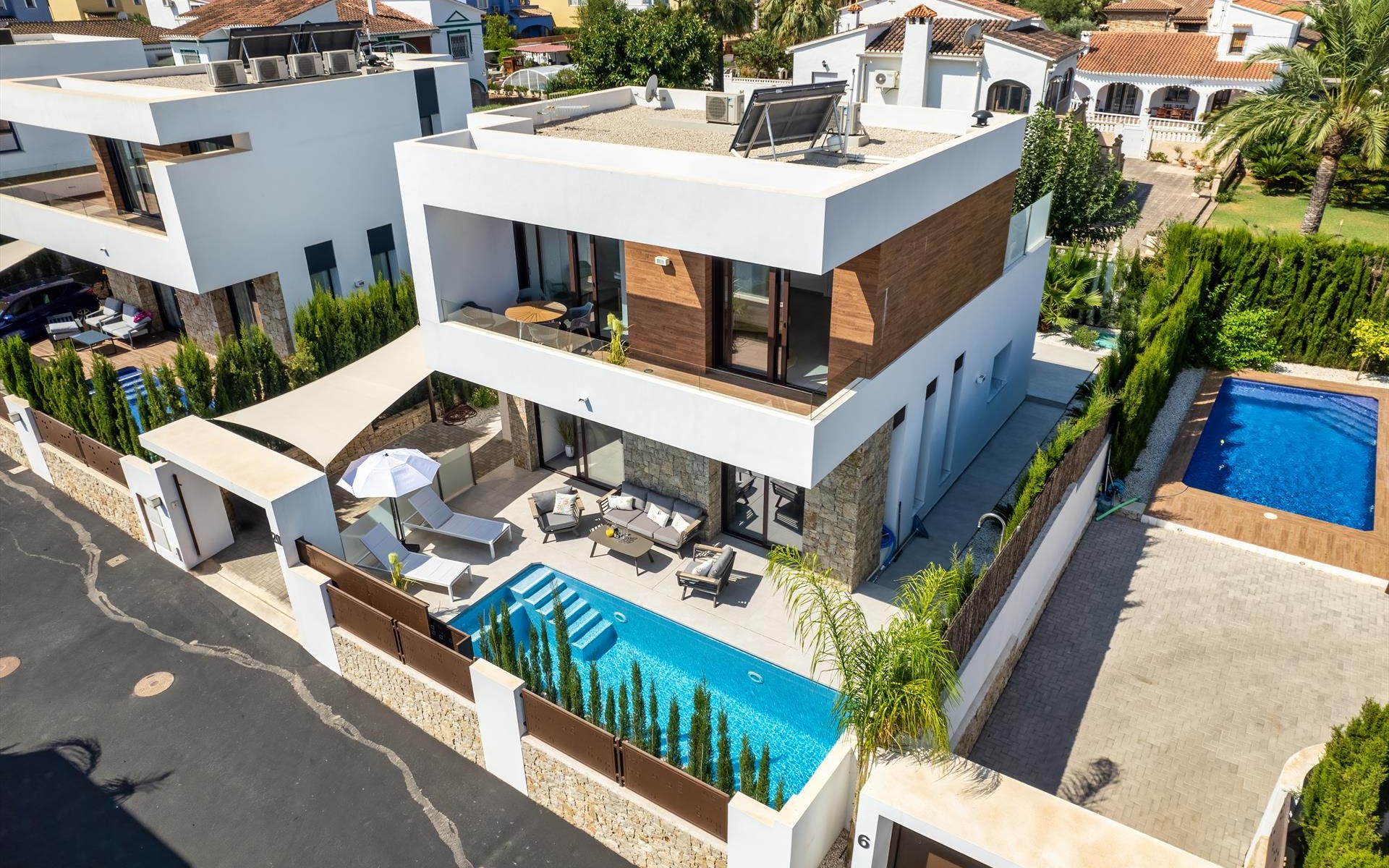 Wunderschöne, moderne und hochwertig ausgestattete Ferienvilla in Denia, Costa Blanca, Spanien. Dieses Luxusobjekt wird für maximal 4-5 Personen vermietet und verfügt über einen privaten Pool mit 3x7 m. Die komplett klimatisierte Villa San Juan wurde erst kürzlich fertiggestellt und befindet sich in einer abgeschlossenen Wohnanlage mit 20 Häusern, jedes jedoch in seinem eigenen, abgeschlossenen Grundstück mit privatem Parkplatz. Die Nähe zum Stadtzentrum von Denia, zu den verschiednen Jachthäfen wie Club Nautic und La Marina de Denia, garantieren genügend anspruchsvolle Orte mit Restaurants, Bars, Beach Clubs und Nachtleben. Das Stadtzentrum von Denia, sowie verschiedene Geschäfte kann man in 5 Minuten zu Fuss erreichen. 2 grosse Supermärkte befinden sich quasi direkt neben der Wohnanlage. In San Juan Denia finden Sie Ruhe und Entspannung und können einen entspannten Urlaub im luxuriösen Ambiente, sowohl im Sommer als auch im Winter verbringen. Das Haus wurde sehr geschmackvoll von einer Innenarchitektin ausgestattet und bietet allen notwendigen Komfort.