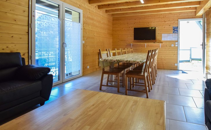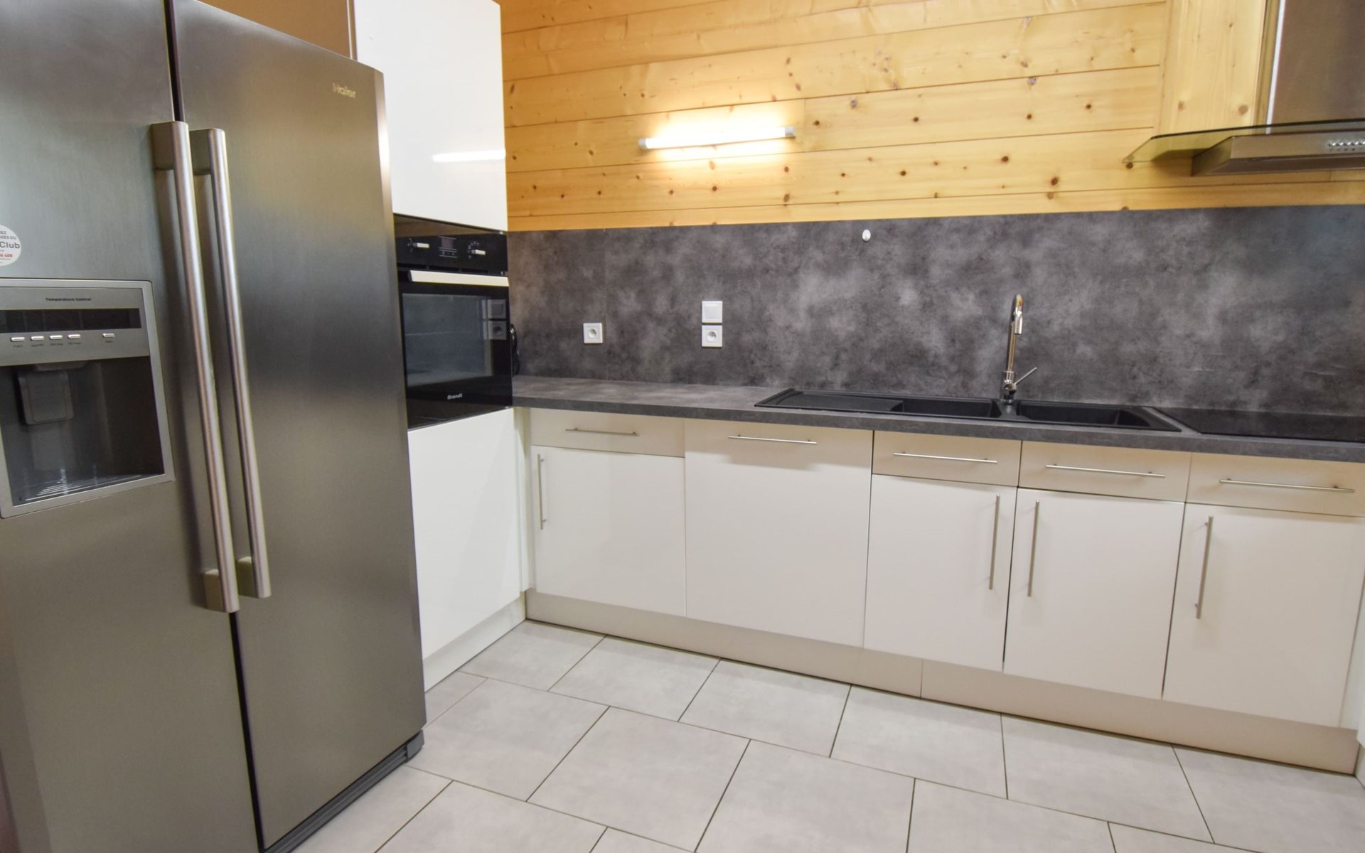 Chalet mit viel Komfort und 100 m² Wohnfläche für 12 Personen mit: ausgestatteter Küche (amerikanischer Kühlschrank, vier Mikrowellen, Mikrowellenherde, Glaskeramik-Platten, Spülbecken, Spülbecken...), Salon (2 Canapés), ein Stück Leben mit LED-TV 120 cm, 4 Zimmer, 2 Salons, 2 WC.