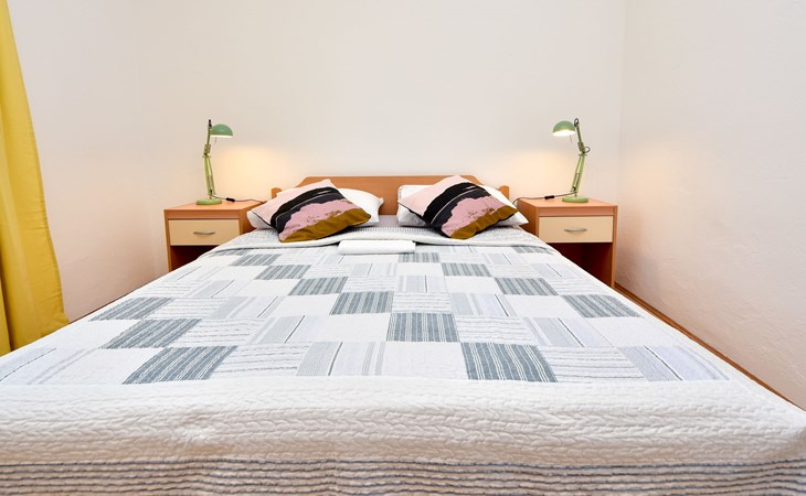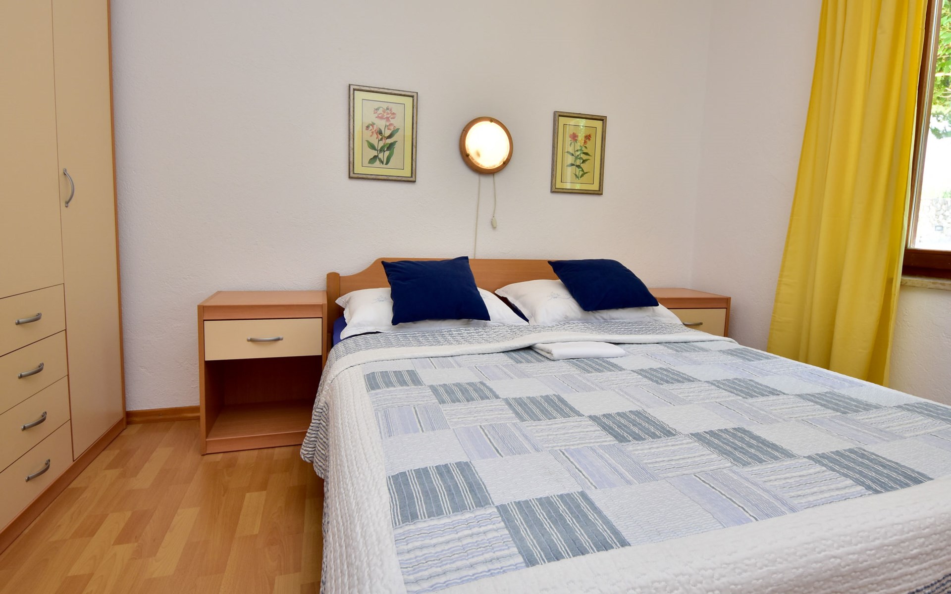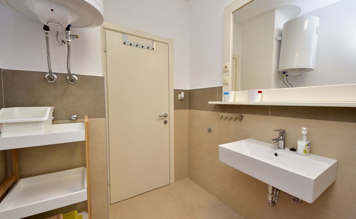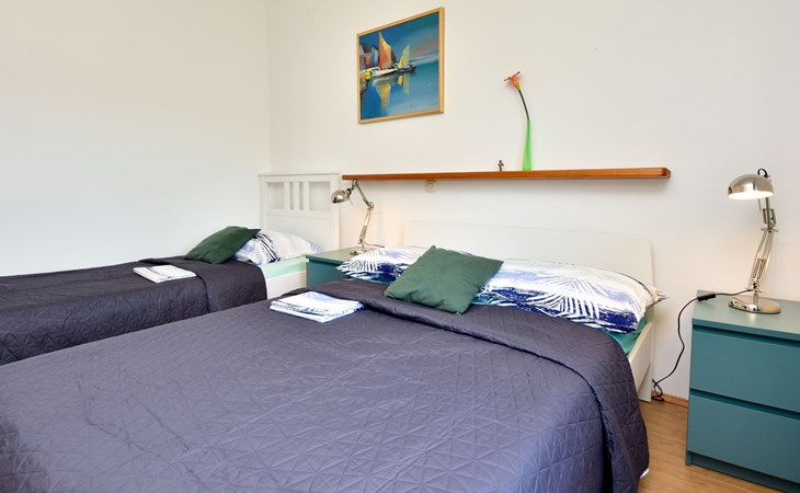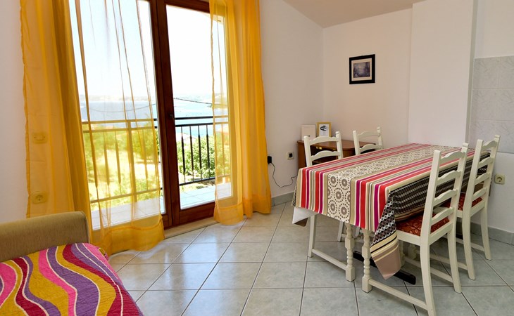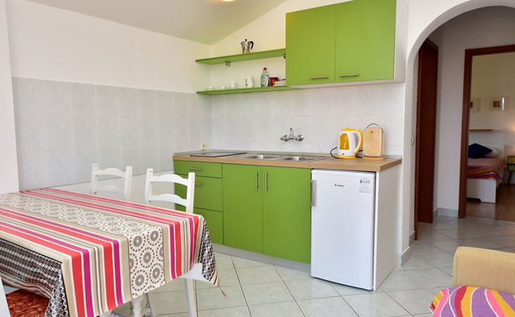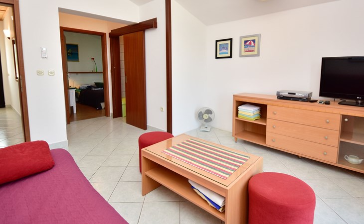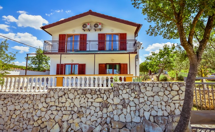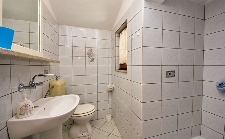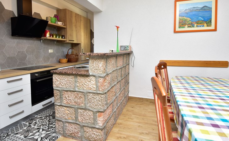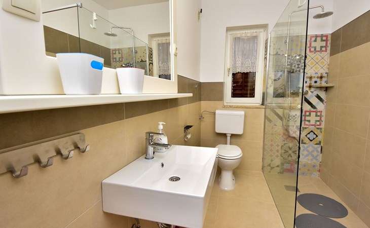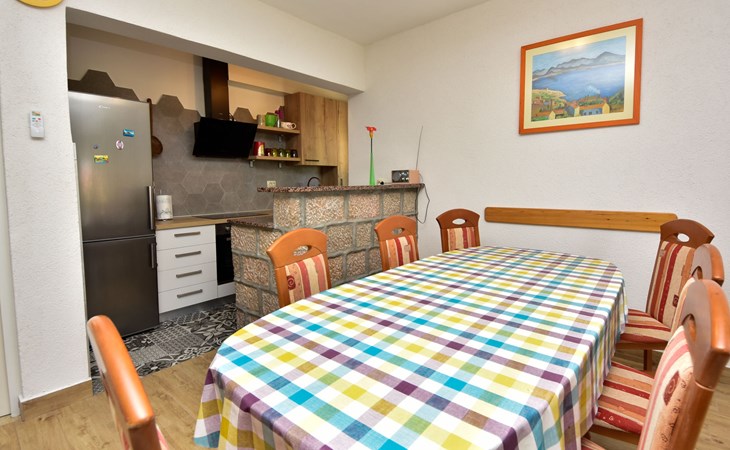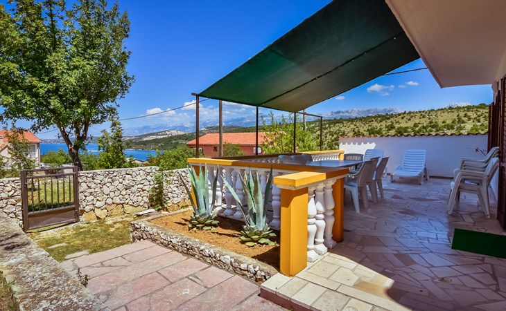 RIBNICA 15 km von Novigrad: Zweifamilienhaus "Kate", auf 2 Stockwerken. 8 km vom Zentrum von Obrovac, ruhige, sonnige, erhöhte Lage, 250 m vom Meer, 250 m vom Strand, im Grünen. Zur Alleinbenutzung: Grundstück 600 m2 (eingezäunt) mit Rasen 150 m2, Obstgarten. Aussendusche, Gartenmöbel, Grill, Kinderspielplatz (Schaukel). Im Hause: Internetzugang. Parkplatz beim Haus auf dem Grundstück. Einkaufsgeschäft 500 m, Restaurant 2 km, Bar 250 m, Bushaltestelle 24.9 km, Kieselstrand 250 m.