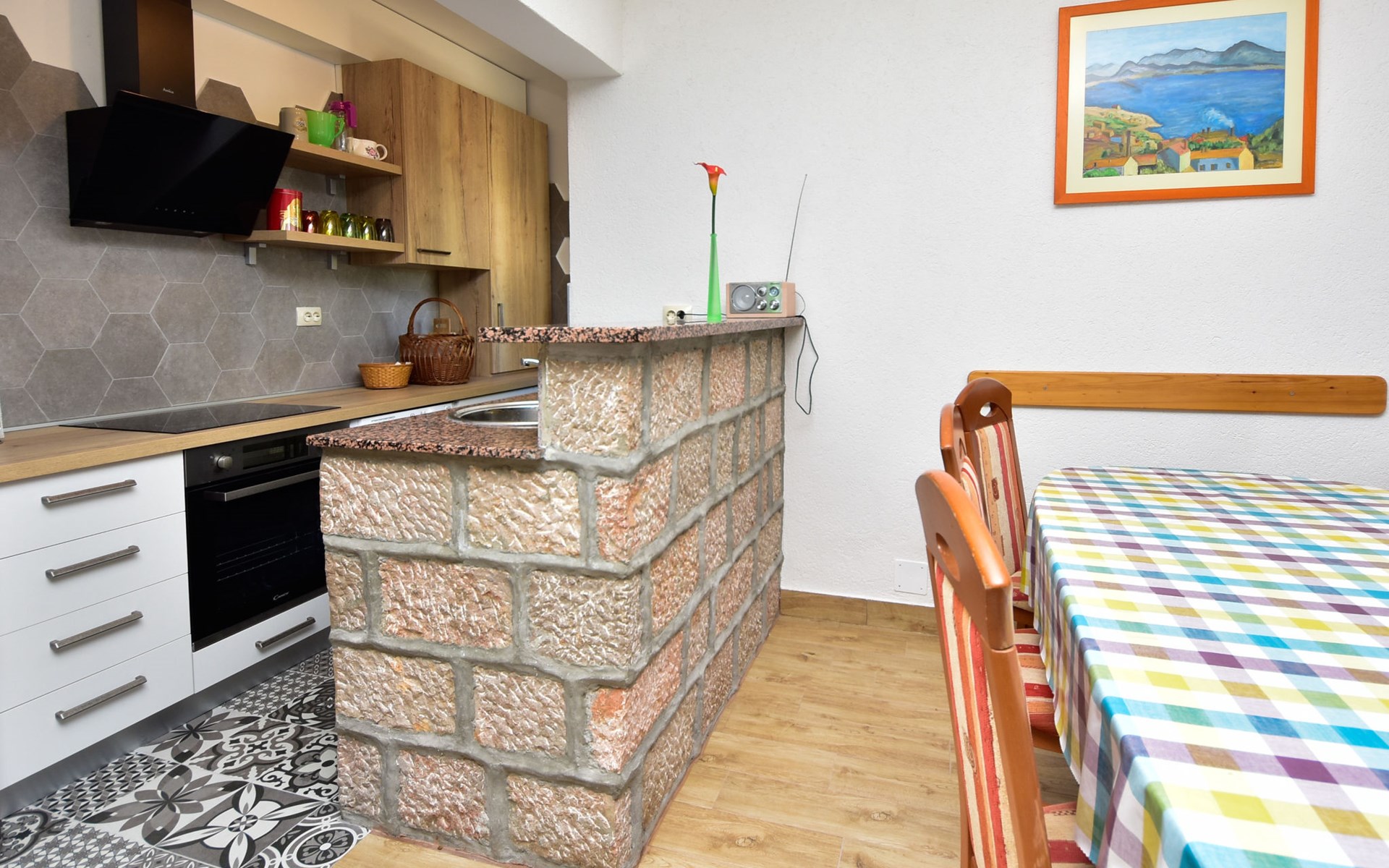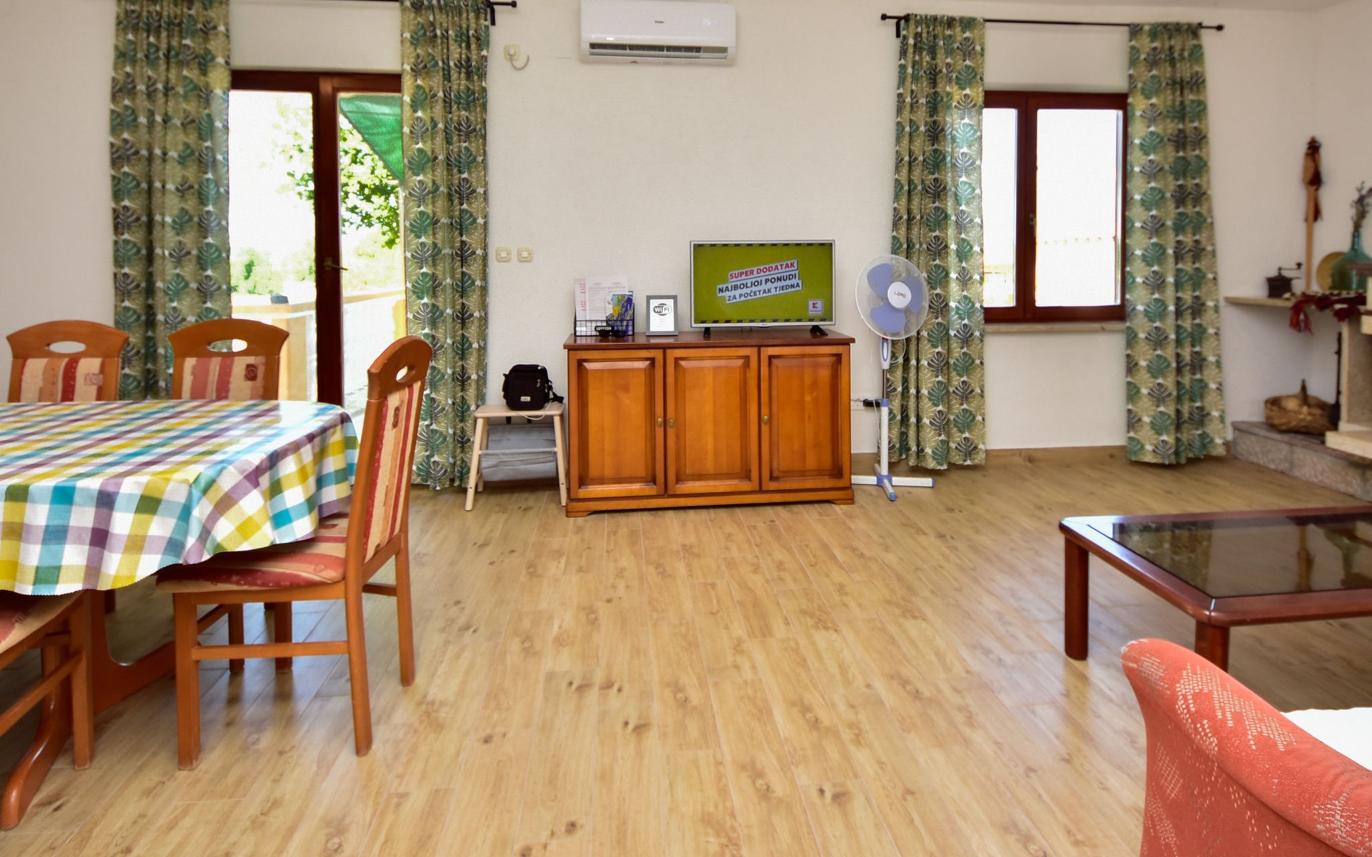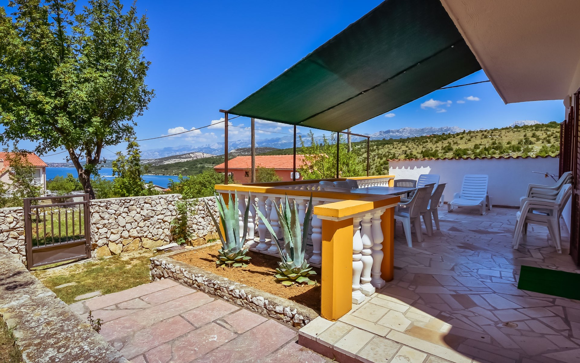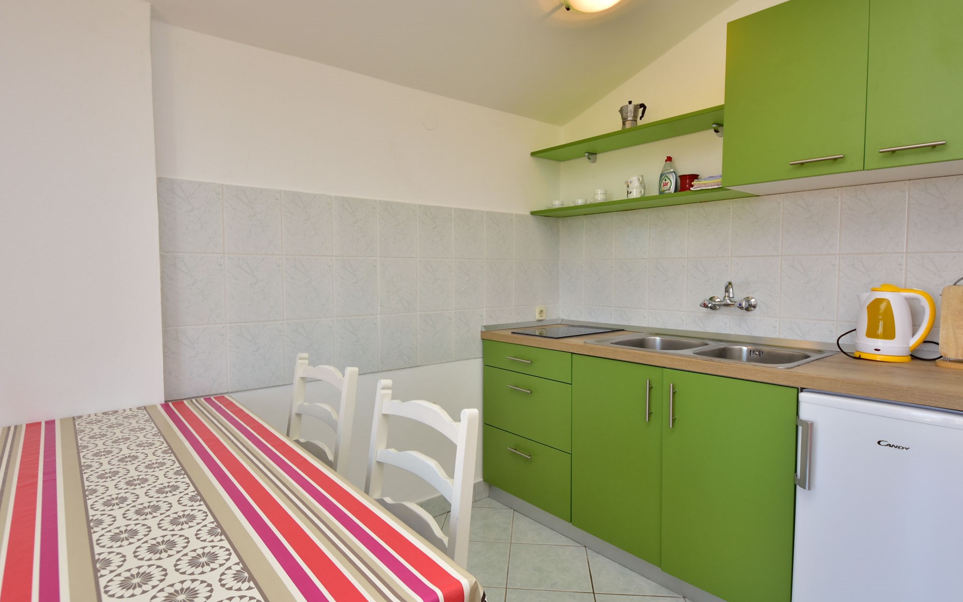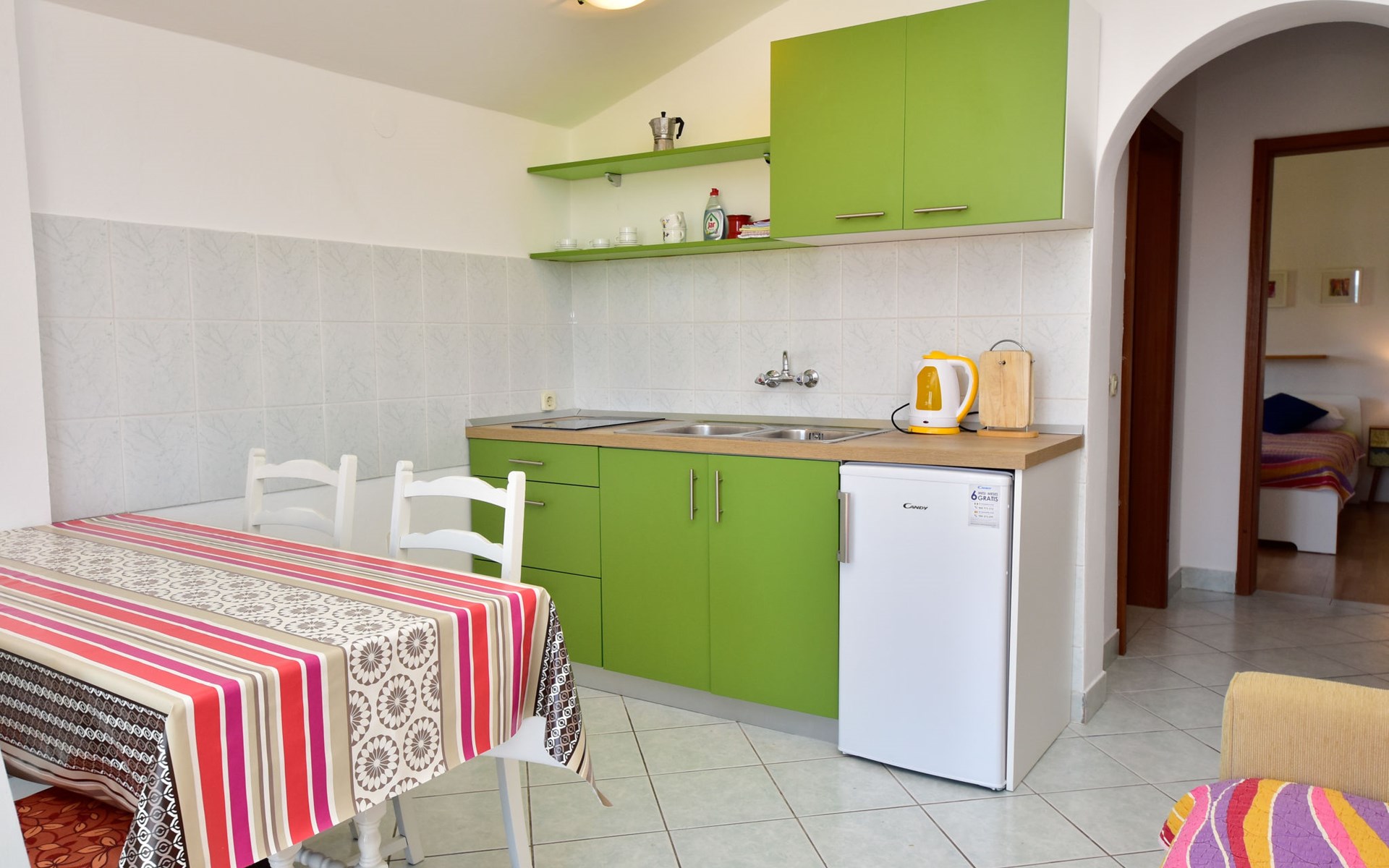RIBNICA 15 km von Novigrad: Zweifamilienhaus "Kate", auf 2 Stockwerken. 8 km vom Zentrum von Obrovac, ruhige, sonnige, erhöhte Lage, 250 m vom Meer, 250 m vom Strand, im Grünen. Zur Alleinbenutzung: Grundstück 600 m2 (eingezäunt) mit Rasen 150 m2, Obstgarten. Aussendusche, Gartenmöbel, Grill, Kinderspielplatz (Schaukel). Im Hause: Internetzugang. Parkplatz beim Haus auf dem Grundstück. Einkaufsgeschäft 500 m, Restaurant 2 km, Bar 250 m, Bushaltestelle 24.9 km, Kieselstrand 250 m.