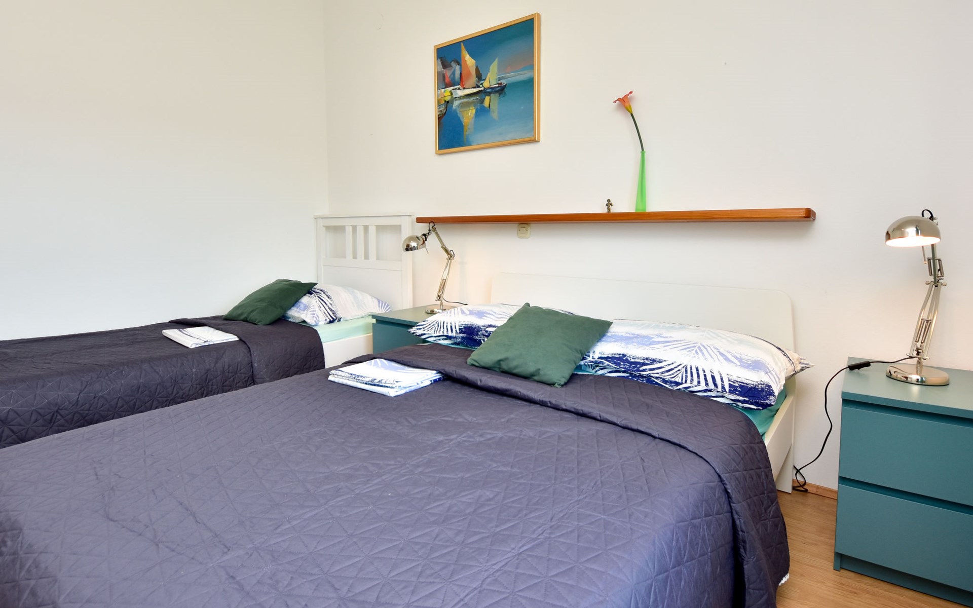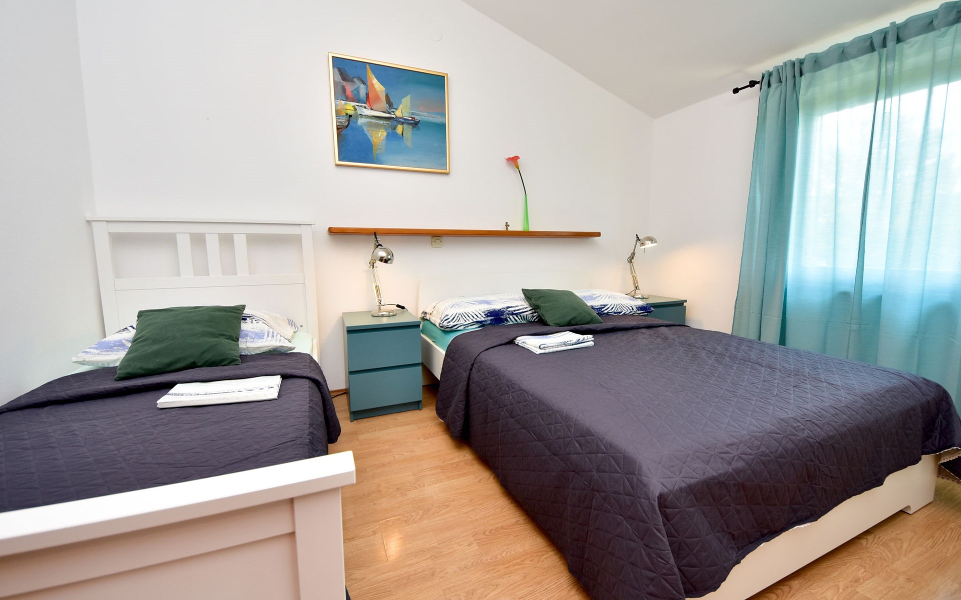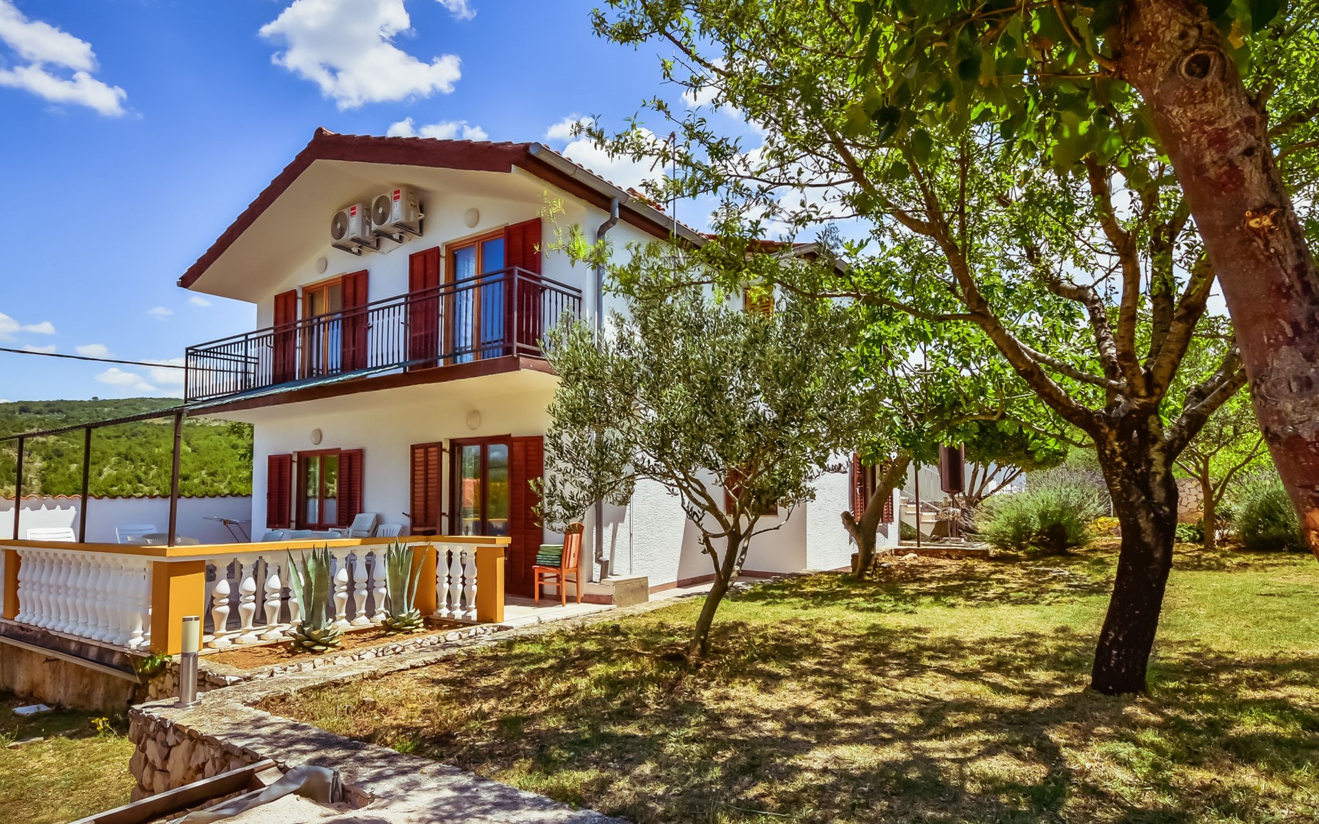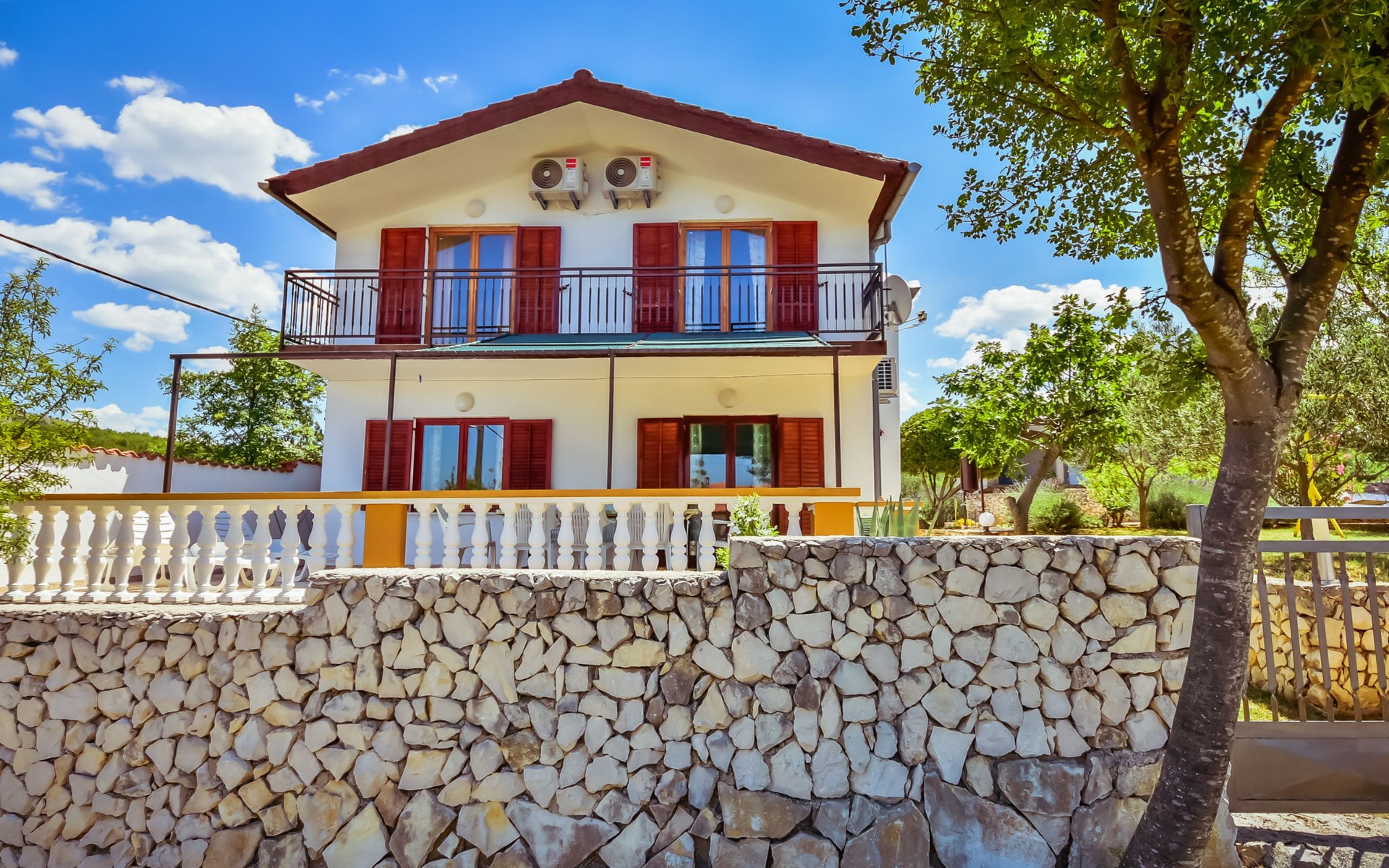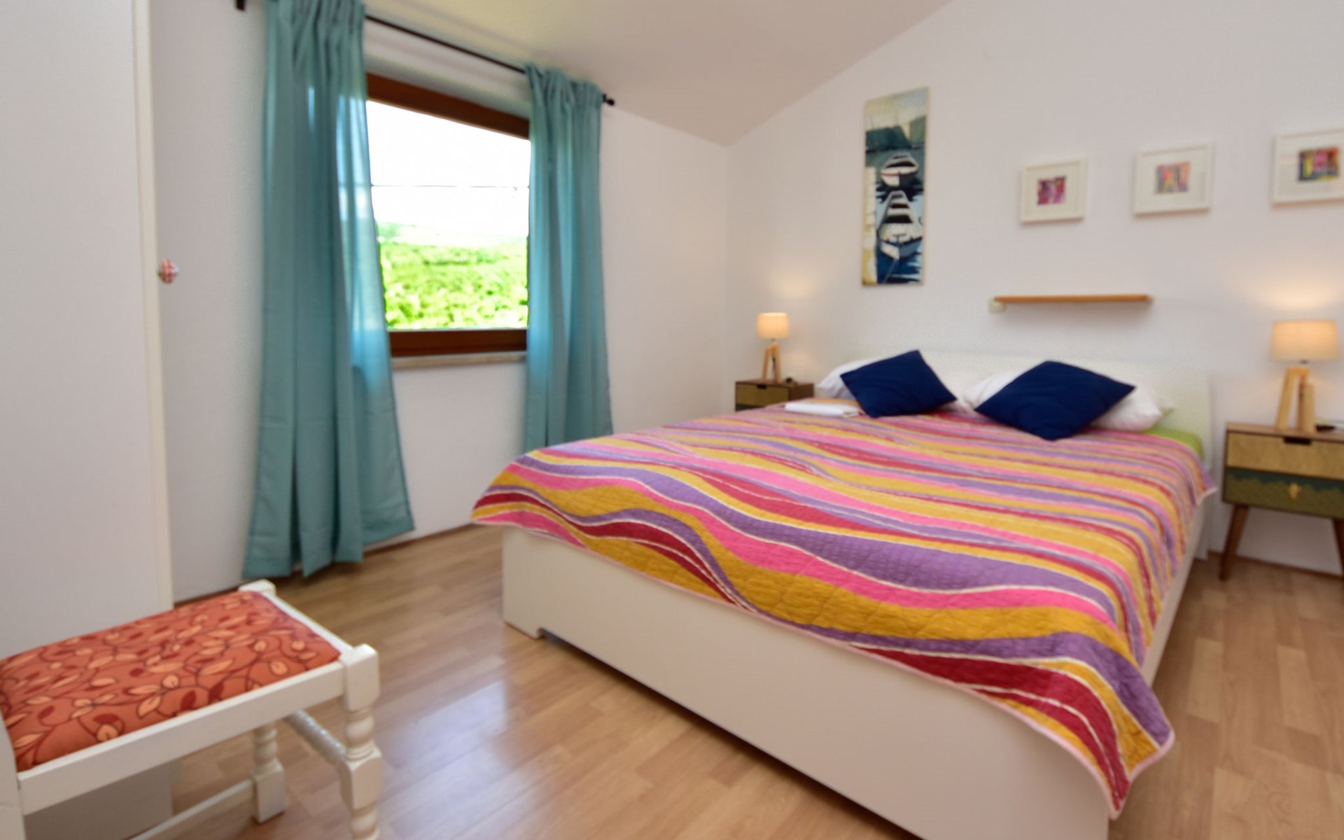 RIBNICA 15 km von Novigrad: Zweifamilienhaus "Kate", auf 2 Stockwerken. 8 km vom Zentrum von Obrovac, ruhige, sonnige, erhöhte Lage, 250 m vom Meer, 250 m vom Strand, im Grünen. Zur Alleinbenutzung: Grundstück 600 m2 (eingezäunt) mit Rasen 150 m2, Obstgarten. Aussendusche, Gartenmöbel, Grill, Kinderspielplatz (Schaukel). Im Hause: Internetzugang. Parkplatz beim Haus auf dem Grundstück. Einkaufsgeschäft 500 m, Restaurant 2 km, Bar 250 m, Bushaltestelle 24.9 km, Kieselstrand 250 m.