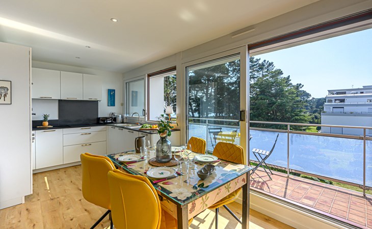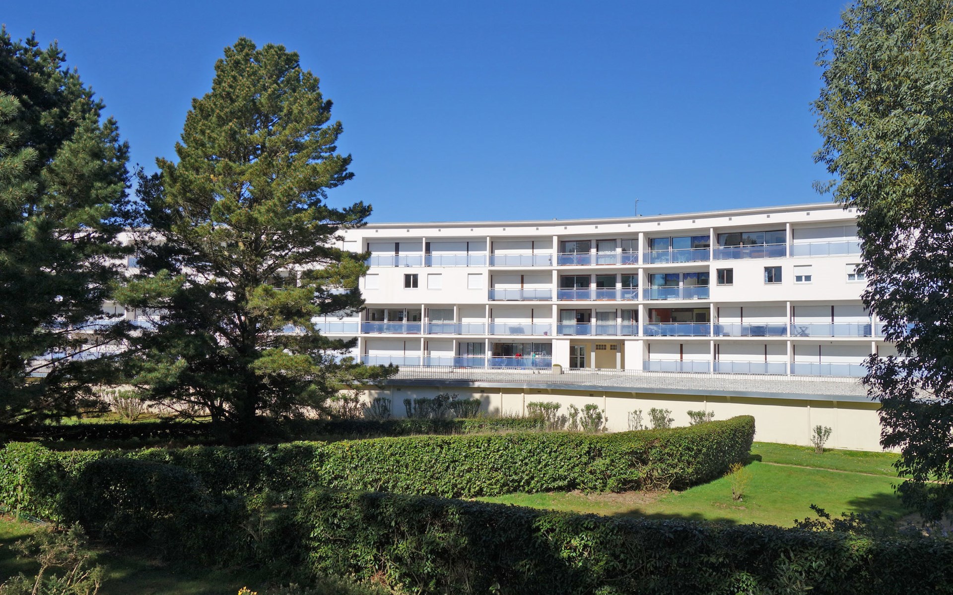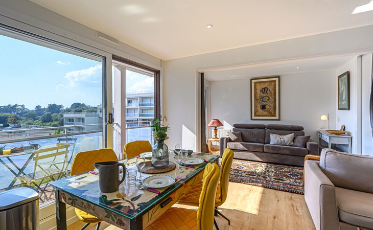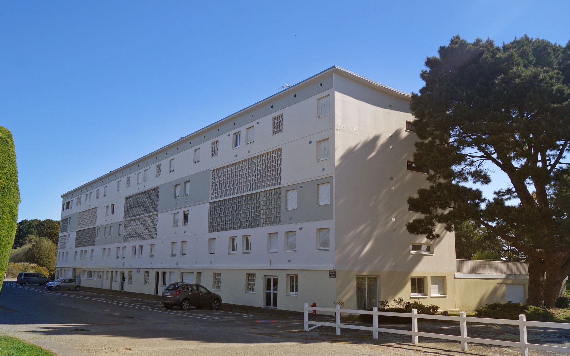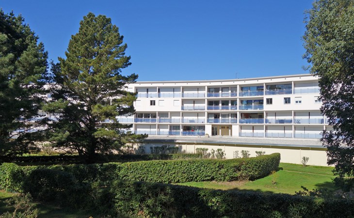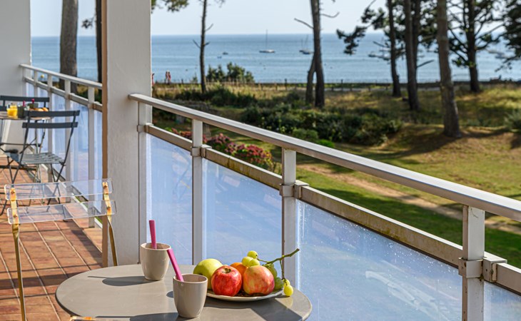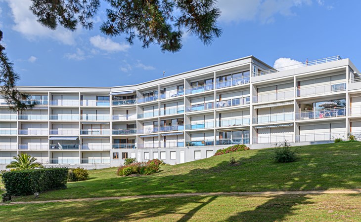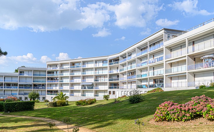 St Philibert 7 km von Carnac: Residenz "Men Er Bellec", auf 5 Stockwerken, umgeben von Bäumen. Vom Meer, 50 m vom Strand. In der Anlage: Fahrstuhl. Parkplatz. Einkaufsgeschäft 2 km, Restaurant 500 m, Bar 2 km, Bäckerei 2 km, Sandstrand "Men Er Beleg" 50 m, Thermalbad "Thalassothérapie de Carnac" 8 km. Jacht-Hafen 5 km, Golfplatz (18 Loch) 20 km, Segelschule 2 km. Nahe gelegene Sehenswürdigkeiten: La Trinité sur Mer 4 km, Locmariaquer - Golf du Morbihan 4 km, Alignements de Carnac 8 km, Auray 14 km, Presqu'Ile de Quiberon belle ile en Mer 21 km, Vannes 30 km. Bitte beachten: geeignet für Familien. Jugendgruppen nur auf Anfrage. Die Schlüsselübergabe findet bei der Agentur Interhome in Carnac statt, 7 km.