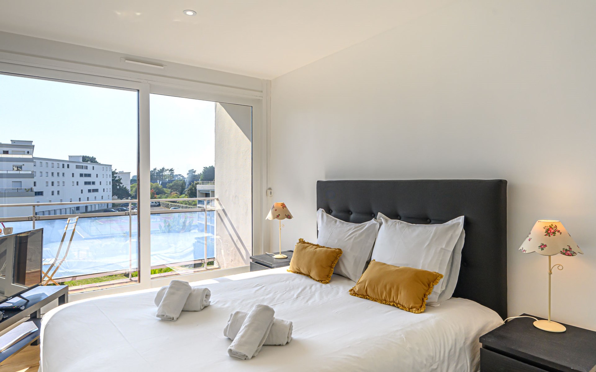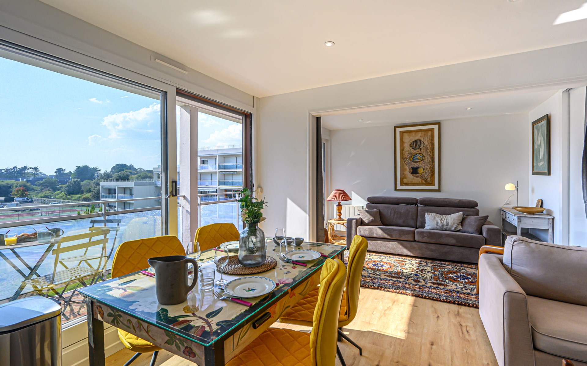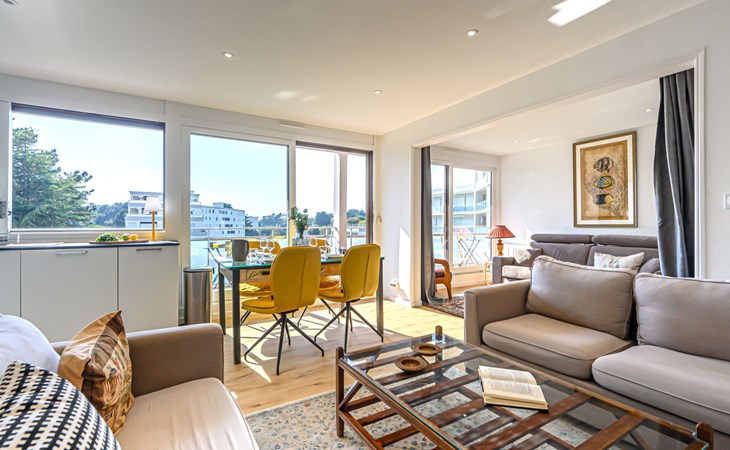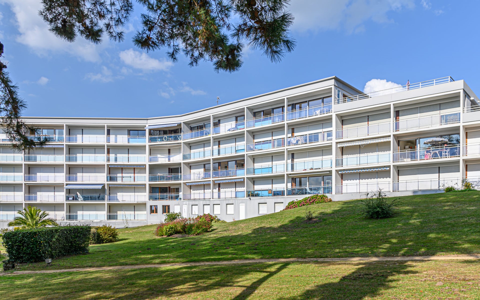St Philibert 7 km von Carnac: Residenz "Men Er Bellec", auf 5 Stockwerken, umgeben von Bäumen. Vom Meer, 50 m vom Strand. In der Anlage: Fahrstuhl. Parkplatz. Einkaufsgeschäft 2 km, Restaurant 500 m, Bar 2 km, Bäckerei 2 km, Sandstrand "Men Er Beleg" 50 m, Thermalbad "Thalassothérapie de Carnac" 8 km. Jacht-Hafen 5 km, Golfplatz (18 Loch) 20 km, Segelschule 2 km. Nahe gelegene Sehenswürdigkeiten: La Trinité sur Mer 4 km, Locmariaquer - Golf du Morbihan 4 km, Alignements de Carnac 8 km, Auray 14 km, Presqu'Ile de Quiberon belle ile en Mer 21 km, Vannes 30 km. Bitte beachten: geeignet für Familien. Jugendgruppen nur auf Anfrage. Die Schlüsselübergabe findet bei der Agentur Interhome in Carnac statt, 7 km.
