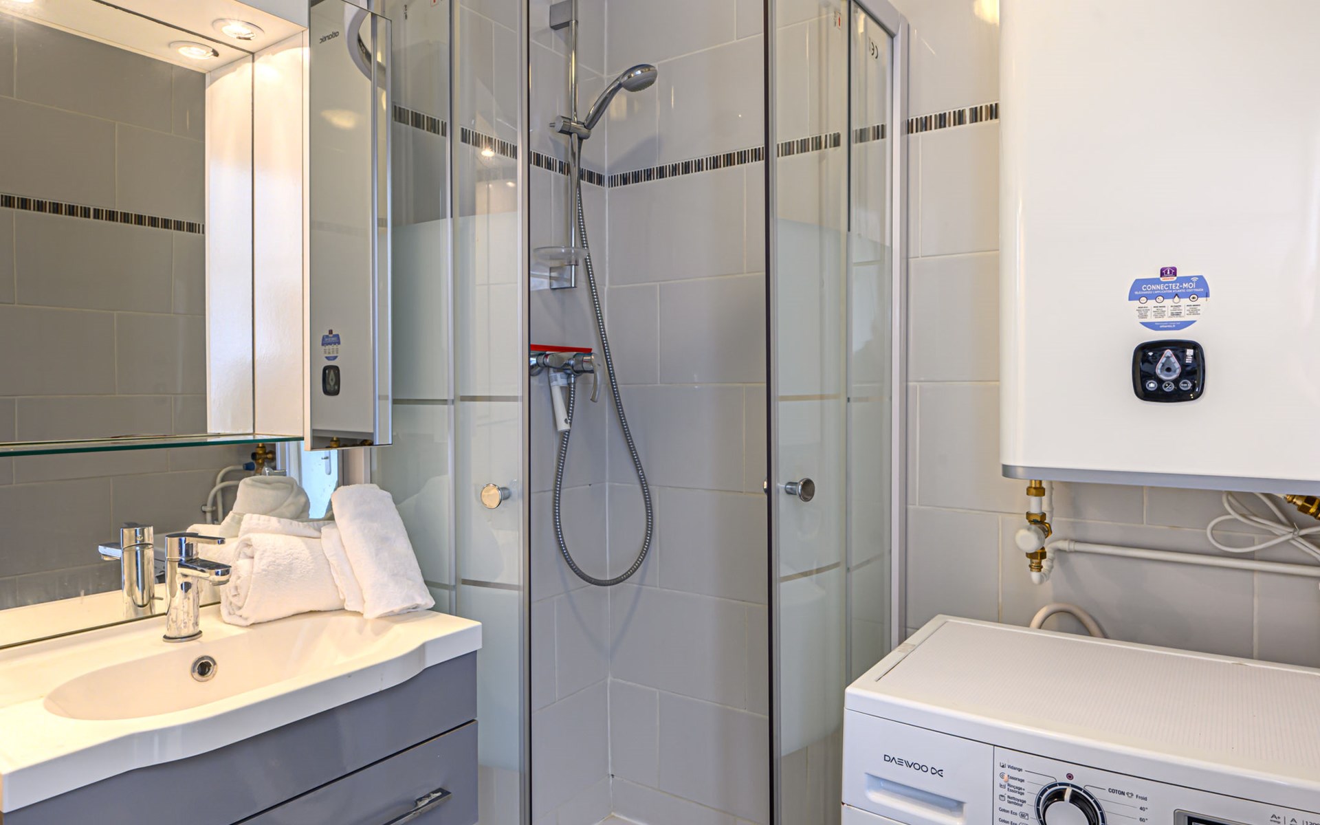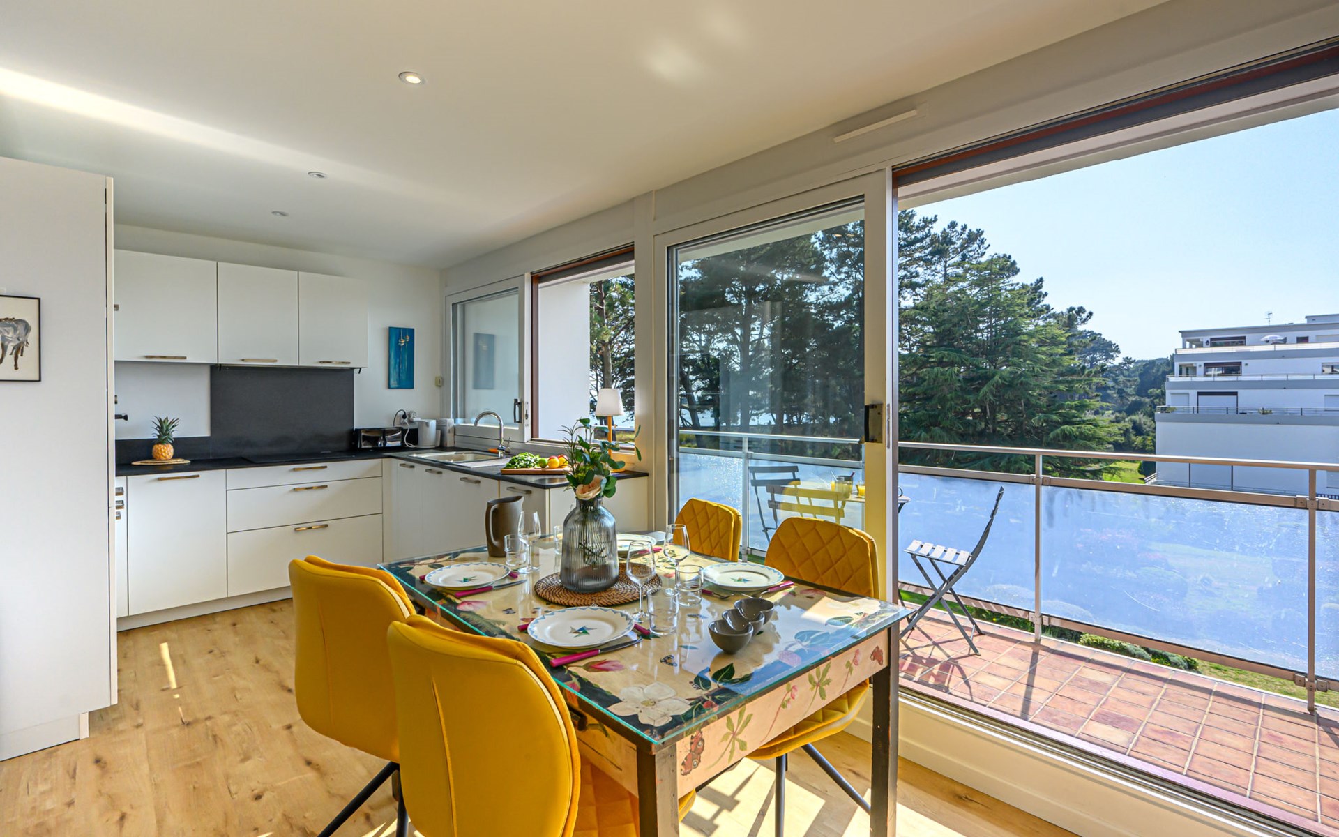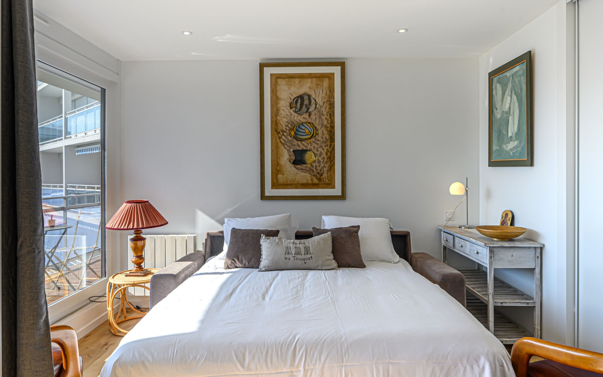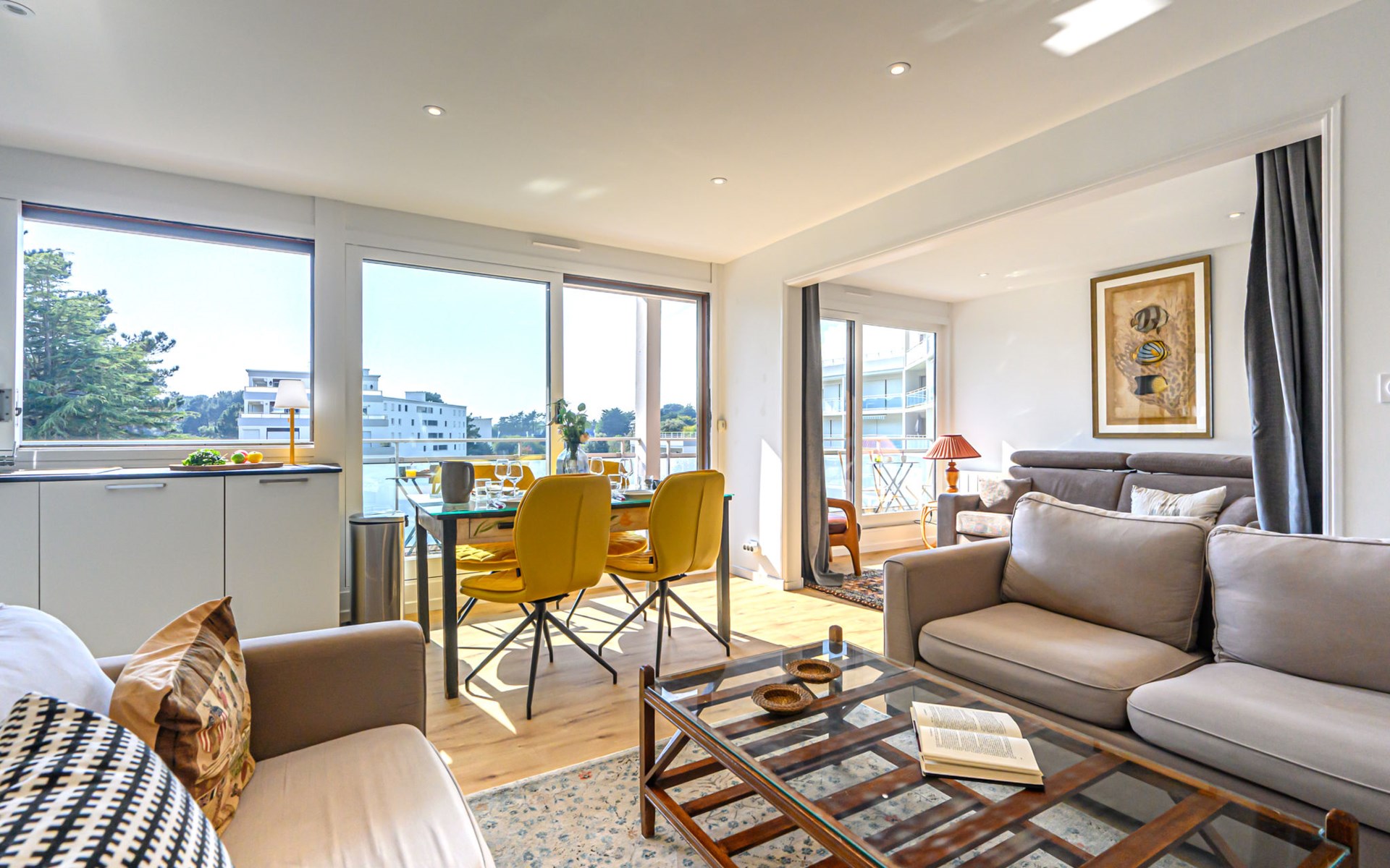 St Philibert 7 km von Carnac: Residenz "Men Er Bellec", auf 5 Stockwerken, umgeben von Bäumen. Vom Meer, 50 m vom Strand. In der Anlage: Fahrstuhl. Parkplatz. Einkaufsgeschäft 2 km, Restaurant 500 m, Bar 2 km, Bäckerei 2 km, Sandstrand "Men Er Beleg" 50 m, Thermalbad "Thalassothérapie de Carnac" 8 km. Jacht-Hafen 5 km, Golfplatz (18 Loch) 20 km, Segelschule 2 km. Nahe gelegene Sehenswürdigkeiten: La Trinité sur Mer 4 km, Locmariaquer - Golf du Morbihan 4 km, Alignements de Carnac 8 km, Auray 14 km, Presqu'Ile de Quiberon belle ile en Mer 21 km, Vannes 30 km. Bitte beachten: geeignet für Familien. Jugendgruppen nur auf Anfrage. Die Schlüsselübergabe findet bei der Agentur Interhome in Carnac statt, 7 km.