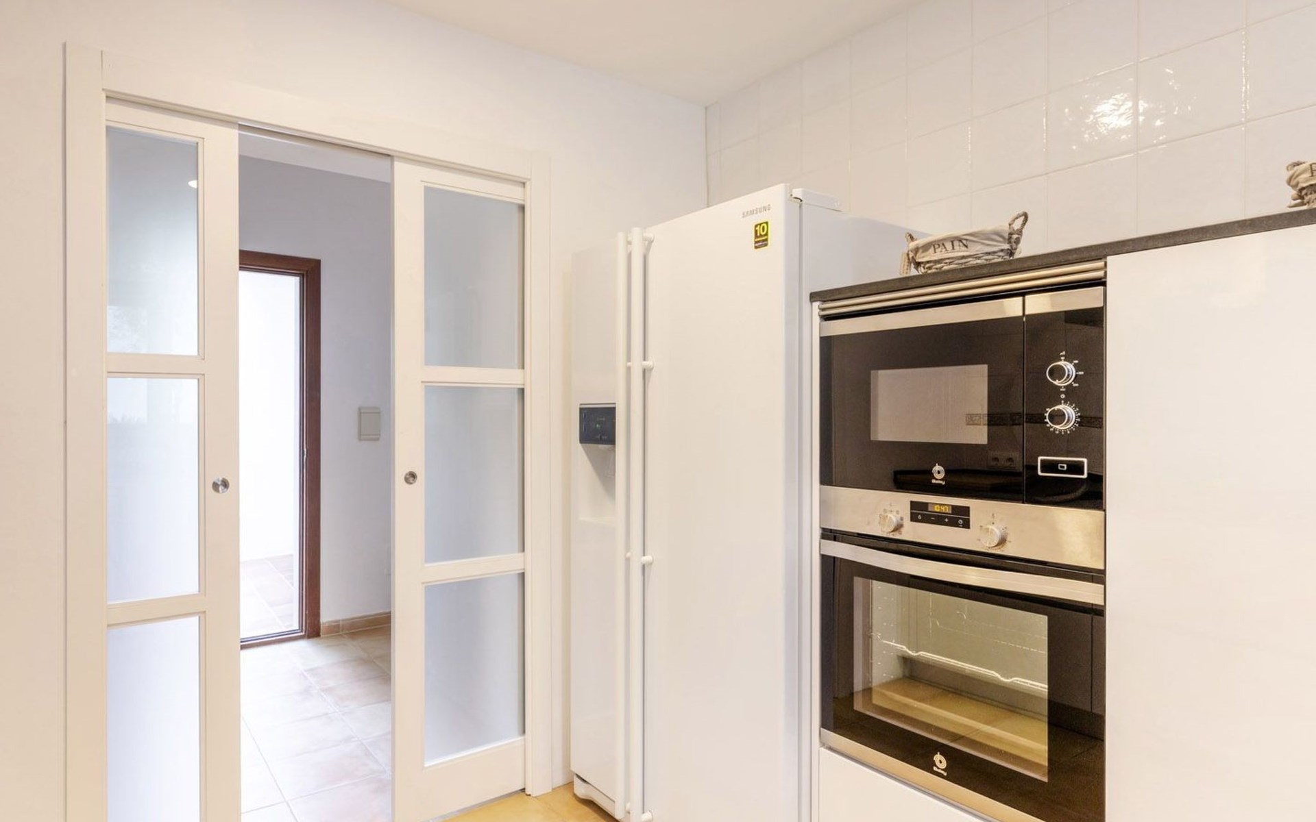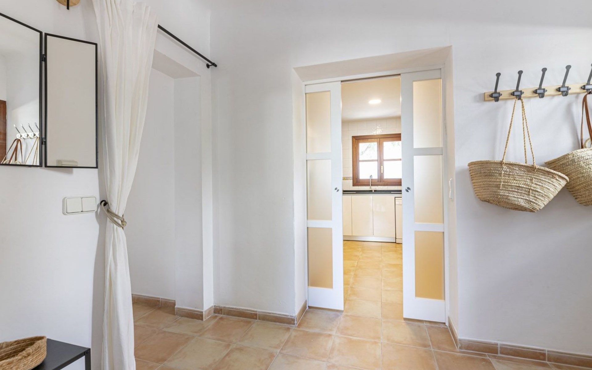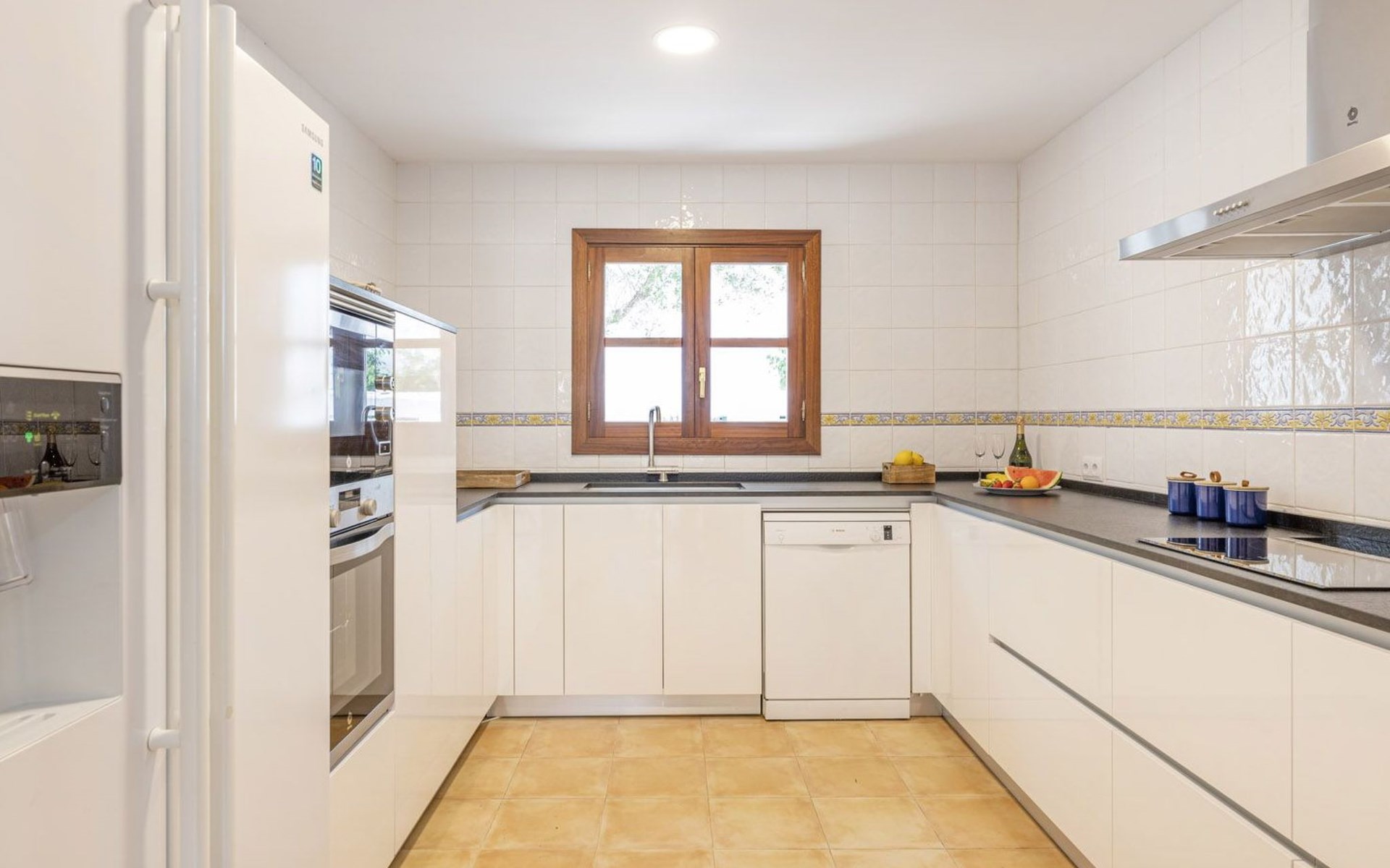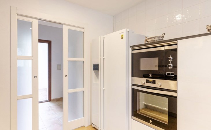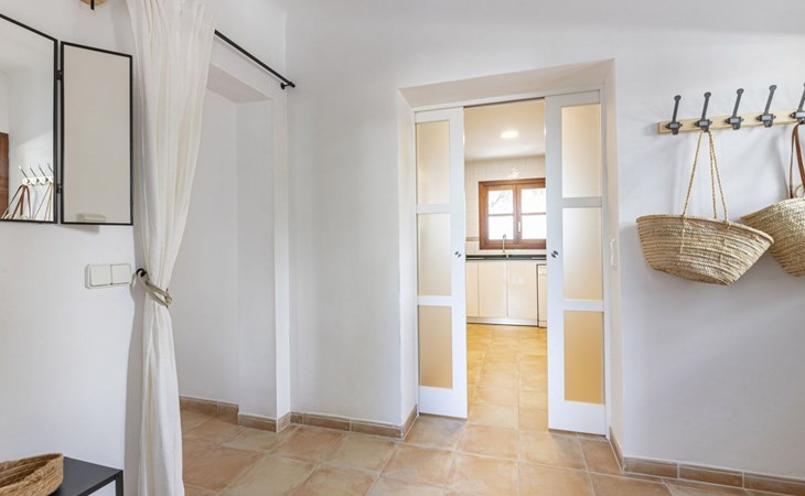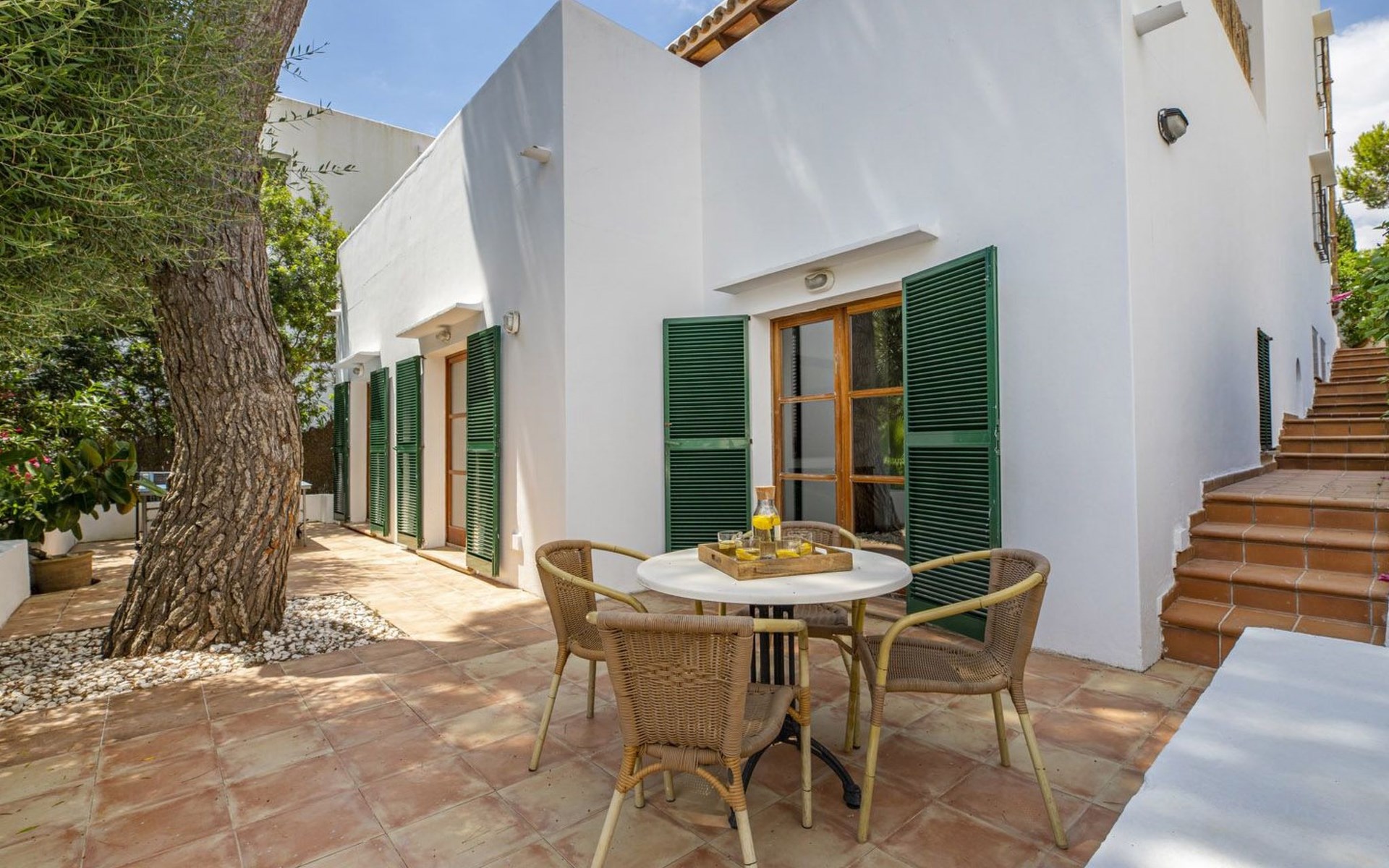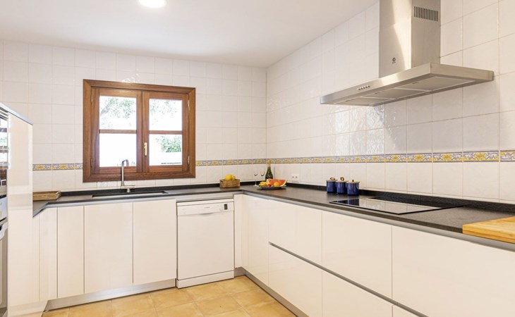 Im Erdgeschoss gibt es eine voll ausgestattete Küche, ein geräumiges Wohn-Esszimmer, eine Terrasse mit Veranda und ein Schlafzimmer mit Bad. Die untere Etage verfügt über drei Schlafzimmer mit Bad und Terrasse und die erste Etage hat ein Schlafzimmer mit Doppelbett, eine Junior-Suite und eine Waschküche.