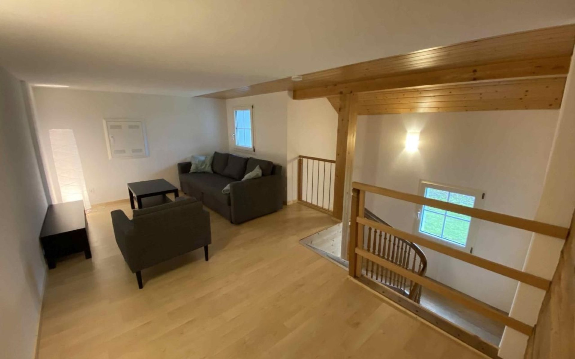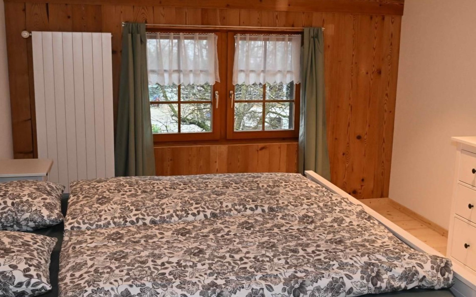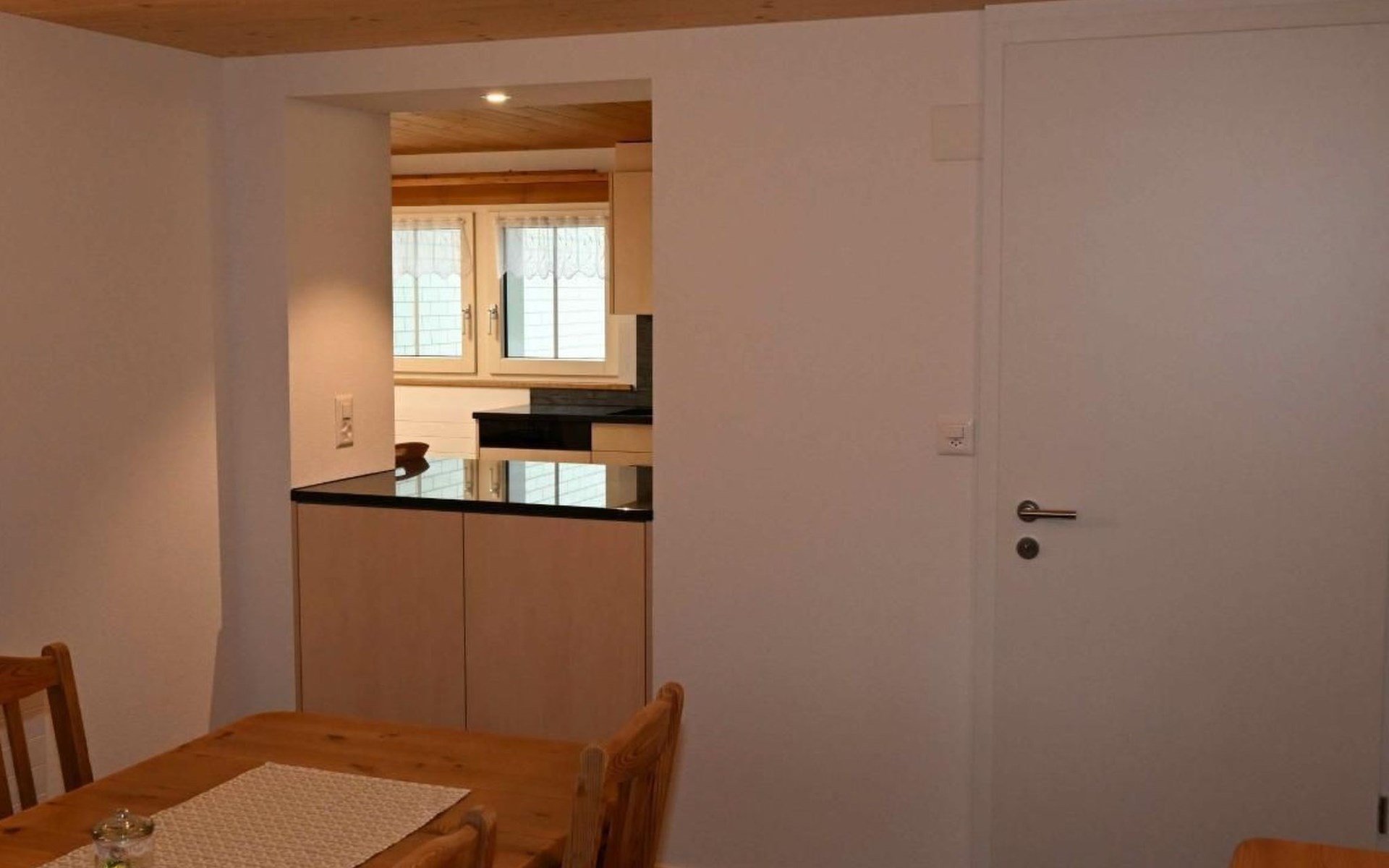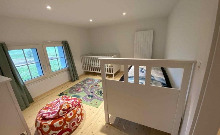 Schöne Küche mit gemütlicher Essnische, dazu kommt ein Esszimmer. Zwei Schlafzimmer mit Doppelbetten, ein Kinderzimmer mit einem Einzelbett und einem Kinderbettchen. Eigener TV-Raum mit ausziehbarem Sofa. Praktisch ganze Möblierung neu. Dusche und WC. Ein grosser Vorraum dient um Bikes, Kinderwagen etc. zu versorgen.