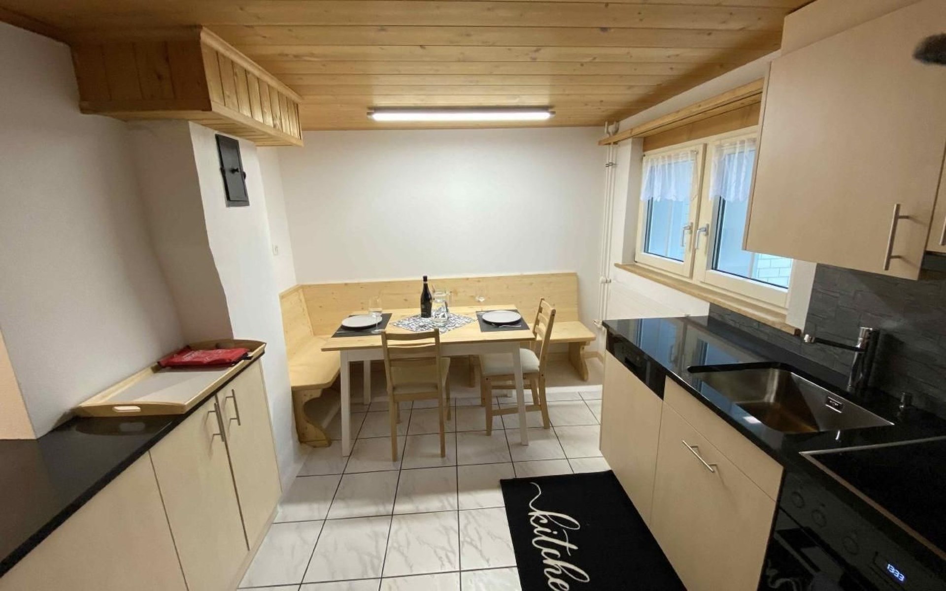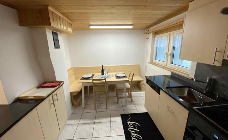 Sonstige Kücheneinrichtung (Küche1): Eckbank mit Esstisch und zwei Stühlen, grosse Ablagefläche