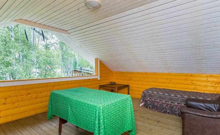 30 km nördlich von Kouvola, See Iso-Kamponen 50 m (Länge 1 km, Breite 2 km), harter und leicht vertiefender Boden (Sand/Ton), Anlegestelle, Ruderboot und Tretboot. Holzhaus, Baujahr 2008, Wohnküche, Waschraum mit Dusche und WC, Holzbeheizte Sauna, Eingangshalle. Im Obergeschoss Schlafzimmer mit 1 Doppelbett, anderes Schlafzimmer mit 2 Einzelbetten, 2 Einzelbetten in der Lobby (Vorhang). Balkon und überdachte Terrasse. Das Trinkwasser wurde untersucht und erfüllt die Kriterien des Trinkwassers, gelegentlich riecht es aber auch ein bisschen. Pöllö ist ein Haus mit allen Annehmlichkeiten, das sich in der Nachbarschaft von drei Häusern befindet. Es gibt auch ein anderes Miethaus (13811) in der Gegend. Wenn Sie mehr Platz benötigen, können Sie die Miete des kleinen Hauses (zwei Betten, Dusche und Küche) beim Eigentümer anfragen. Diese drei Häuser bieten Platz für bis zu 15-18 Personen, die den Urlaub auf dem gleichen Hof verbringen können. In der Nähe dieses Hauses gibt es gutes Terrain zum Sammeln von Beeren und Pilzen. Der Iso-Kamponensee bietet auch gute Angelmöglichkeiten. Im Hof gibt es Grillhütte, Spielplatz, überdachte Grillhütte, Spielplatz, überdachte Tischtennisplatte und ein paar Tretboote zur Mitbenutzung. Das Mühlemuseum von Verla (UNESCO Weltkulturerbe) 2 km, Jaala 11 km, Vergnügungspark von Tykkimäki 27 km, Aquapark 27 km, Bogeygolf 29 km, Kouvola 31 km, Skpisten von Mielakka 32 km, Repovesi Nationalpark 46 km, Lahti 66 km, Lappeenranta 106 km, Grenzübergang Nuijamaa 132 km, Helsinki 157 km.