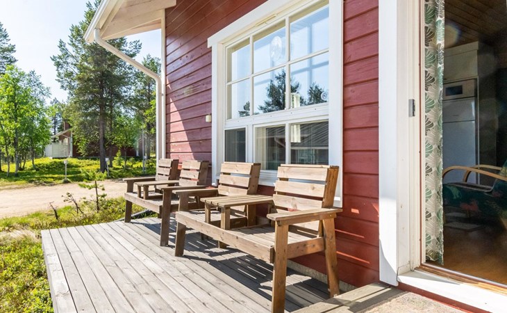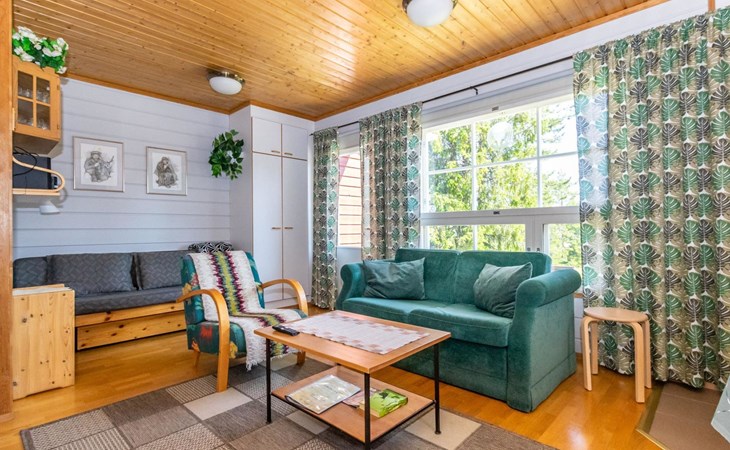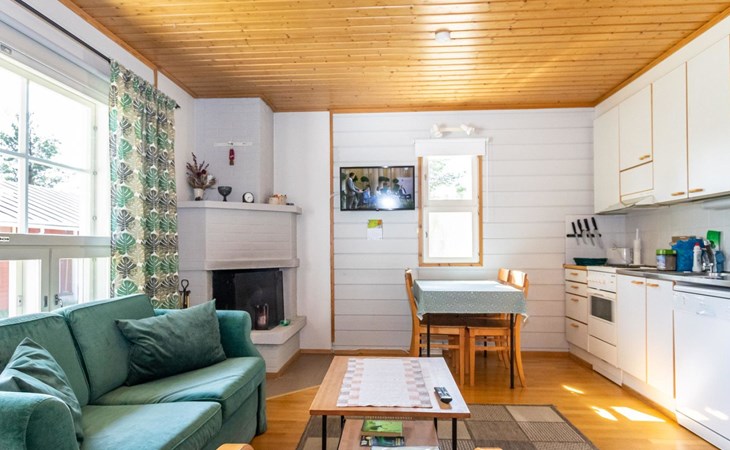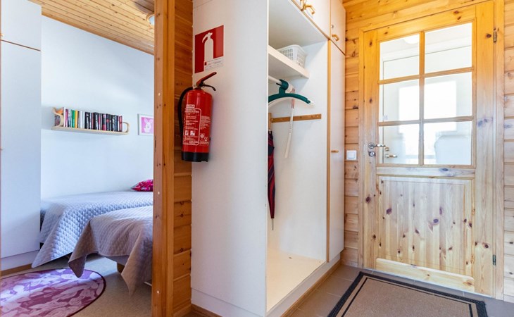 The 40-square-meter apartment has a kitchen/livingroom, a bedroom, a washroom/toilet, a sauna, a terrace and a small storage room In addition, shared with other apartments ski maintenance room with ski lubrication rack, iron and infrared heater. The locked maintenance room can be accessed with the apartment key, and the trash cans are also in the same building.