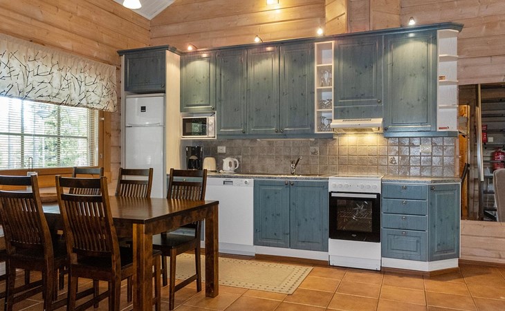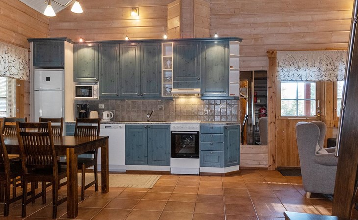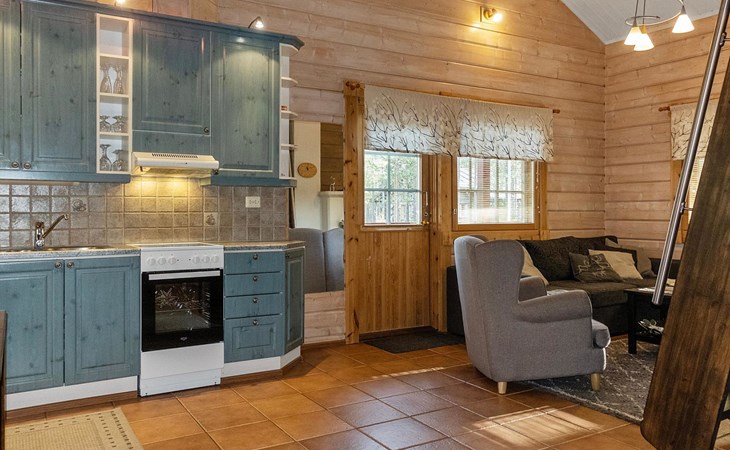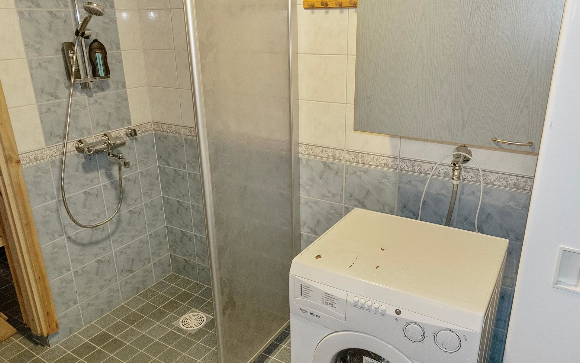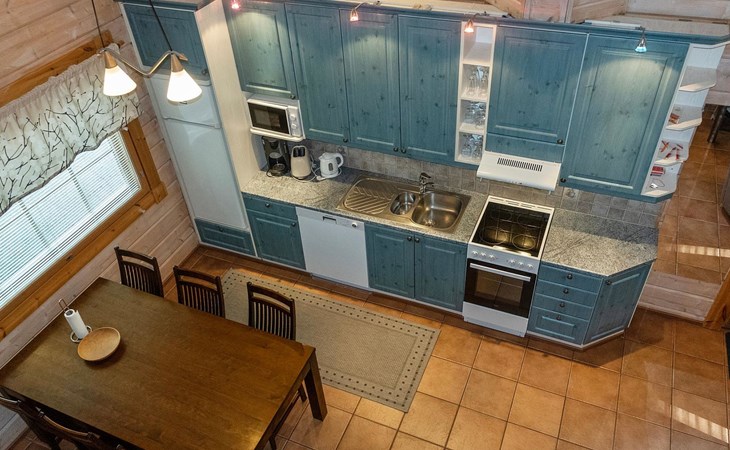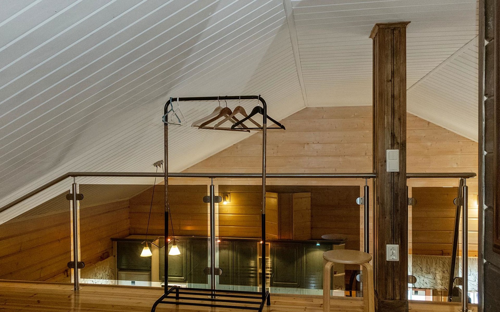 The loft has four beds in two different sections, with two beds in each section separated by a wall. Please note that the stairs to the loft are very steep, so use caution when using them. The floor area of the loft is approx. 20 m².