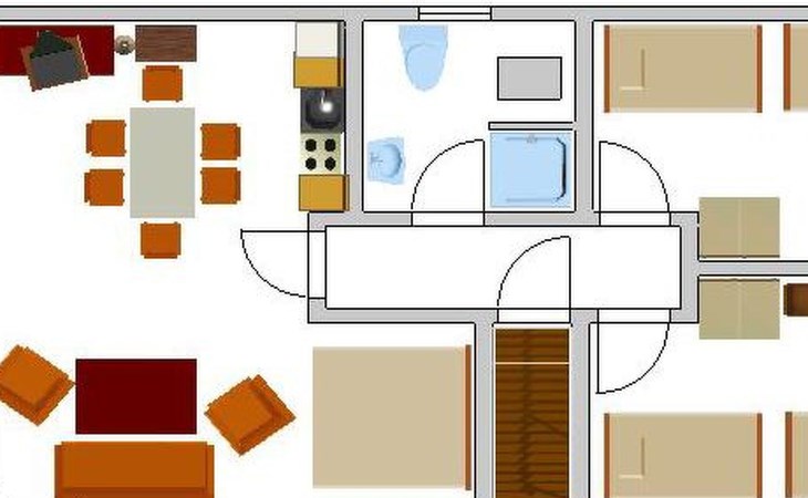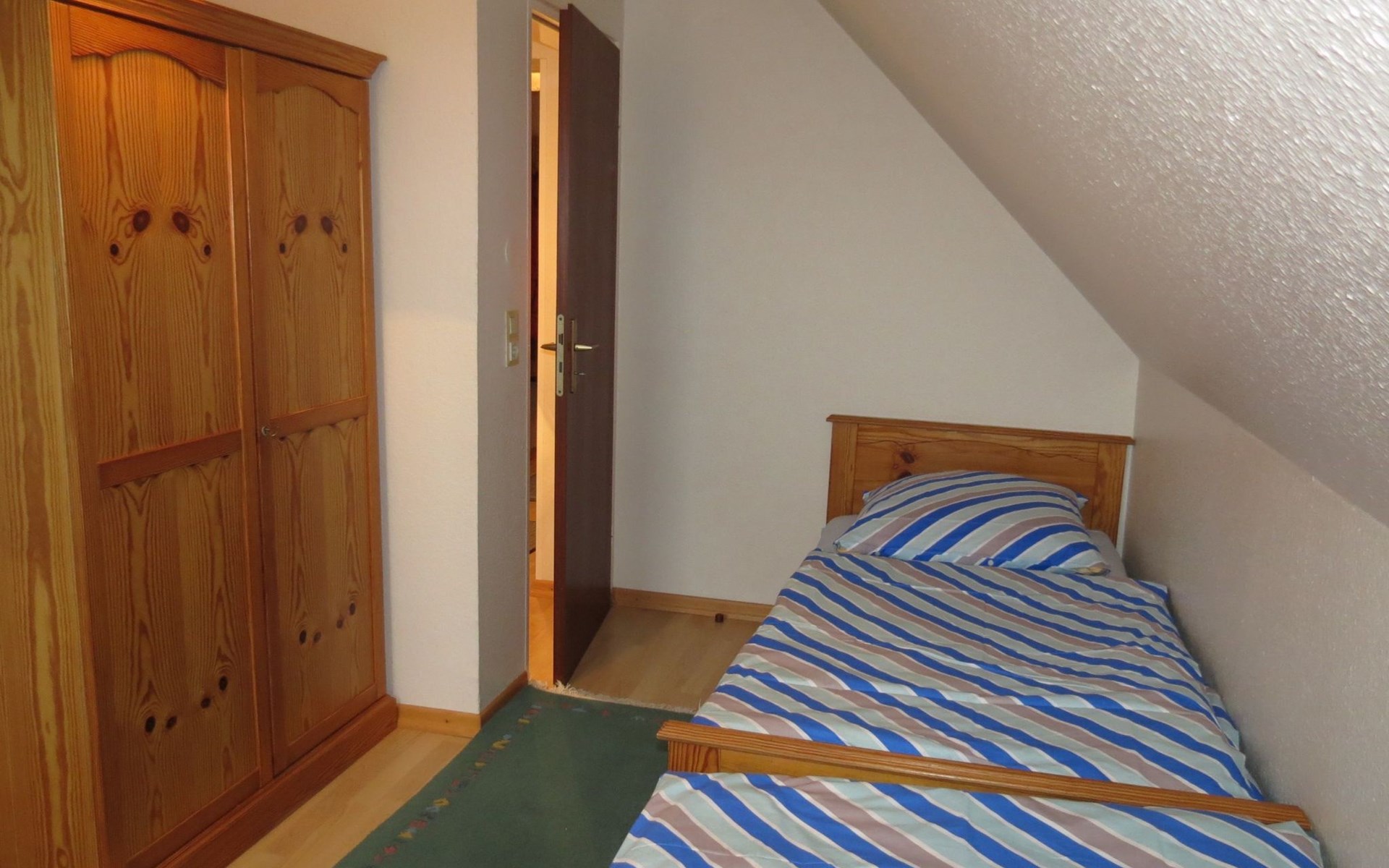 Sie hat 2 separate Schlafzimmer (jeweils ca. 10m²) mit jeweils 2 Einzelbetten (2m lang). Es stehen synthetische Bettdecken und Kopfkissen zur Verfügung.