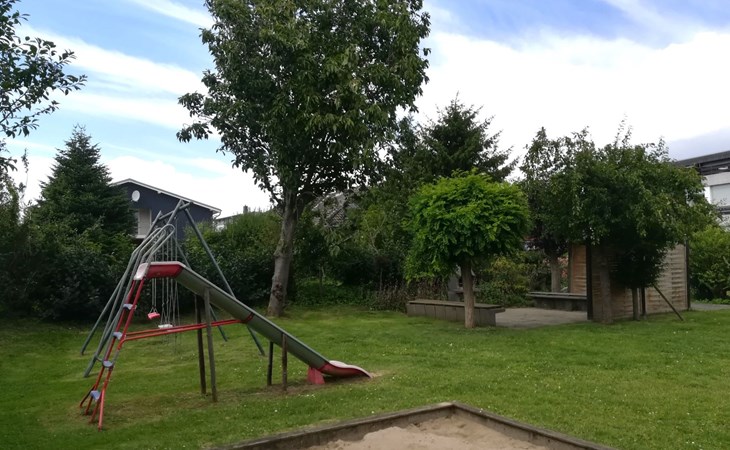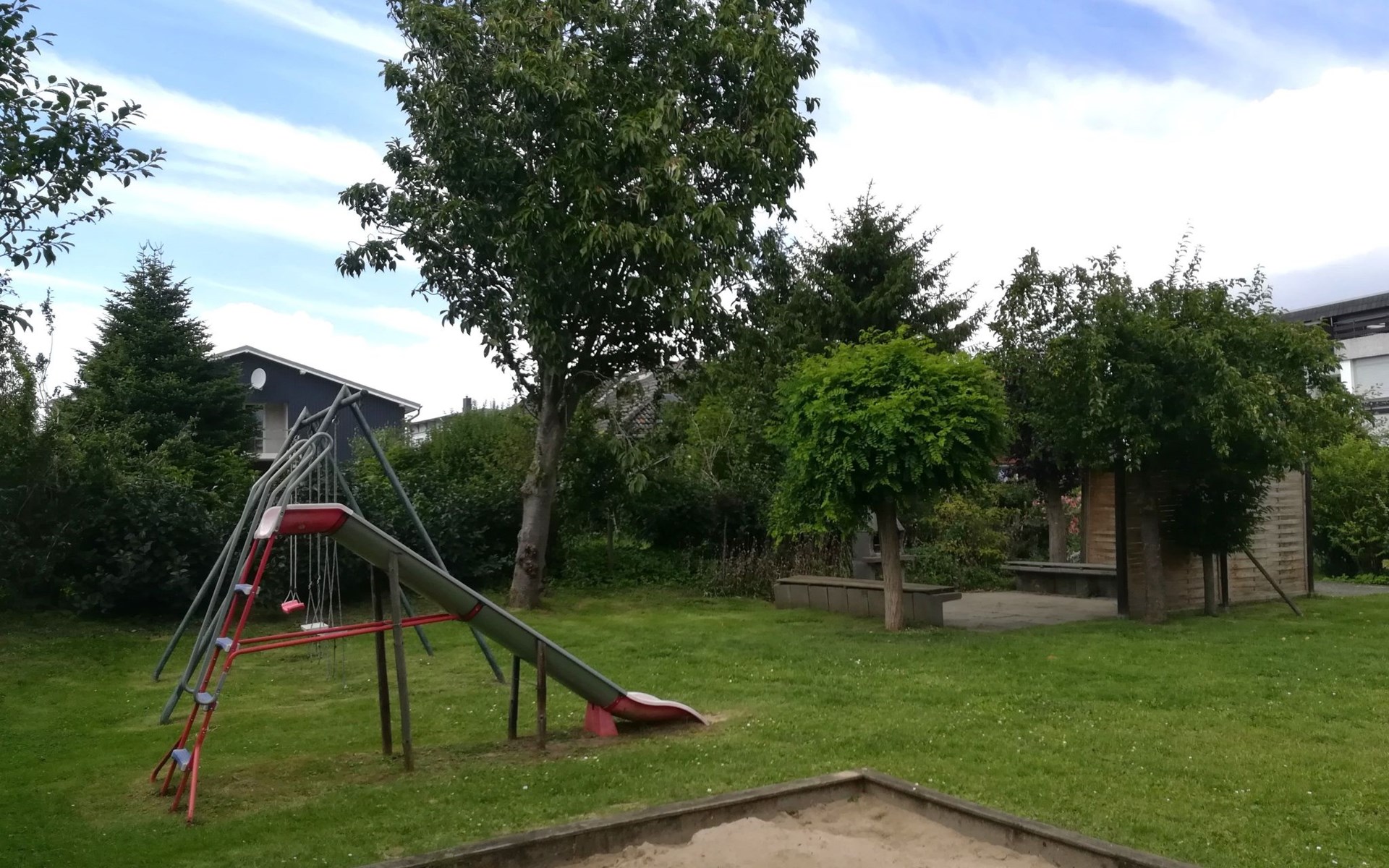 Unsere Außenanlagen nebenan, die bequem über den eigenen Garten zu erreichen sind, laden zum Verweilen ein und bieten Ihren Kindern einen Spielplatz (Sandkiste, Rutsche, Schaukeln und große Rasenfläche) und Ihnen einen Grillplatz mit Grillkamin (wir bitten unsere Gäste um Reinigung nach der Benutzung). Ein Fahrradabstellplatz und eine große Wäscheleine sind ebenfalls vorhanden.