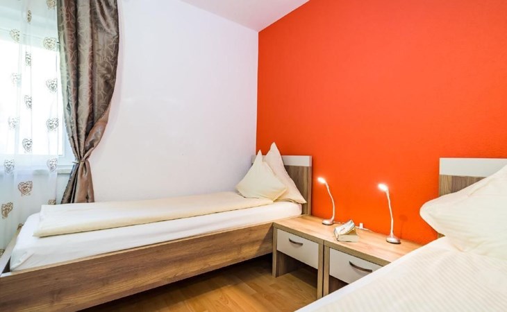 Sonstige Schlafzimmereinrichtung (Schlafzimmer1): Bei eine Zimmer Doppelbett kann als zwei Einzelbetten kombiniert werden.